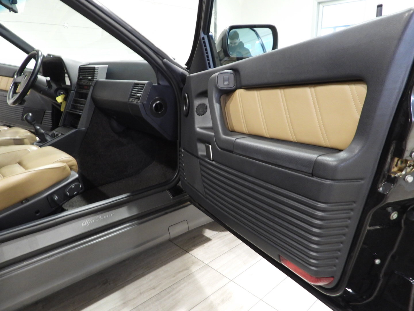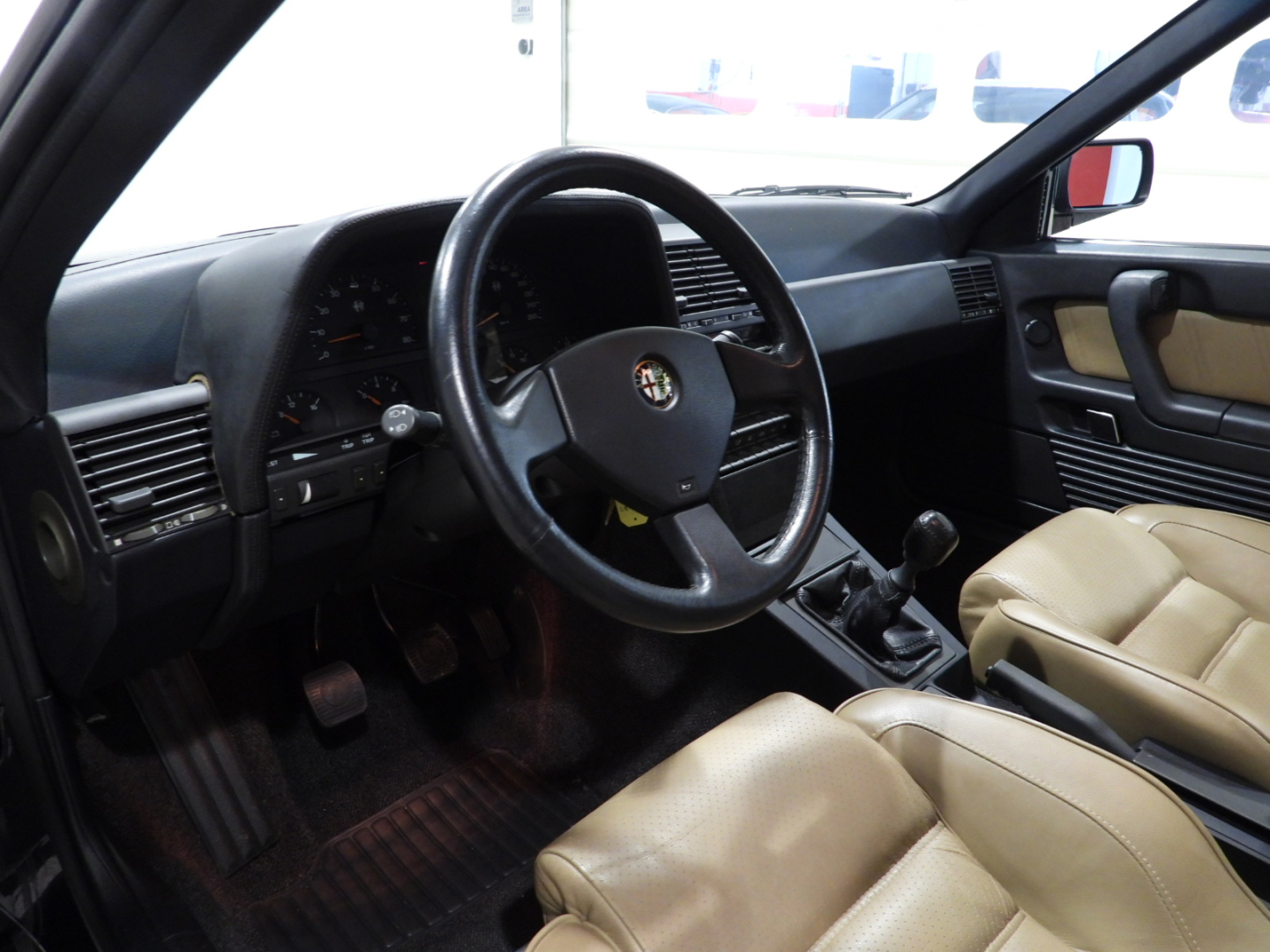 Sedili sportivi marchiati Alfa Romeo in pelle beige traforata a regolazione elettrica, Sedili riscaldabili, Bracciolo posteriore, Tendine parasole posteriori, Estintore posizionato sotto sedile lato guida, Volante a tre razze e pomello del cambio in pelle, Automatic Suspension control, Climatizzatore automatico, Vetri elettrici anteriori e posteriori, Specchietti retrovisori regolabili e richiudibili elettricamente, Autoradio Pioneer KEH-8000RDS AM/FM, Chiusura centralizzata, Cerchi in lega Alfa Romeo Speedline scomponibili con pneumatici Michelin 205/55 R16, Fari fendinebbia rettangolari a luce bianca