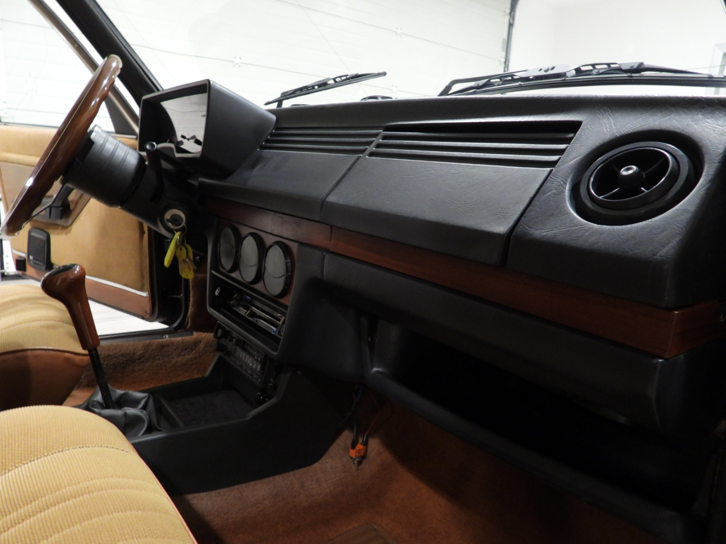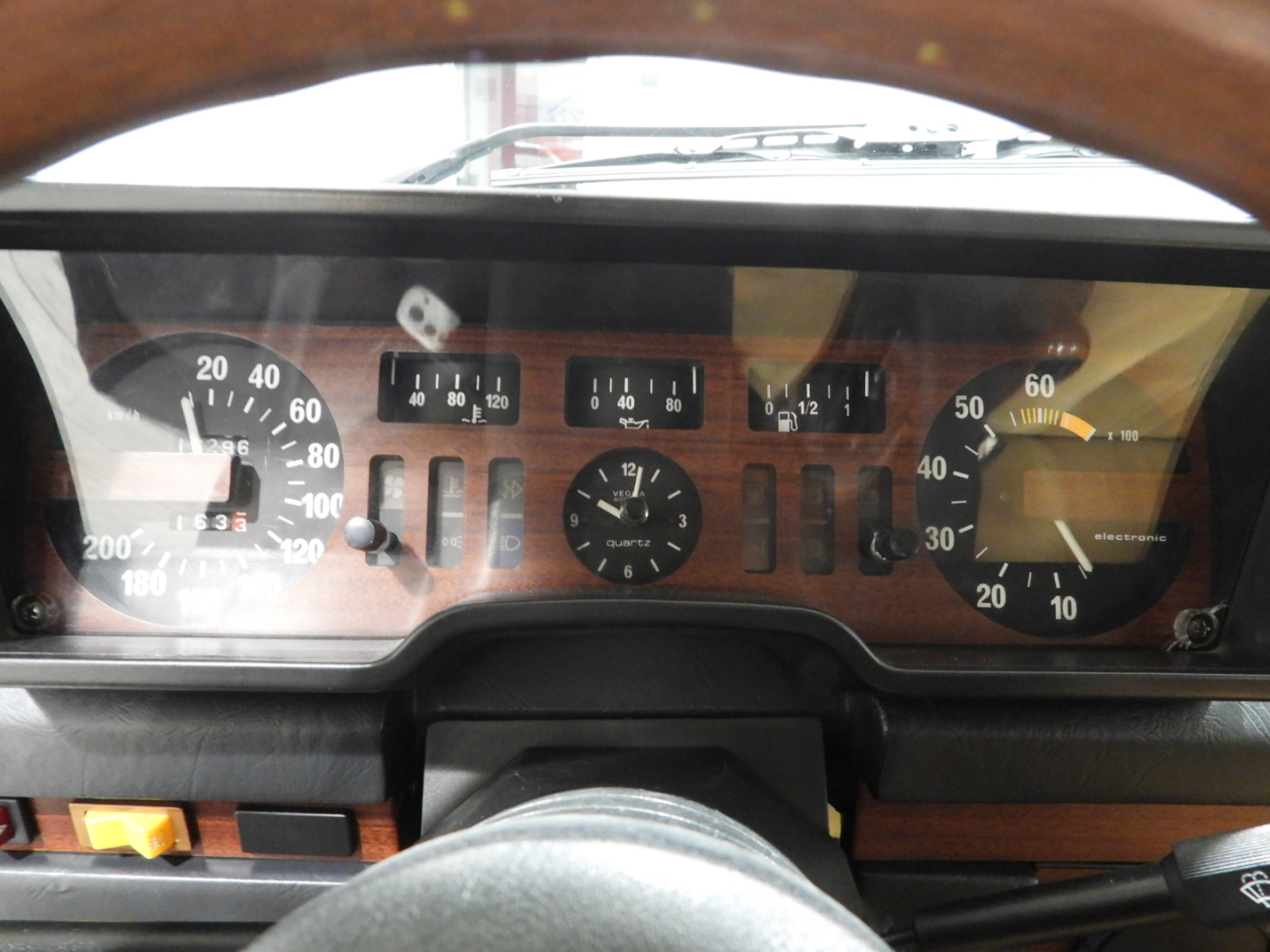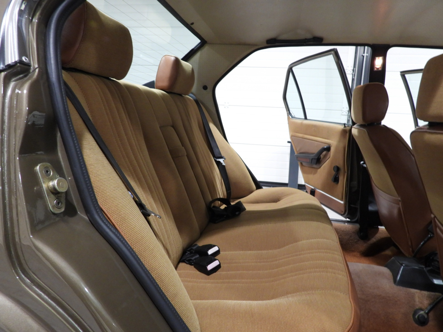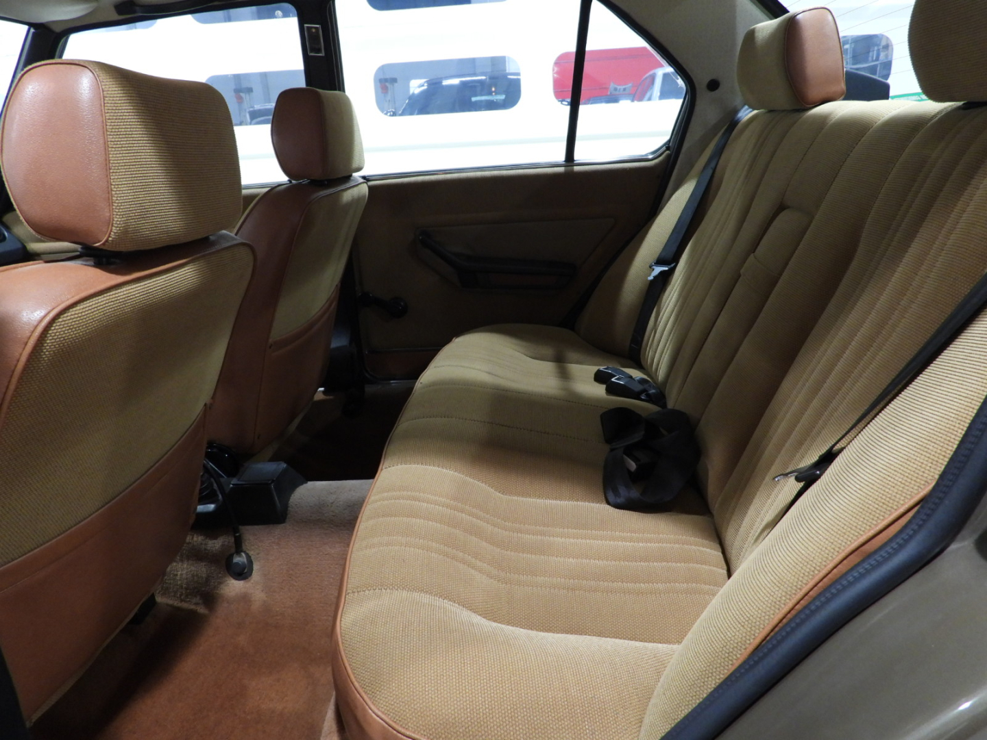 Sedili con poggiatesta anteriori regolabili e posteriori e pannelli in tessuto ciniglia nocciola e Tex Alfa sky cinghiale, Cinture di sicurezza con arrotolare anche su sedili posteriori, Moquette al pavimento in lana nocciola, Volante a tre razze con corona in legno coordinato con pomello del cambio, Aria condizionata, Vetri elettrici anteriori, Doppio specchio esterno Alfa Romeo Vitaloni, Autoradio Blaupunkt Stockholm R26 AM/FM a cassetta stereo 7 con antenna radio incorporata nel parabrezza e casse Alfa Romeo ai pannelli anteriori, Bracciolo posteriore, Lavatergifari, Paraurti e tubo di scarico in acciaio inox, Cerchi in lega Alfa Romeo Campagnolo Millerighe con pneumatici 185/70 R14 Pirelli Cinturato P4, Tappo serbatoio Alfa Romeo con chiavi originali Alfa Romeo