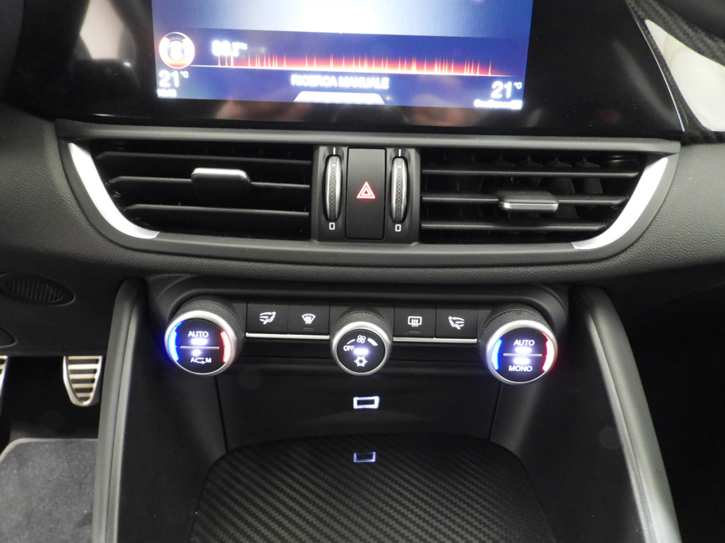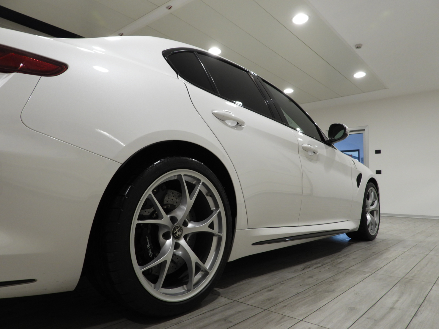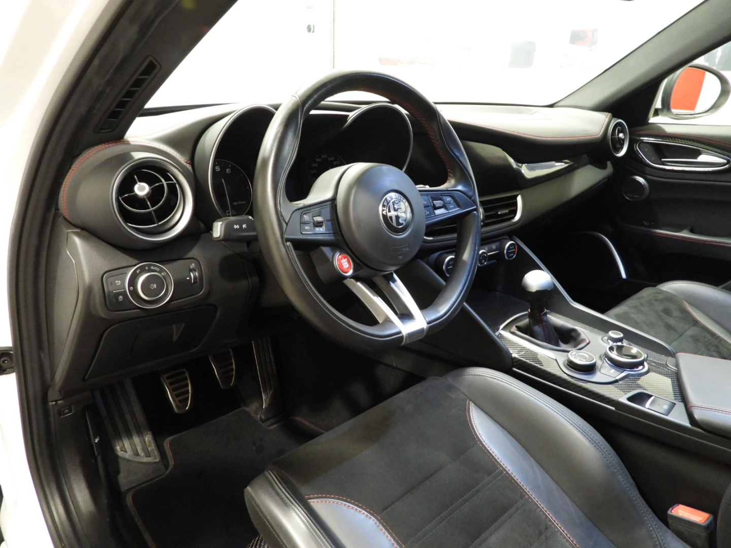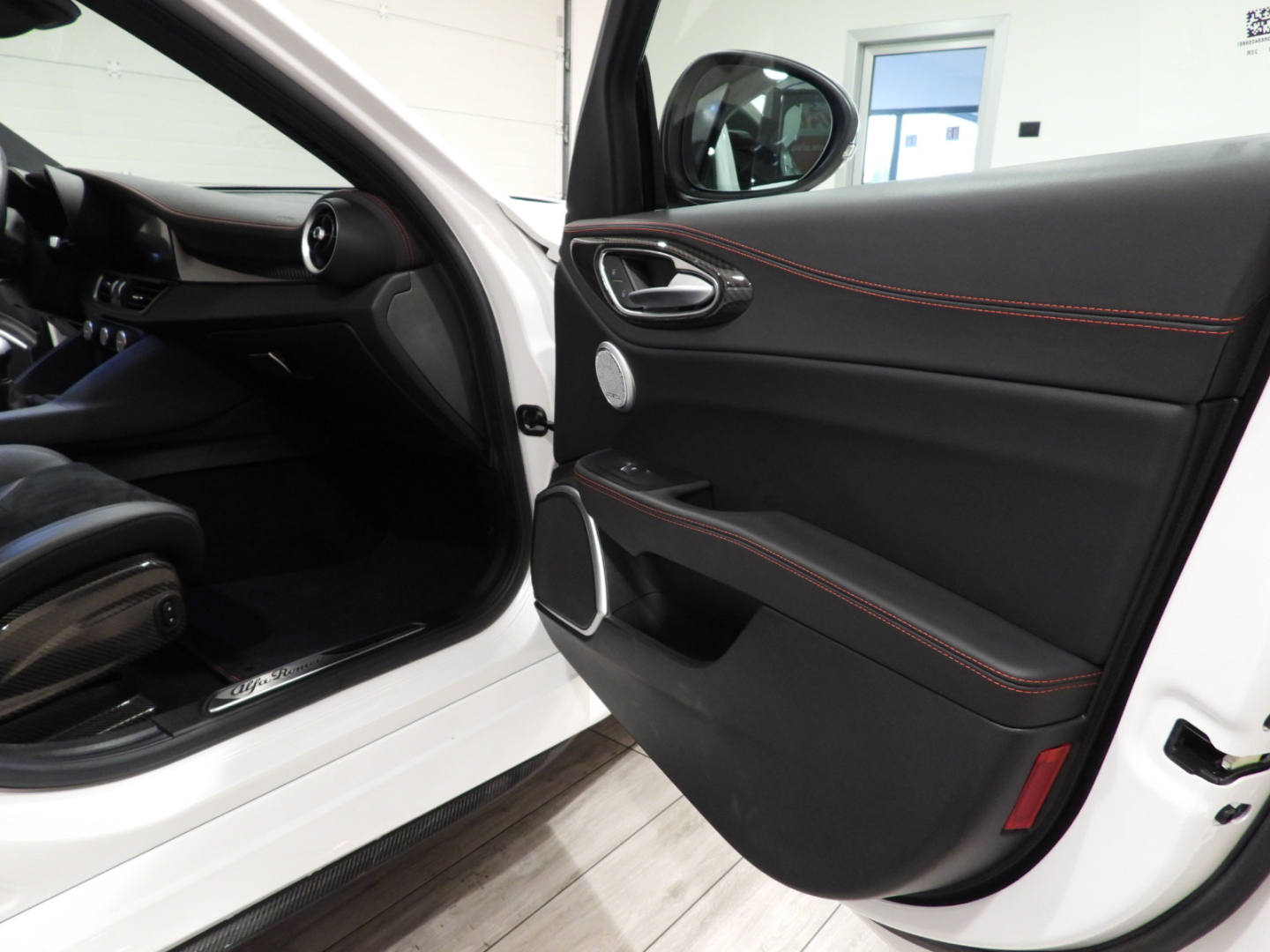 Alfa Connect 3D NAV 8,8” (Radio, Navi 3D, Mp3, Aux-in, Bluetooth), RS9 Sintonizzatore Radio DAB, 4GF Quadro strumenti con display da 7”, 693 Bocchette climatizzazioni sedili posteriori, 6NT Vano portaoggetti su plancia refrigerato, 50X Aletta parasole lato guidatore con specchio illuminato, 4M6 Aletta parasole lato passeggero con specchio illuminato, 410 Specchio retrovisore interno Elettrocromico, 4CS Pedaliera sportiva in alluminio, 79U Batticalcagno in alluminio, XSQ, Inserti in carbonio su plancia, pannelli porta e tunnel Centrale 5ZL, 5BH Volante multifunzione sportivo in pelle con pulsante avviamento rosso, 5QX Badge Quadrifoglio, MMR Cornice cristalli esterna nera lucida, XAN Blind Spot Monitoring con Rear cross path detenction, IBS Integrated Brake System, LA1 LDW Lane departure warning, 55B AEB Autonomous Emergency Brake, FWC Forward Collision Warning, 4DK Disattivazione air bag passeggero, SDD Alfa Active Suspension, Torque Vectoring, 5DE Start and Stop evo, 499 Kit riparazione pneumatici