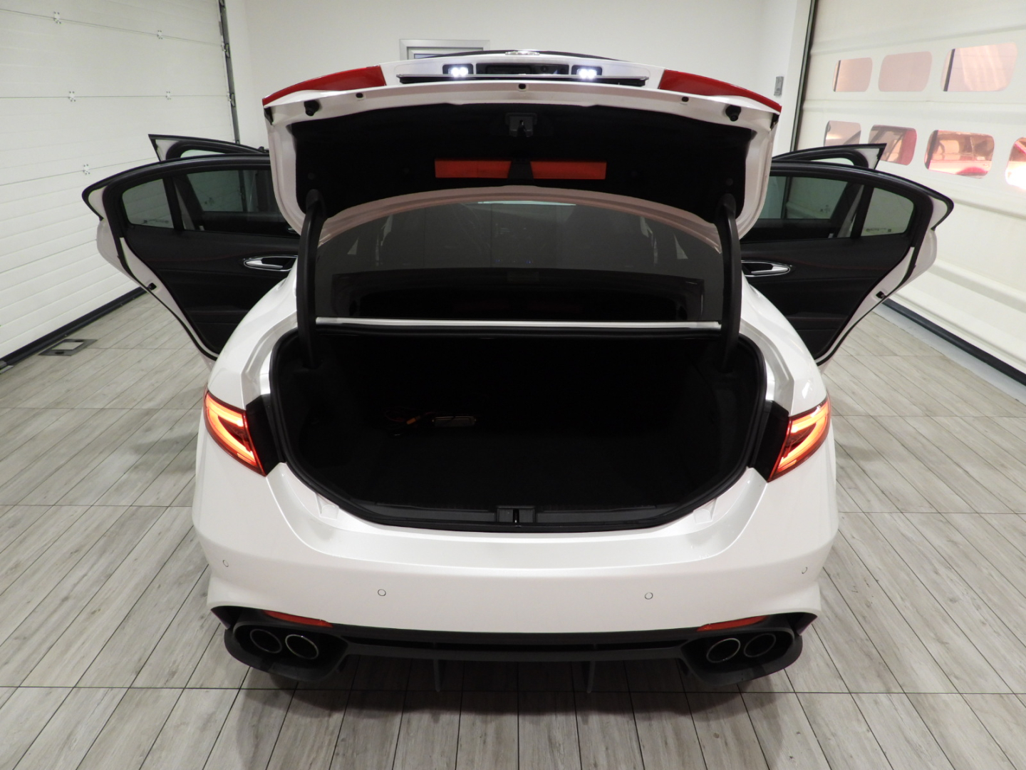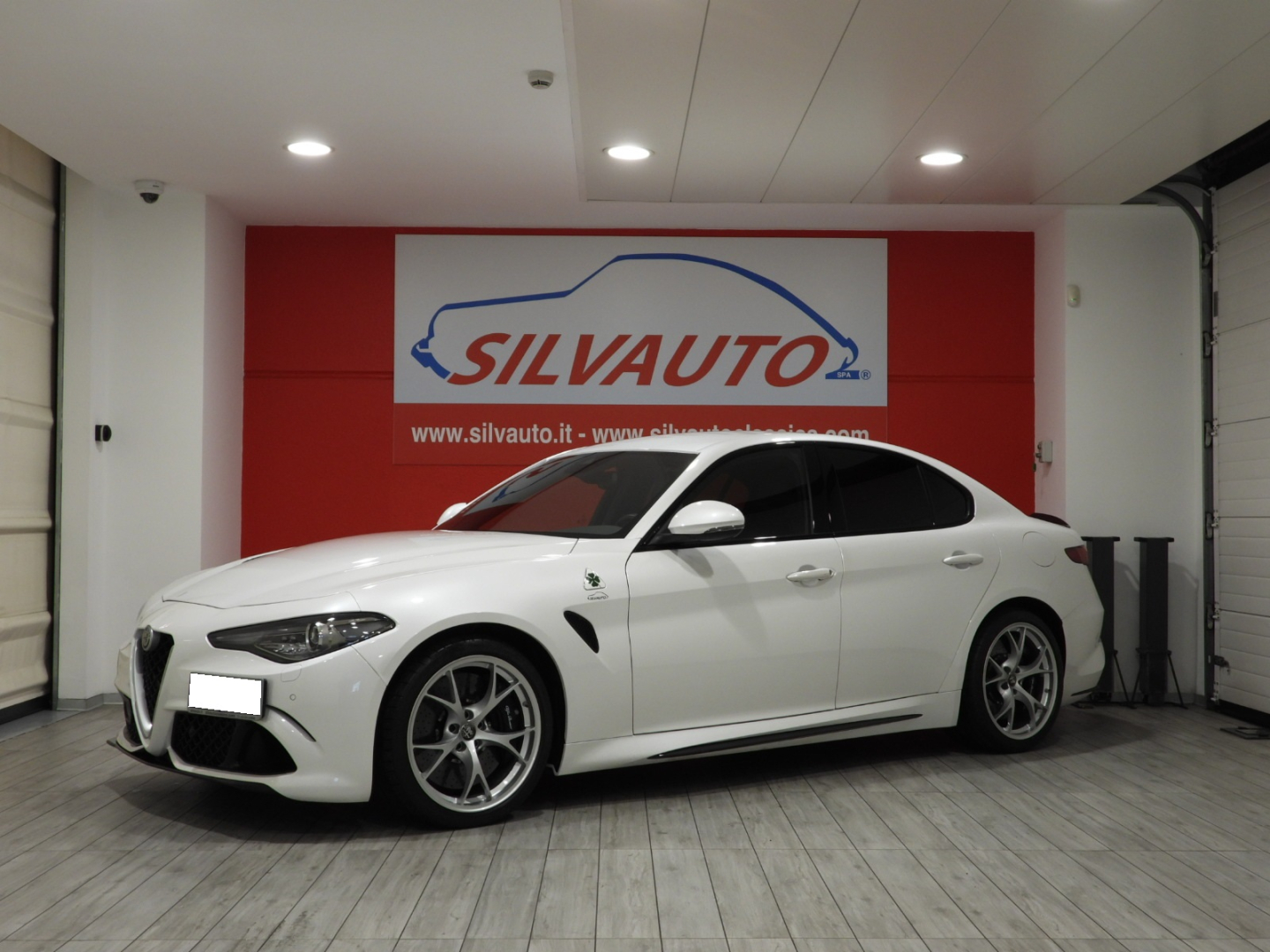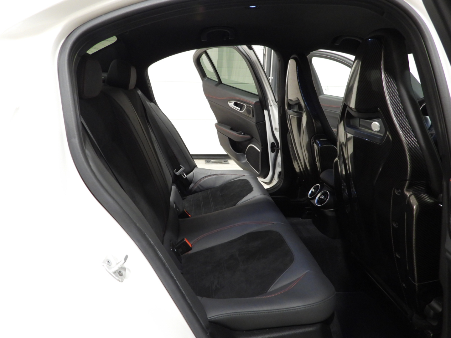 Alfa Connect 3D NAV 8,8” (Radio, Navi 3D, Mp3, Aux-in, Bluetooth), RS9 Sintonizzatore Radio DAB, 4GF Quadro strumenti con display da 7”, 693 Bocchette climatizzazioni sedili posteriori, 6NT Vano portaoggetti su plancia refrigerato, 50X Aletta parasole lato guidatore con specchio illuminato, 4M6 Aletta parasole lato passeggero con specchio illuminato, 410 Specchio retrovisore interno Elettrocromico, 4CS Pedaliera sportiva in alluminio, 79U Batticalcagno in alluminio, XSQ, Inserti in carbonio su plancia, pannelli porta e tunnel Centrale 5ZL, 5BH Volante multifunzione sportivo in pelle con pulsante avviamento rosso, 5QX Badge Quadrifoglio, MMR Cornice cristalli esterna nera lucida, XAN Blind Spot Monitoring con Rear cross path detenction, IBS Integrated Brake System, LA1 LDW Lane departure warning, 55B AEB Autonomous Emergency Brake, FWC Forward Collision Warning, 4DK Disattivazione air bag passeggero, SDD Alfa Active Suspension, Torque Vectoring, 5DE Start and Stop evo, 499 Kit riparazione pneumatici