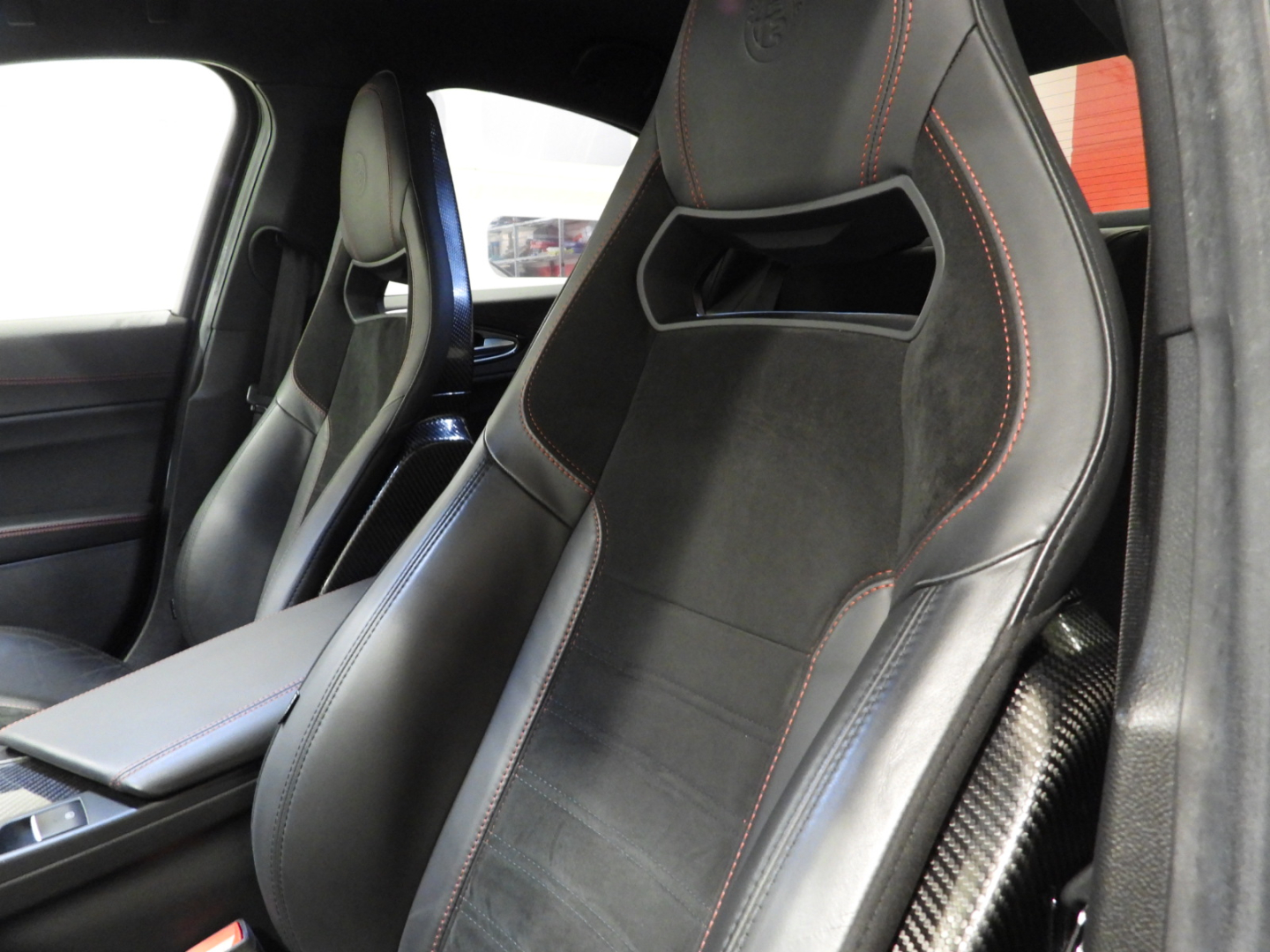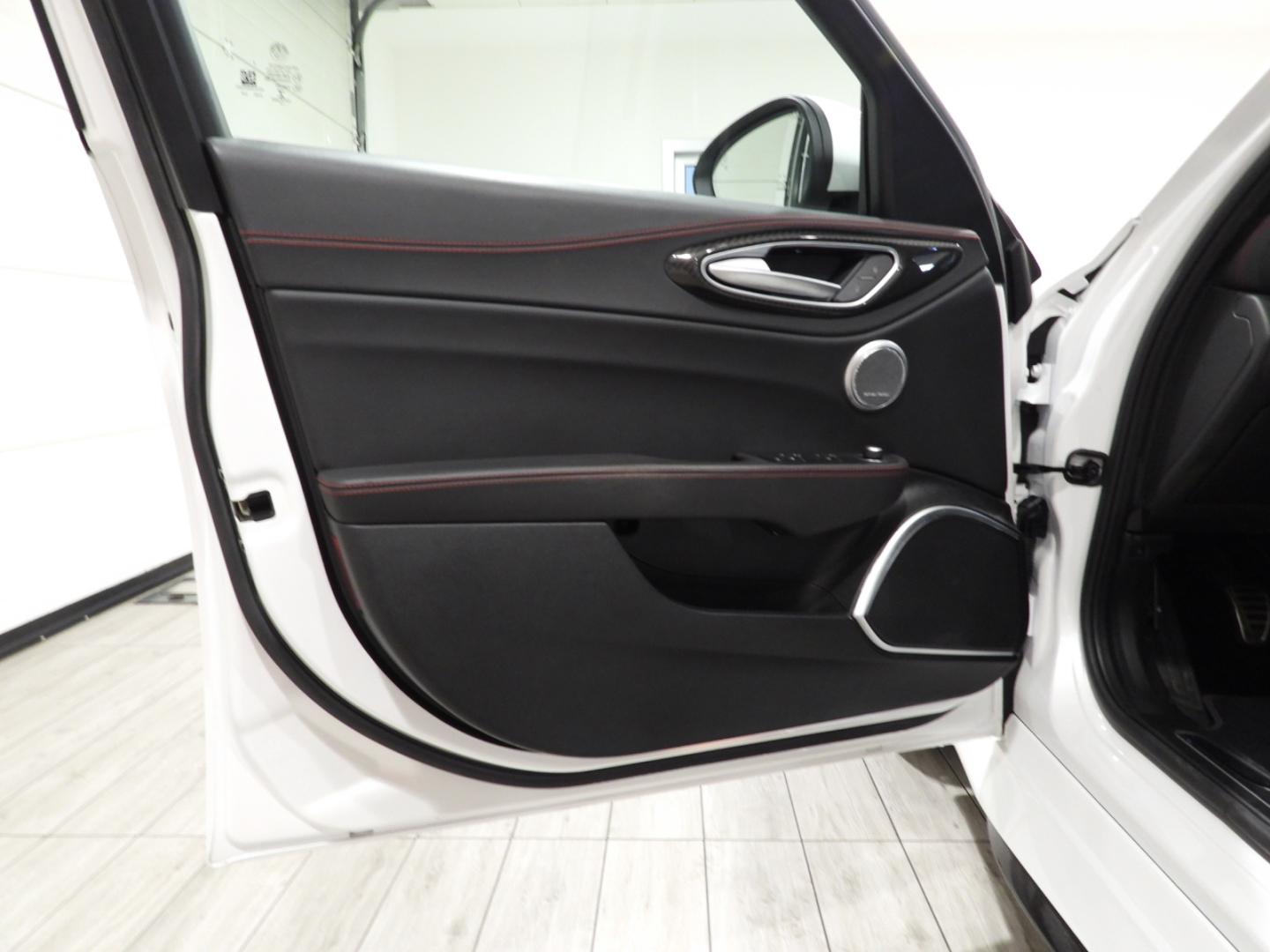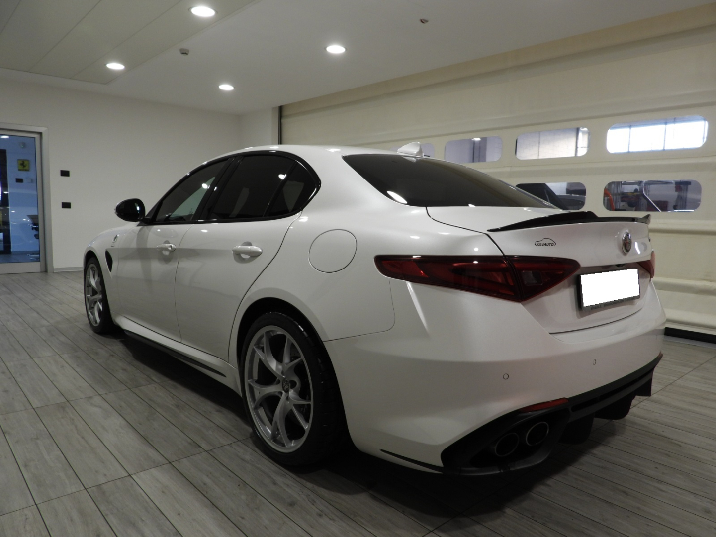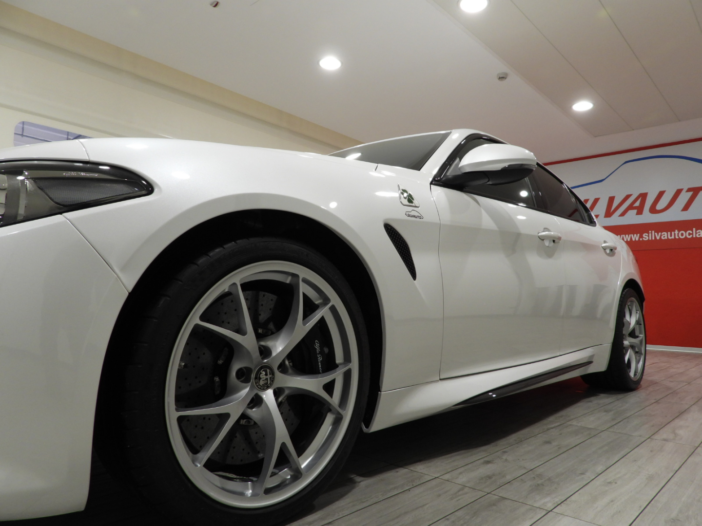 Alfa Connect 3D NAV 8,8” (Radio, Navi 3D, Mp3, Aux-in, Bluetooth), RS9 Sintonizzatore Radio DAB, 4GF Quadro strumenti con display da 7”, 693 Bocchette climatizzazioni sedili posteriori, 6NT Vano portaoggetti su plancia refrigerato, 50X Aletta parasole lato guidatore con specchio illuminato, 4M6 Aletta parasole lato passeggero con specchio illuminato, 410 Specchio retrovisore interno Elettrocromico, 4CS Pedaliera sportiva in alluminio, 79U Batticalcagno in alluminio, XSQ, Inserti in carbonio su plancia, pannelli porta e tunnel Centrale 5ZL, 5BH Volante multifunzione sportivo in pelle con pulsante avviamento rosso, 5QX Badge Quadrifoglio, MMR Cornice cristalli esterna nera lucida, XAN Blind Spot Monitoring con Rear cross path detenction, IBS Integrated Brake System, LA1 LDW Lane departure warning, 55B AEB Autonomous Emergency Brake, FWC Forward Collision Warning, 4DK Disattivazione air bag passeggero, SDD Alfa Active Suspension, Torque Vectoring, 5DE Start and Stop evo, 499 Kit riparazione pneumatici