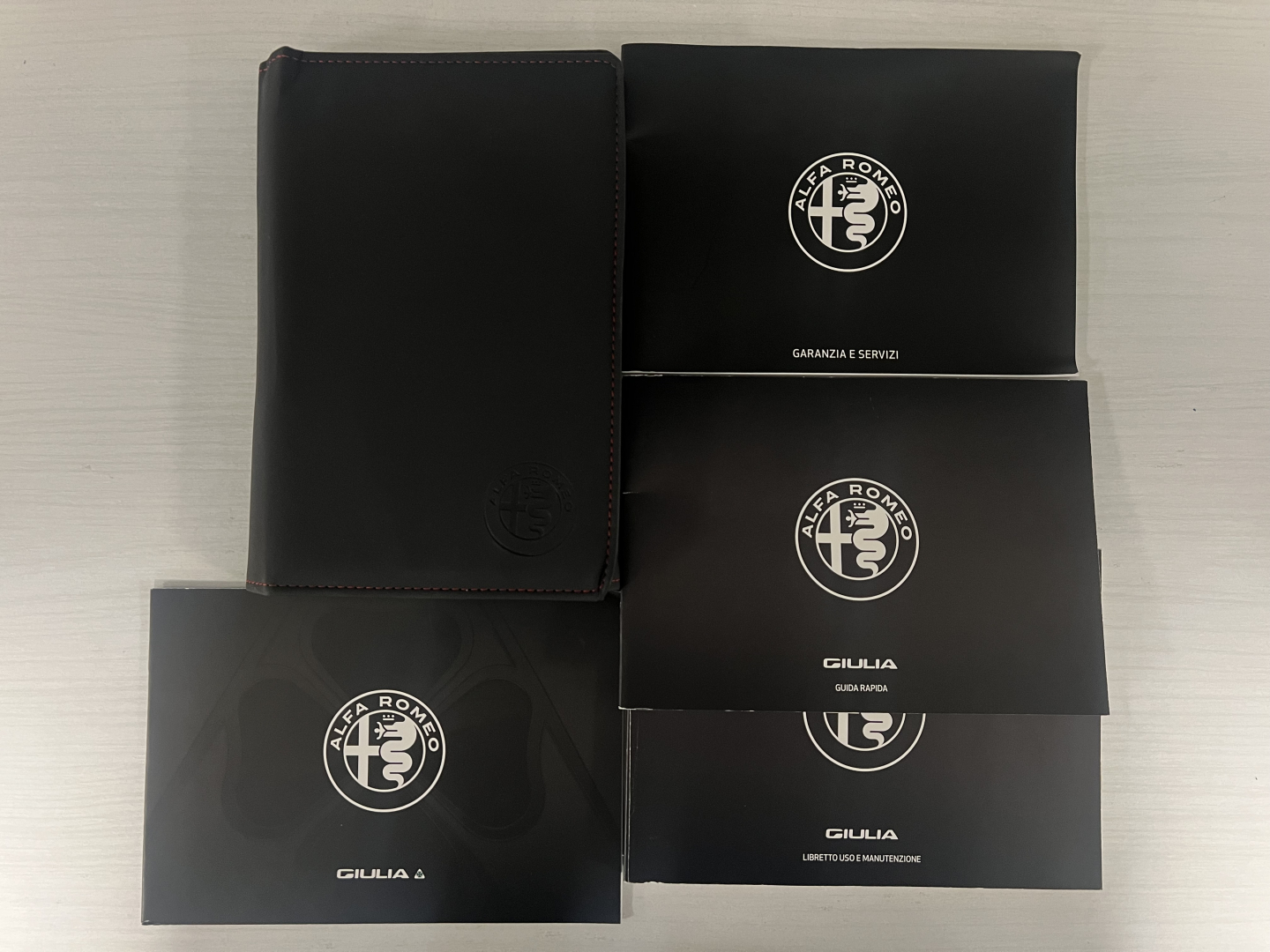 - DISPONIBILE CARPETTA IN PELLE ORIGINALE ALFA ROMEO GIULIA QUADRIFOGLIO COMPLETA DI: LIBRETTO D’USO E MANUTENZIONE CON RELATIVO ALLEGATO, LIBRETTO GUIDA RAPIDA E LIBRETTO GARANZIA E SERVIZI CON TAGLIANDI ESEGUITI E TIMBRATI IN RETE UFFICIALE ALFA ROMEO A SCADENZA REGOLARE, ULTIMO TAGLIANDO ESEGUITO IN DATA 06/02/2024 A 8.500KM