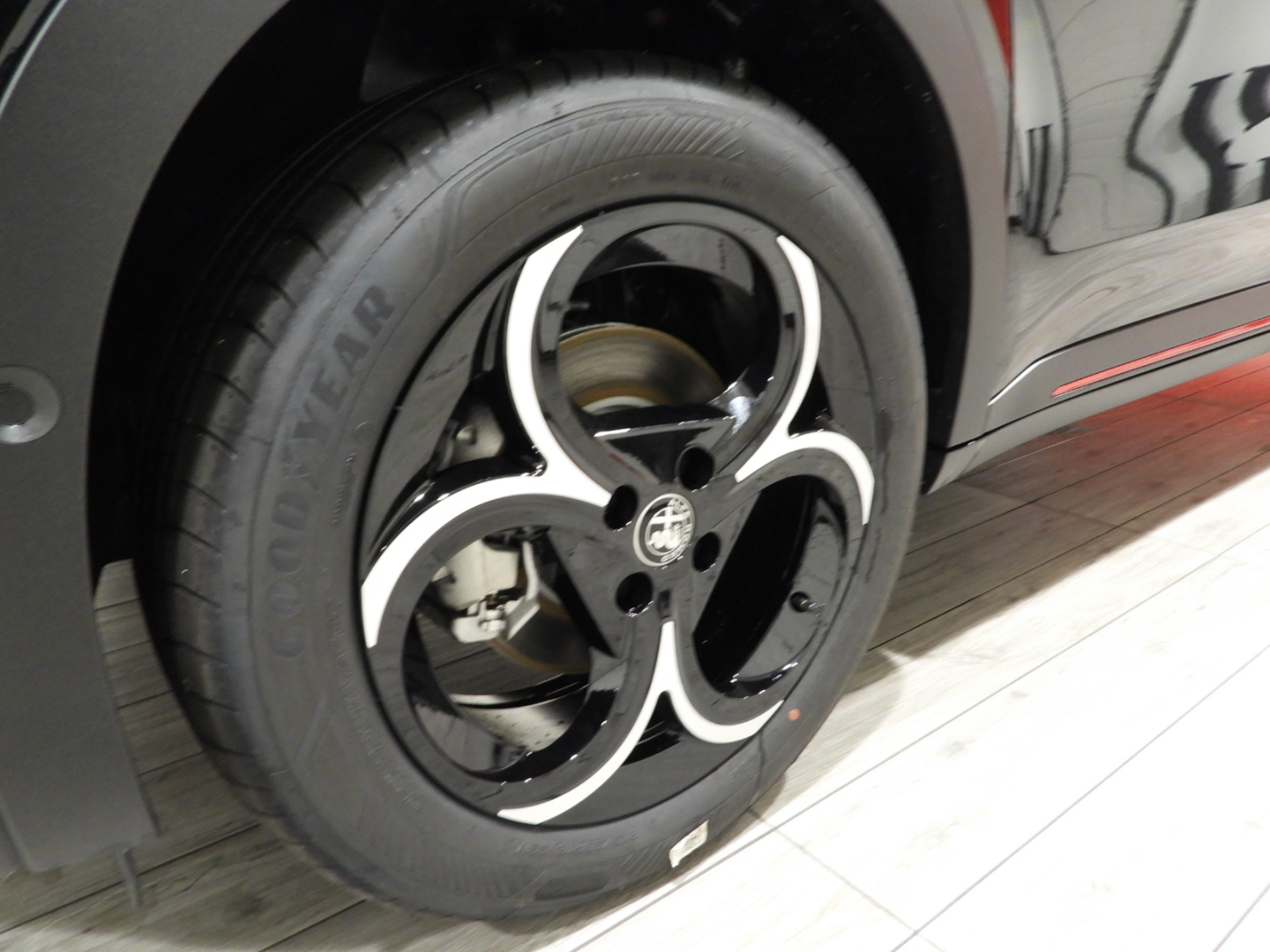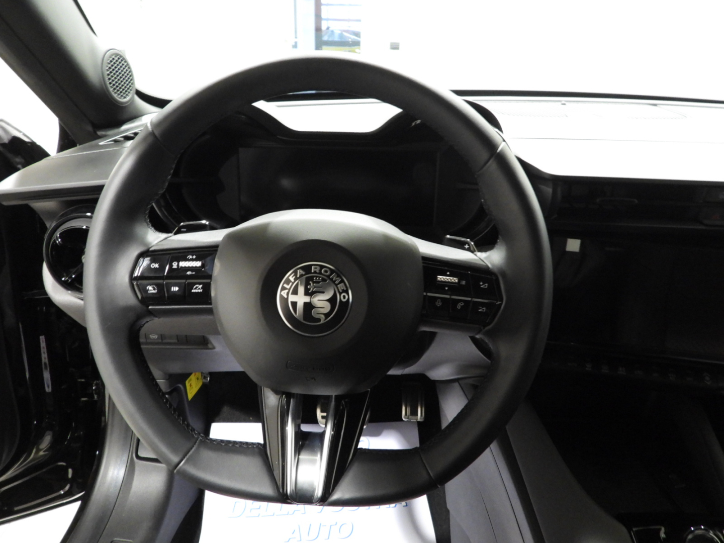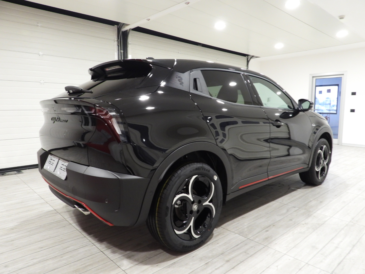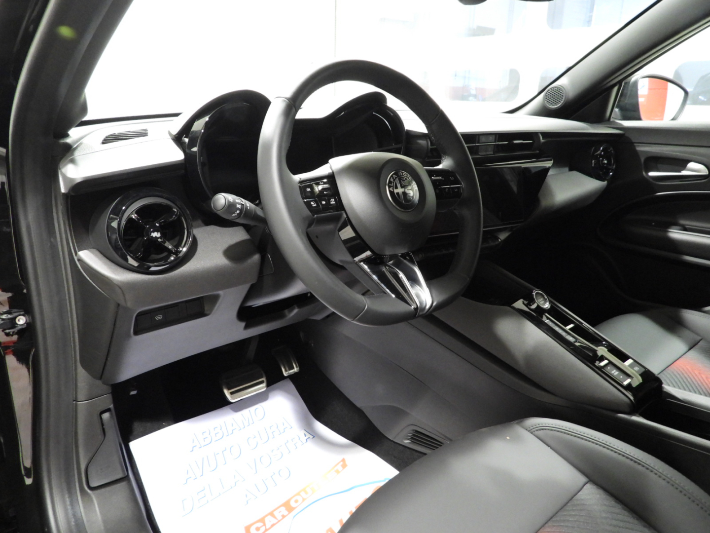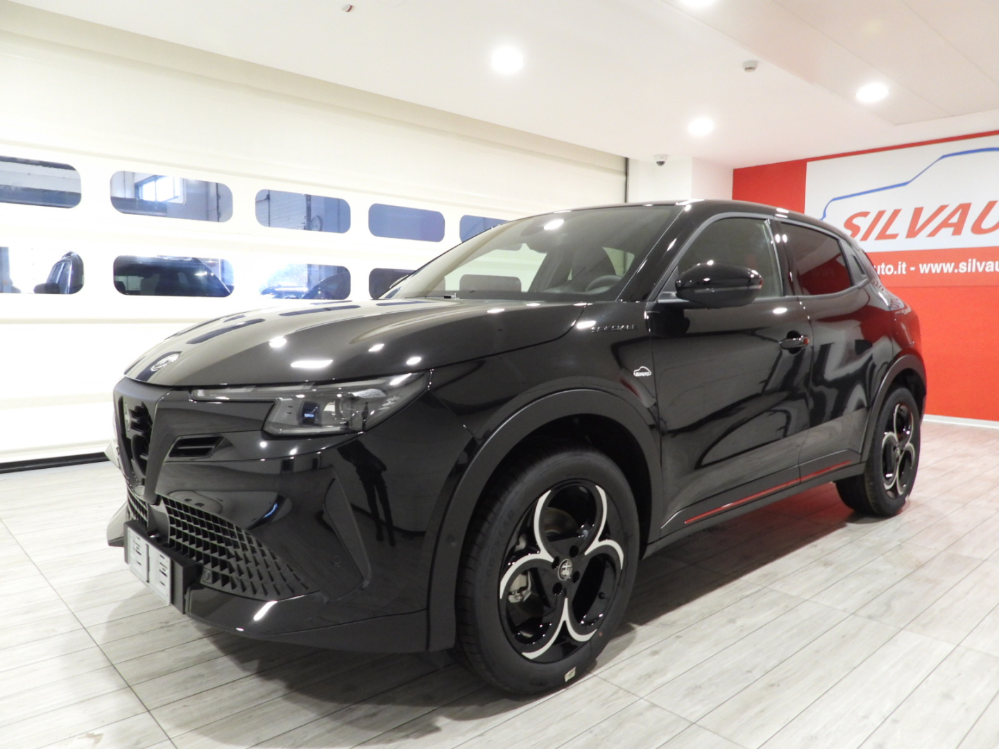 Sedili vinile e tessuto con reg. guidatore elettrica e massaggio a 6 vie e manuale passeggero, Alfa Connect Box Servizi Connessi Alfa Romeo: 10 anni Connect ONE & 3 anni Connect PLUS, Impianto Audio 6 altoparlanti Sistema, Infotainment con display da 10,25″ con navigazione, 2 porte USB, Bluetooth e comandi vocali, Quadro strumenti a cannocchiale da 12,3”, Alzacristalli elettrici anteriori/posteriori Piano baule regolabile a 3 livelli, Avviamento motore senza chiave, Poggiatesta posteriore, Bracciolo anteriore regolabile con vano, Portellone posteriore ad apertura e chiusura elettrica con funzione hands free, Climatizzatore automatico, Selettore modalità di guida, Fari anabbaglianti a LED, Specchietti retrovisori esterni regolabili elettricamente, Palette del cambio al volante, Body kit nero opaco con dettagli Rosso Brera e Scudetto frontale a V “Progresso”, Maniglie porte in tinta carrozzeria, Calotte specchietti retrovisori esterni nero lucido, Vetri posteriori oscurati, Fari posteriori a LED, Luci ambiente interne, Tasche schienale anteriori conducente/passeggero, Plafoniera anteriore e posteriore LED touch, Volante in pelle, Sedile posteriore abbattibile 60/40,Chiamata automatica d’emergenza, Lane centering e Traffic Jam Assist, Frenata automatica di emergenza con riconoscimento pedoni, Riconoscimento segnali stradali, Freno di stazionamento elettronico, Sensore pioggia per tergicristallo,Intelligent Adaptive Cruise Control, Sensori di parcheggio posteriori, Kit riparazione pneumatici Fix&Go, Telecamera posteriore con griglie dinamiche, Cerchi in lega da 18″ Fori, Pinze freno grigio anodizzate
