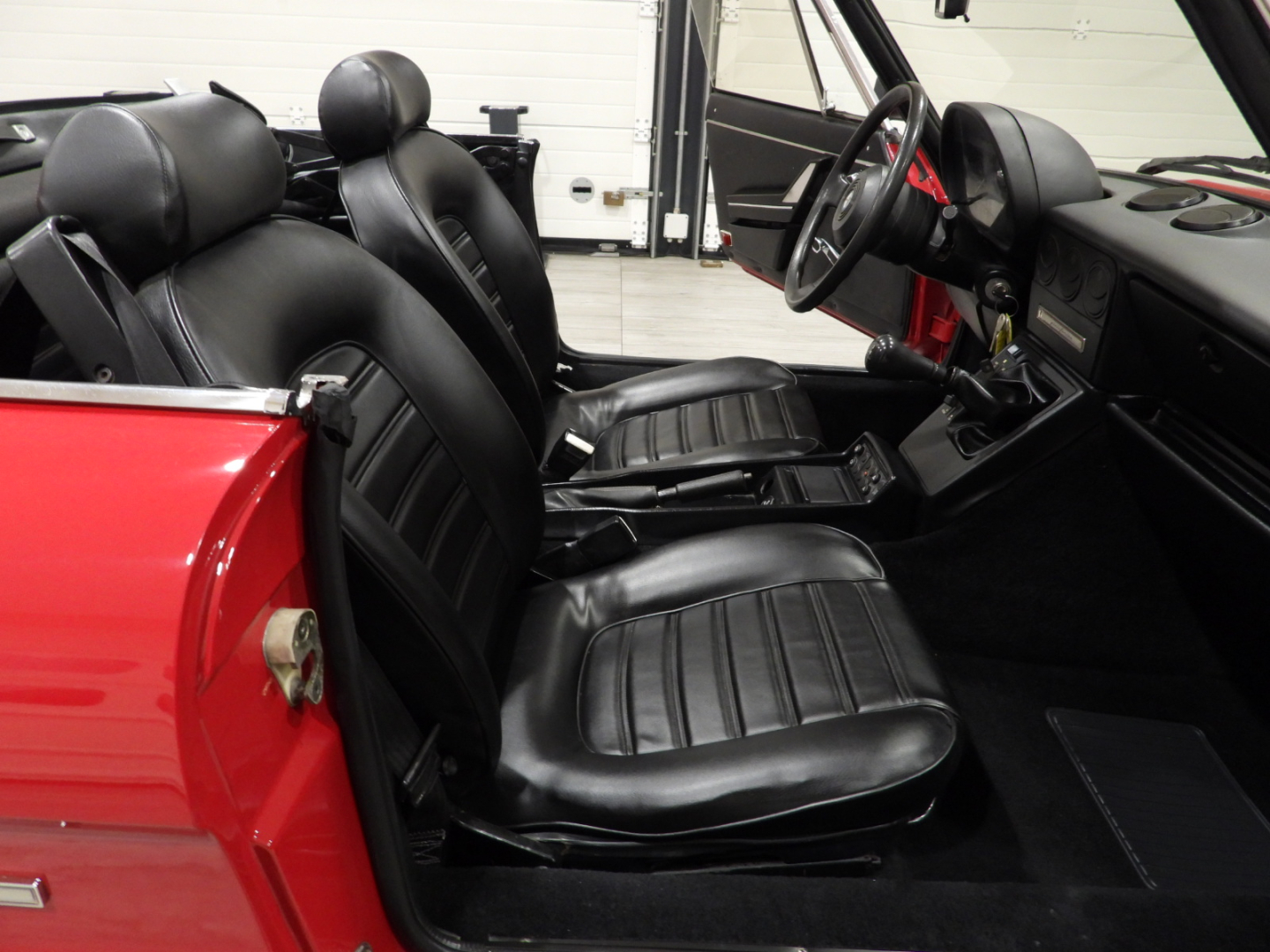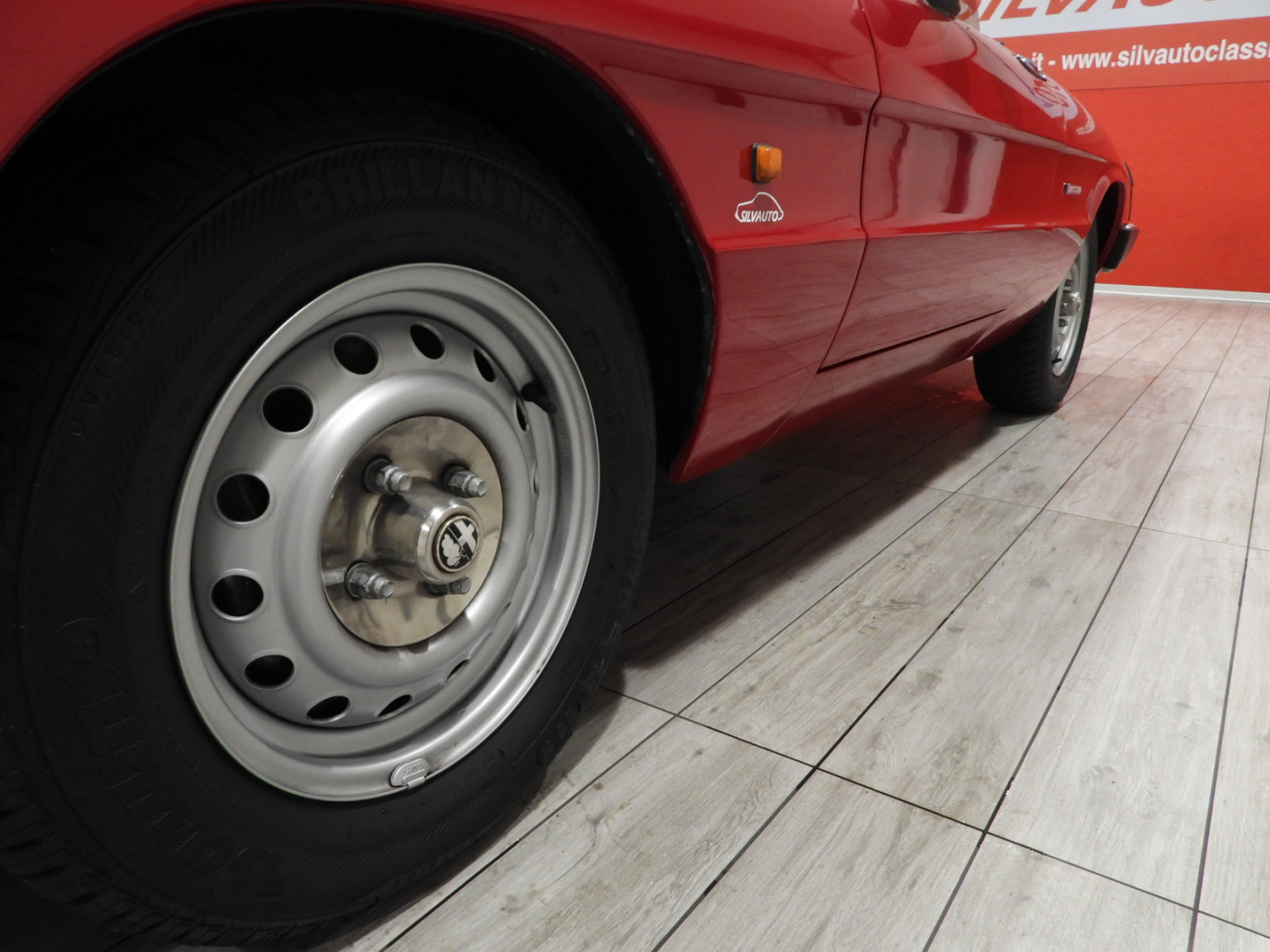 Sedili e pannelli sky nero, Moquette in lana nera al pavimento, Volante a tre razze, Doppio specchio esterno Alfa Romeo Vitaloni a regolazione elettrica, Capotte in tela nera, Cerchi in ferro con pneumatici 185/70 R14