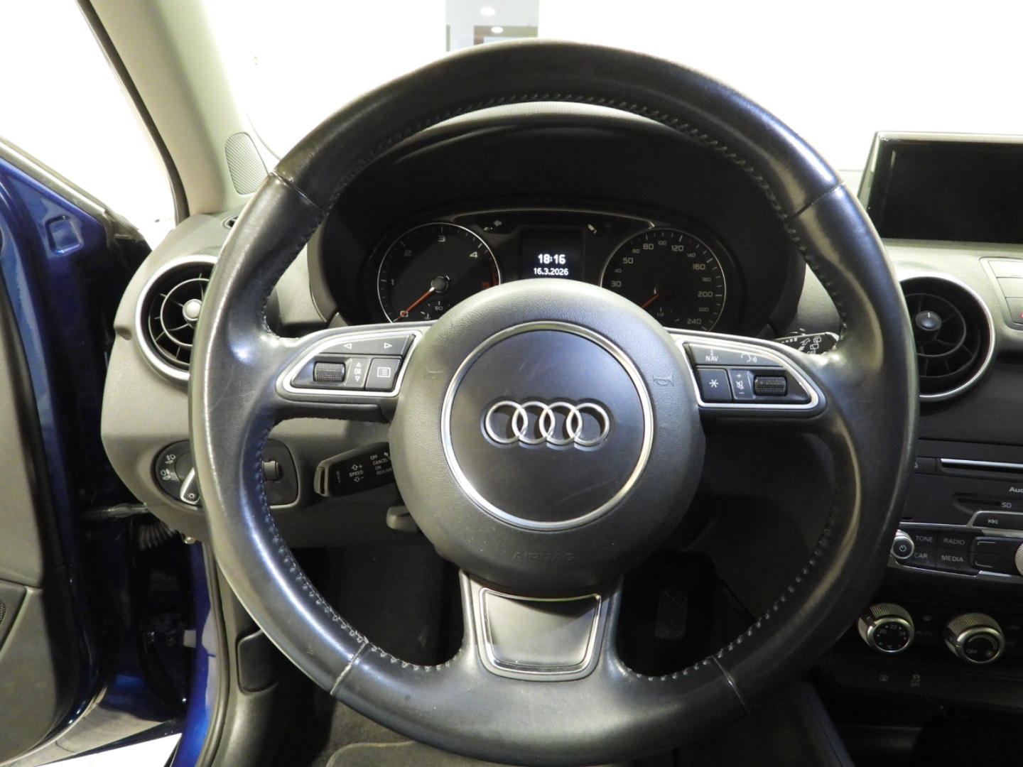 Guscio degli specchietti retrovisivi esterni nel colore carrozzeria, Vetri atermici, Appoggiatesta anteriori regolabili manualmente in altezza, Appoggiatesta posteriori per i due sedili laterali, regolabili manualmente in altezza, Cassetto portaoggetti lato passeggero illuminato, Cielo dell’abitacolo in tessuto grigio titanio, Sedili anteriori regolabili in altezza, Sedili anteriori regolabili in altezza, Volante sportivo multifunzionale in pelle a 3 razze con airbag fullsize, regolabile in altezza e profondità, con pomello leva del cambio in pelle e comandi multifunzionali per il comando dei sistemi Infotainment, Airbags fullsize, Airbag laterali anteriori e sistema di airbag per la testa, ASR – dispositivo di controllo della trazione, Attrezzi di bordo, Altoparlanti passivi, Alzacristalli elettrici, Chiusura centralizzata, Display centrale, Dispositivo antiavviamento elettronico, Dispositivo di assistenza alla frenata per collisione secondaria, Climatizzatore manuale, Radio Concert, gestione tramite MMI® integrato con display a colori da 6,5 pollici separato e menu Car, lettore CD e lettore schede SDHC (fino a 32 GB) compatibili con MP3, WMA e AAC, attacco AUX-IN, memoria per 50 stazioni con lista dinamica delle stazioni, ricezione gamme d’onda FM e AM (MW/LW), con «phase diversity» e adattamento del volume in funzione della velocità, funzione «TP-Memo» durante la marcia, Pacchetto Connectivity, Sistema Start & Stop, Blu utopia (D2), Cerchi in lega d’alluminio 7J x 16 a 10 razze, Tetto in colore di contrasto,