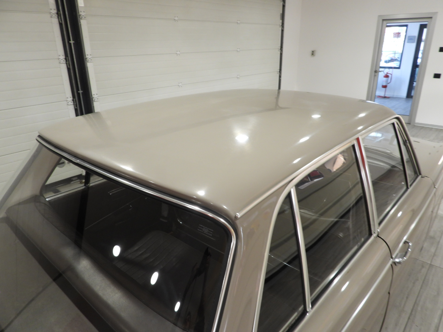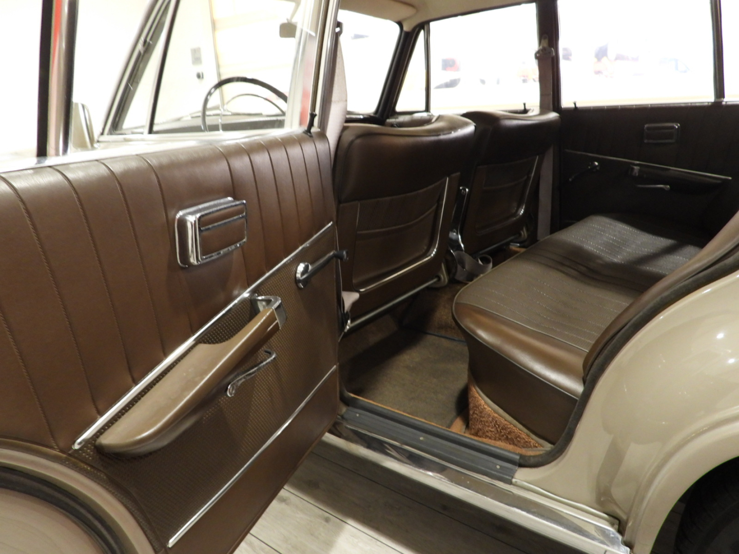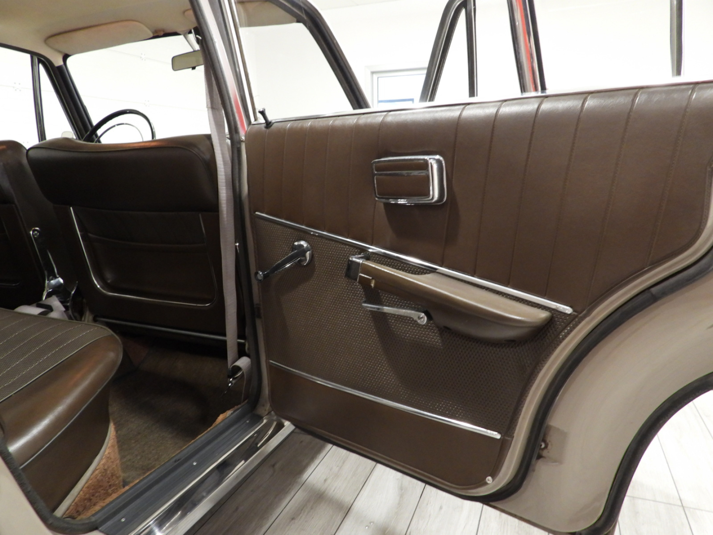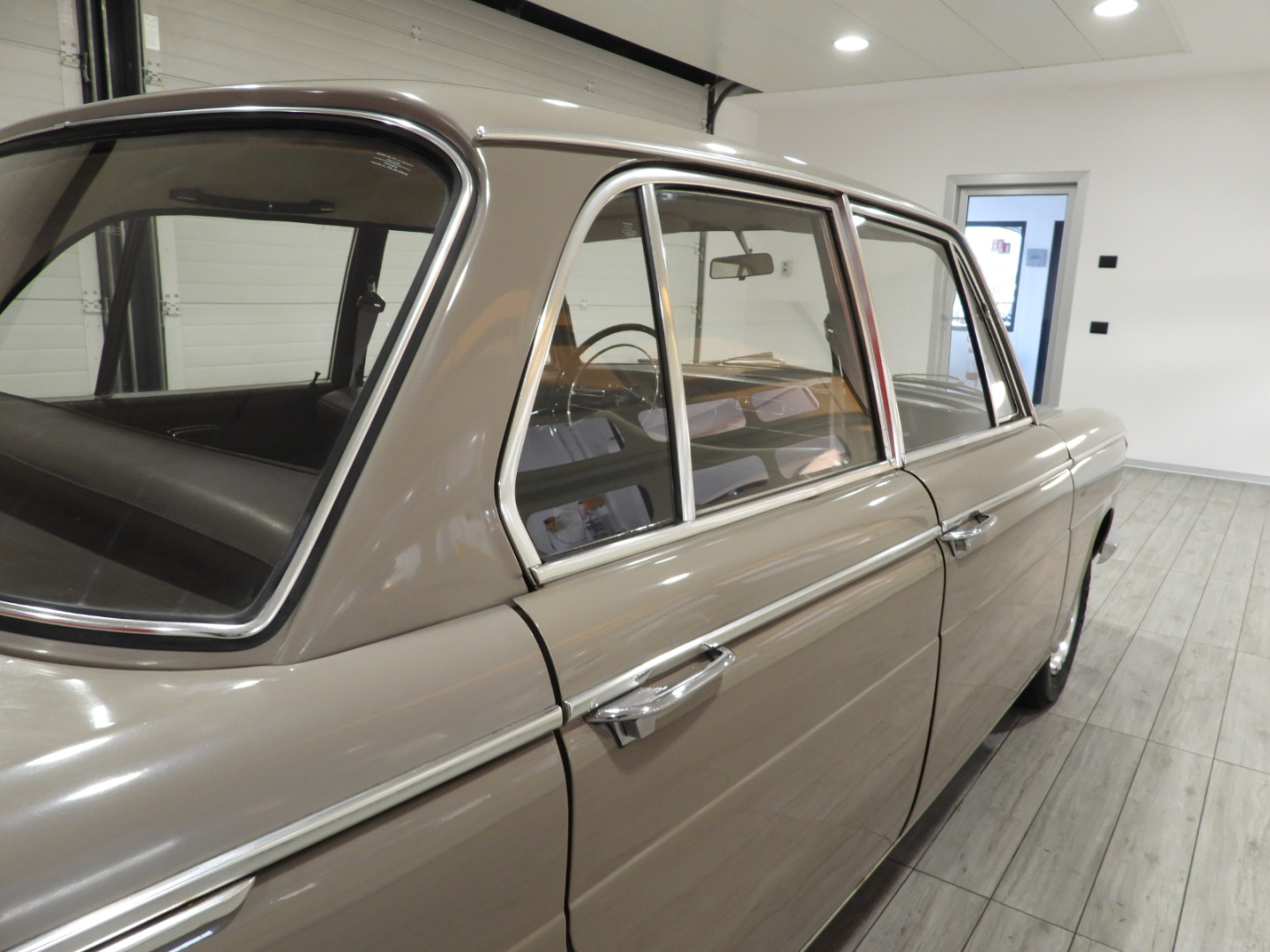 Sedili e pannelli in sky marrone, Moquette in bouclet nocciola al pavimento, Cruscotto con inserti in legno, Bracciolo posteriore, Cerchi in ferro con calotta cromata con pneumatici 165/80 R14