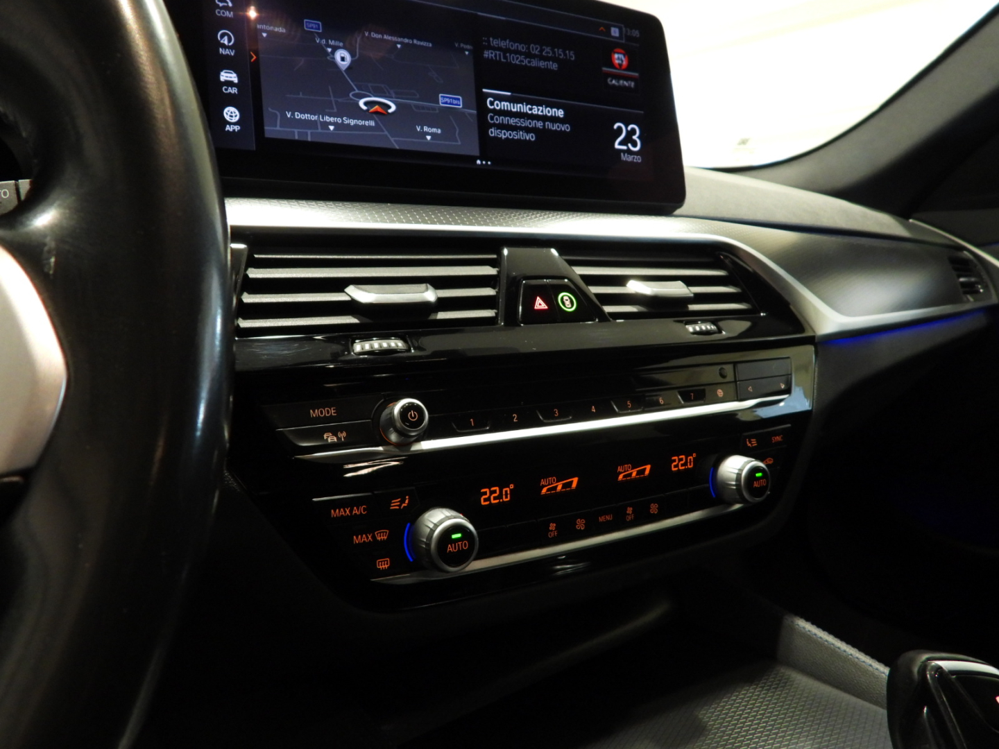 BMW ruota LL doppia razza 662M FG (01WX), Barre longitudinali nere (03AA), Gancio di rimorchio (03AC), M Pacchetto sport (0337), Telaio sportivo M (0704), Kit aerodinamico M (0715), Lucido Shadow Line (0760), M Shadow Line con contenuto ampliato (07M9), Cristalli oscurati (0420), Regol. attiva velocità + funzione Stop&Go (05DF), Sistema di assistenza al parcheggio (05DM), Assistente abbaglianti (05AC), Faro a LED adattativo (0552), Indicazione pressione pneumatici (02VB), Sicurezza per bulloni ruota (02PA), Cambio automatico con leve di comando (02TE), Driving Assistant (05AS), Active Guard (05AV), Protezione pedoni attiva (08TF), Emissioni CO2 (01CB), Sistema di recupero (01CE), Comfort Access (0322), Sedile sportivo (0481), Supporto lombare guid. e pass. (0488), Allum. Rhombicle accento madreperla cromo (04KH), Pacchetto specchietti ampliato (04T8), Luce abitacolo (04UR), Stuoia di inserimento velours (0423), Cielo antracite (0775), M Volante in pelle (0710), Impianto antifurto (0302), Documentazione di bordo in italiano (0884), Liquido refrigerante R1234yf (08R9), Batteria AGM da 90 Ah (A090), Chiamata di emergenza intelligente (06AC), Teleservices (06AE), Connected Drive Services (06AK), Connected Package Professional (06C4), BMW Live Cockpit Professional (06U3), WLAN Hotspot (06WD), Sintonizzatore DAB (idoneità DAB+) (0654), Funzioni supplementari specifiche UE (0230), Entfall BMW Digital Key (032Z), Climatizzazione automatica (0534), Tachimetro chilometrico (0548), Dummy-SALAPA (08EK).