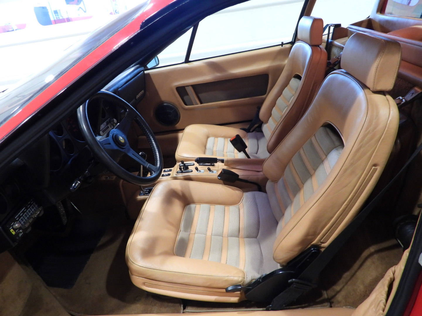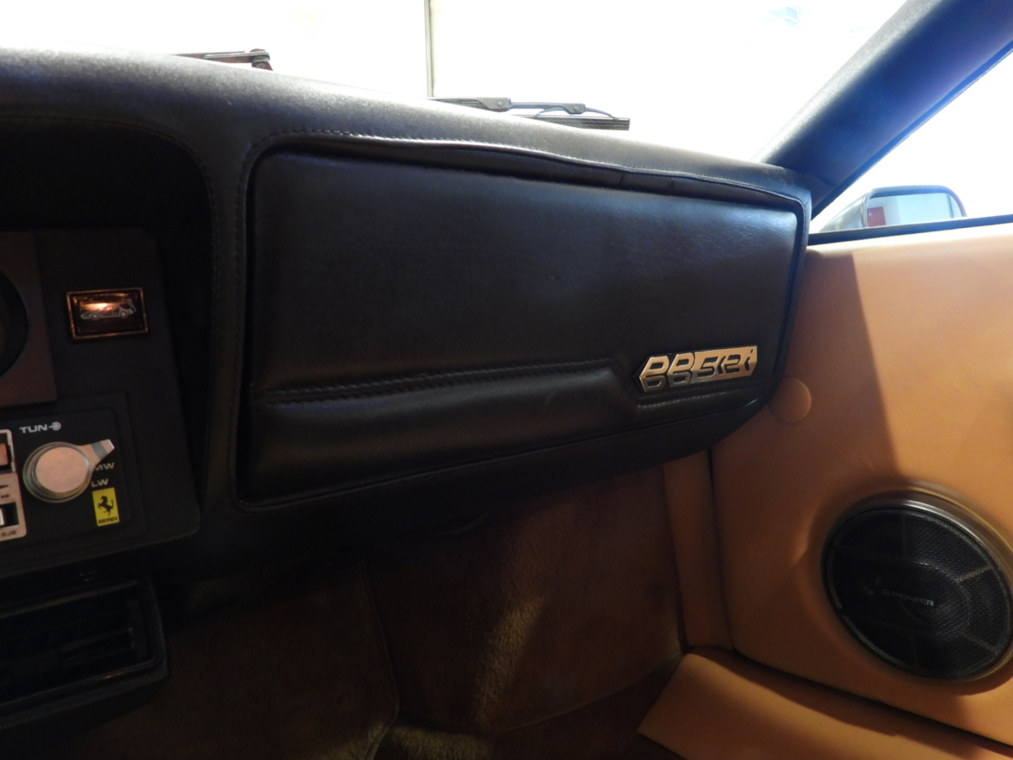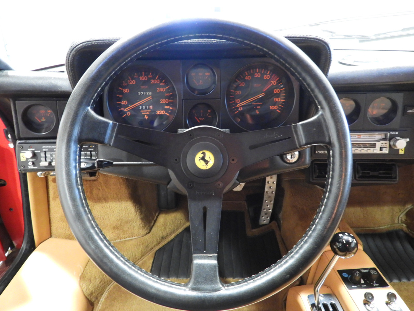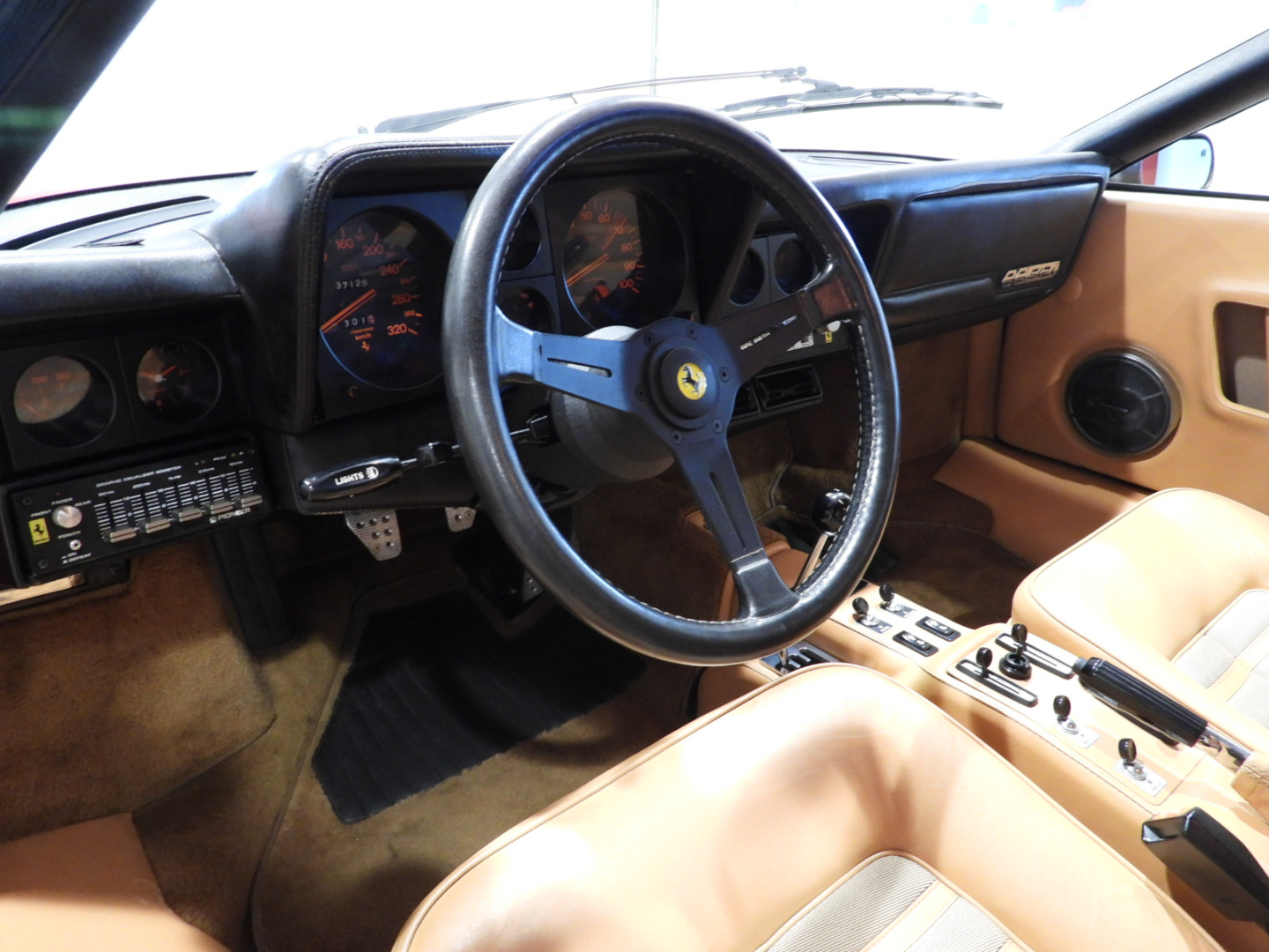Sedili e pannelli in pelle beige VM 3218 e stoffa 7403, Moquette in lana beige al pavimento, Volante originale Ferrari Nardi a tre razze con corona in pelle, Autoradio PIONEER Auto – Reverse AM/FM a cassetta Stereo 7…