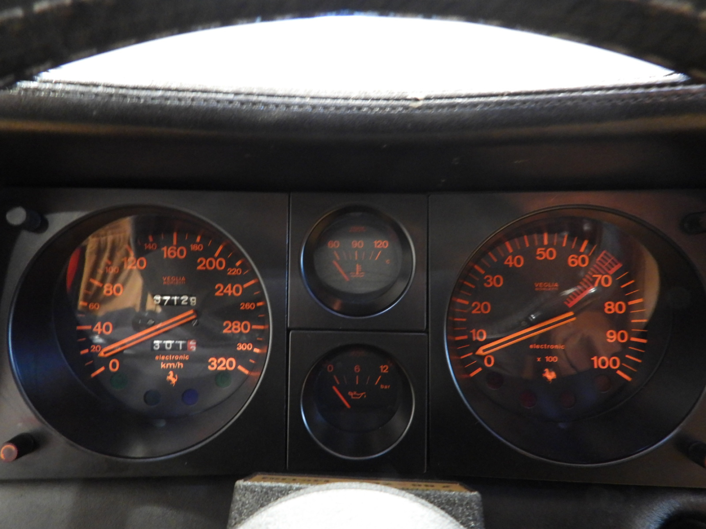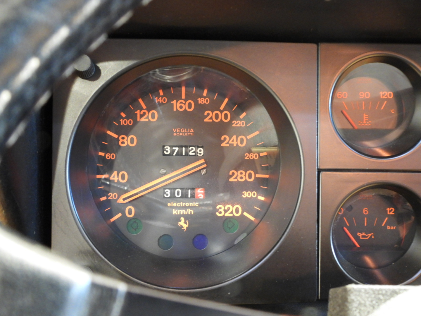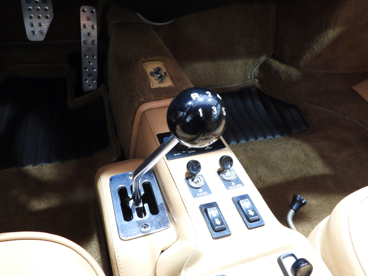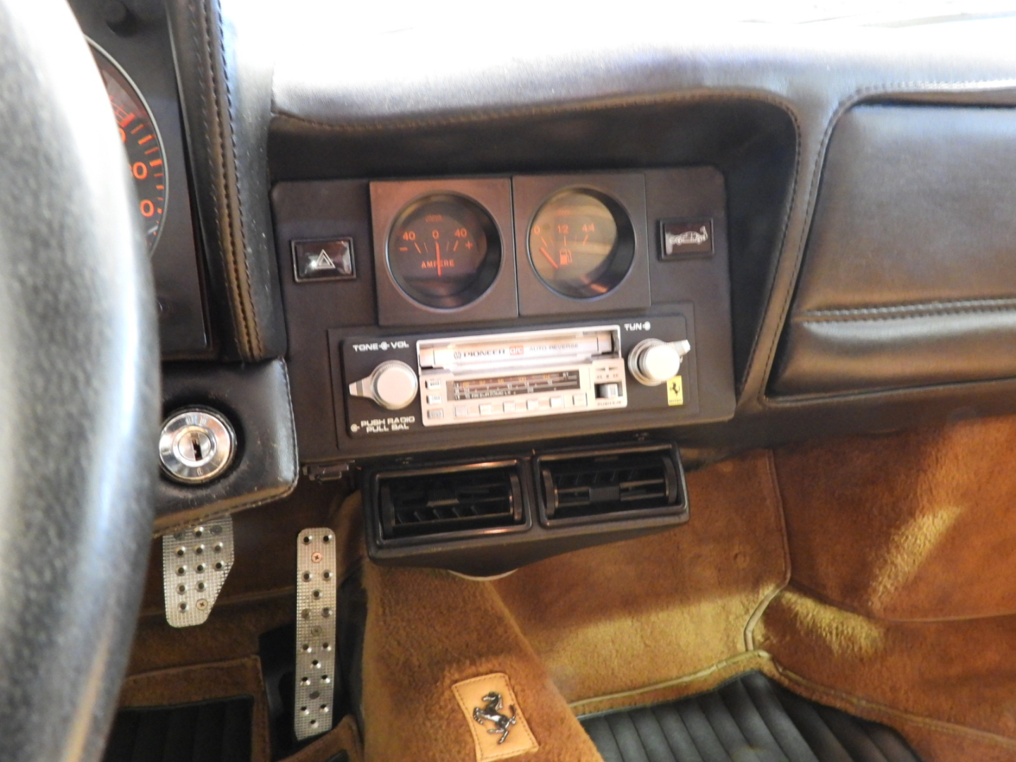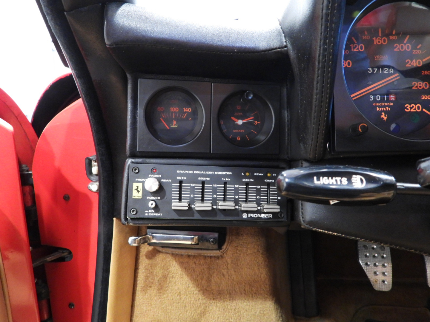 Sedili e pannelli in pelle beige VM 3218 e stoffa 7403, Moquette in lana beige al pavimento, Volante originale Ferrari Nardi a tre razze con corona in pelle, Autoradio PIONEER Auto – Reverse AM/FM a cassetta Stereo 7…