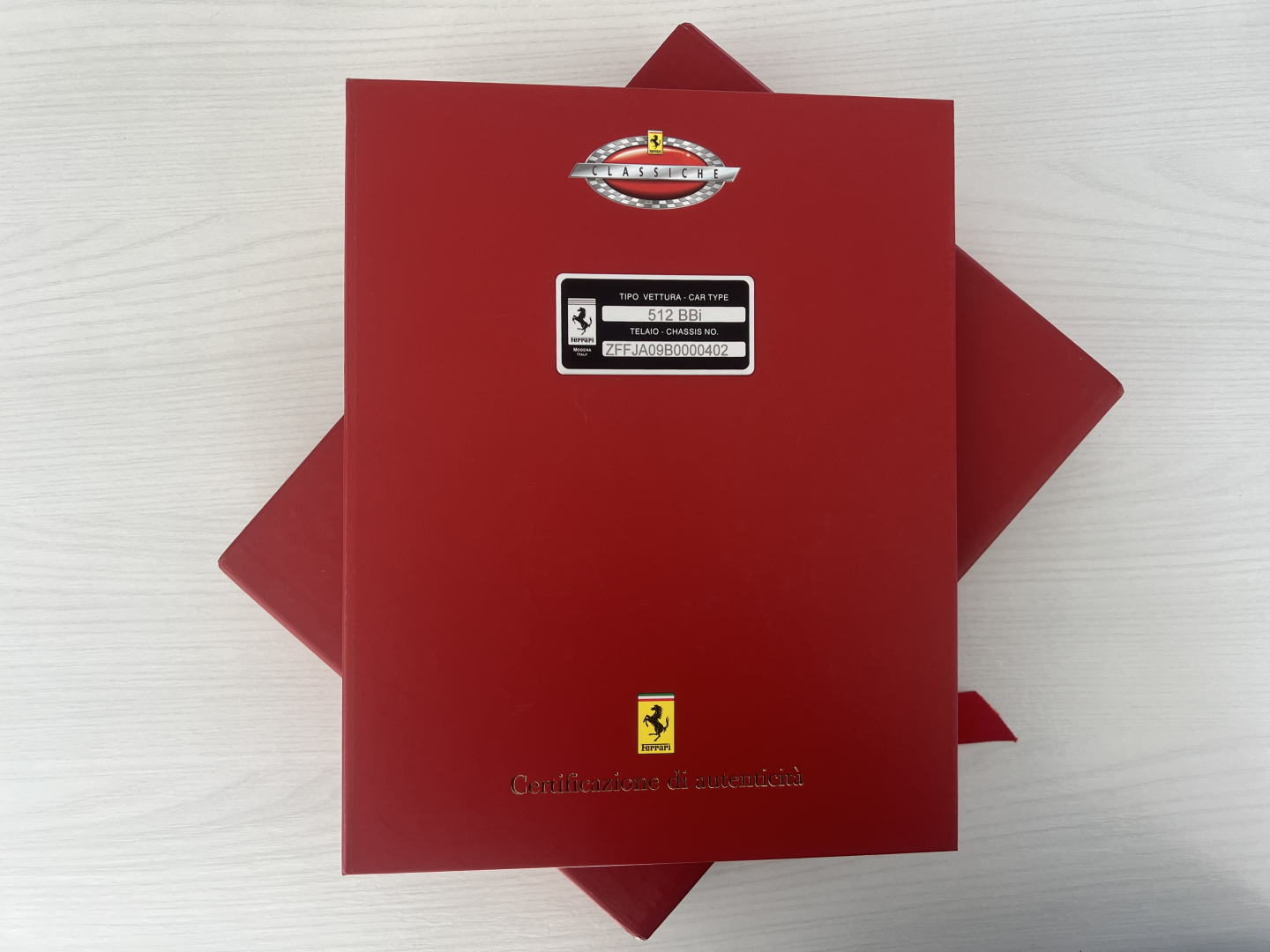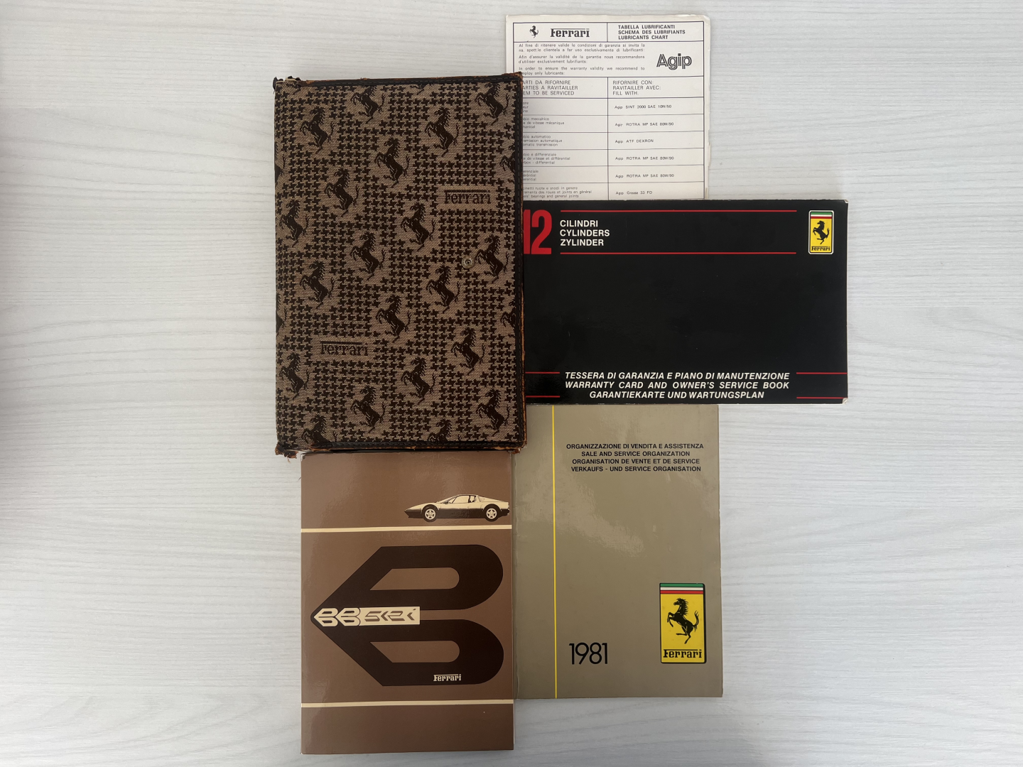 - DISPONIBILE CARPETTA ORIGINALE FERRARI COMPLETA DI LIBRETTO USO E MANUTENZIONE 512 BBi, LIBRETTO DI ORGANIZZAZIONE DI VENDITA E ASSISTENZA CON CONCESSIONARIE EUROPA DELL’EPOCA, TABELLA LUBRIFICANTI E TESSERA DI GARANZIA E PIANO DI MANUTENZIONE CON TESSERA DI GARANZIA ,DOVE SI EVINCE L’ORIGINALITA’ DELLA VETTURA ANCORA CORRSIPONDENTE ALLA PRODUZIONE DA NUOVA, TAGLIANDI ESEGUITI E TIMBRATI IN RETE UFFICIALE FERRARI