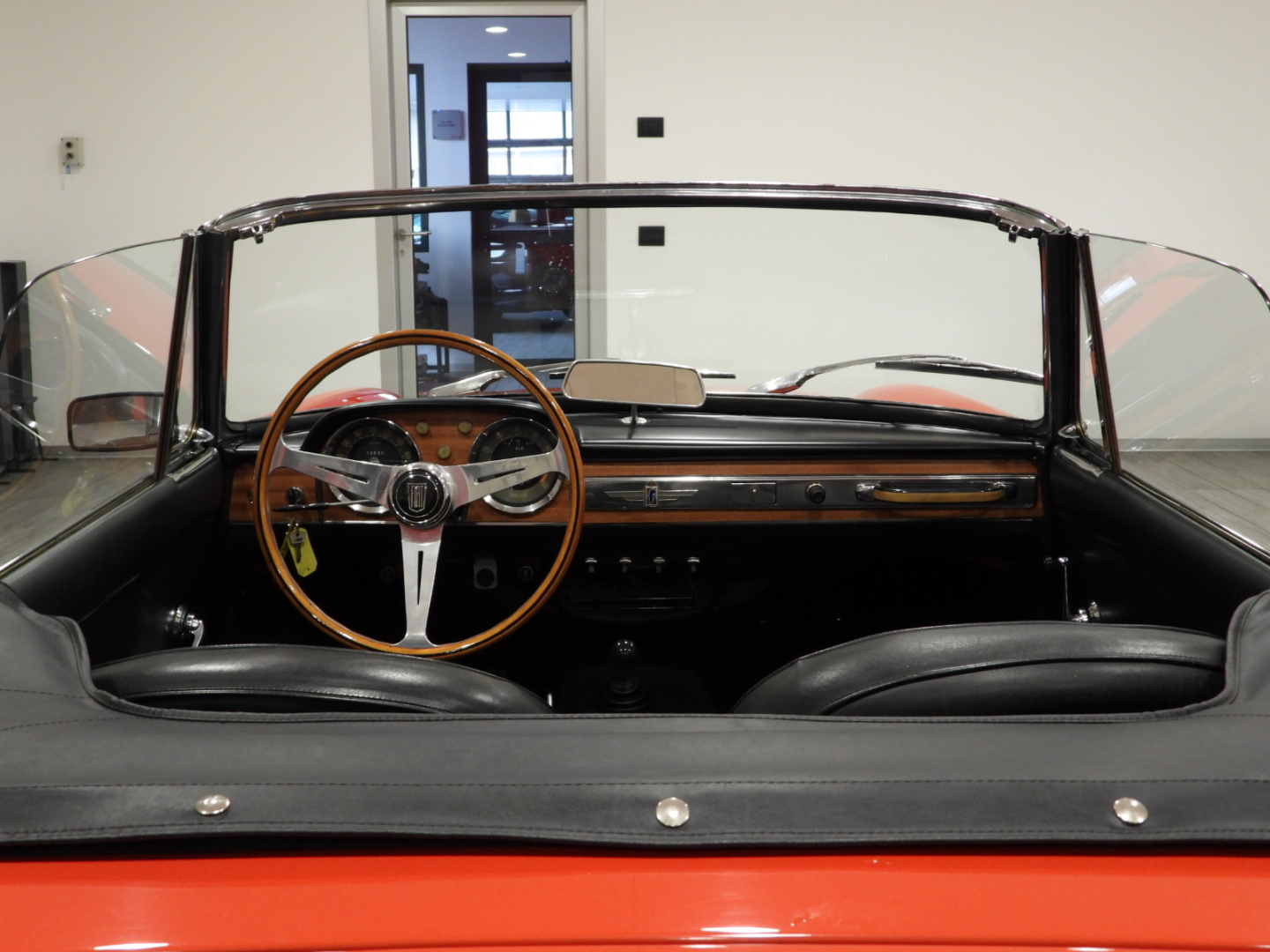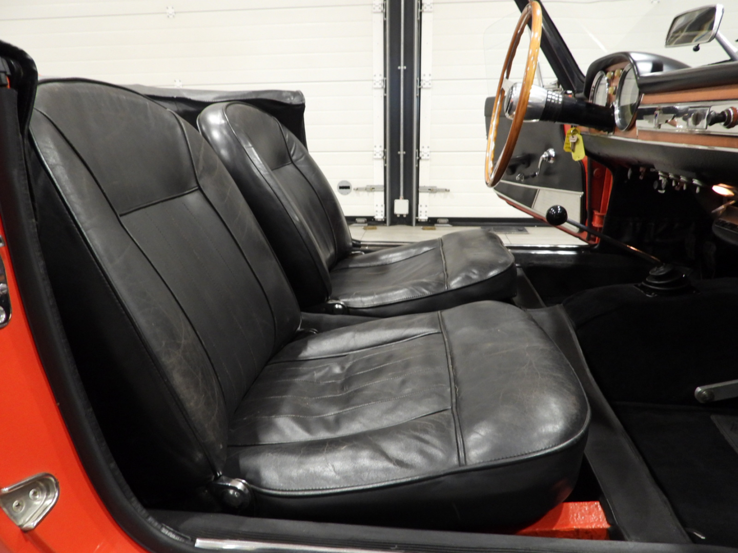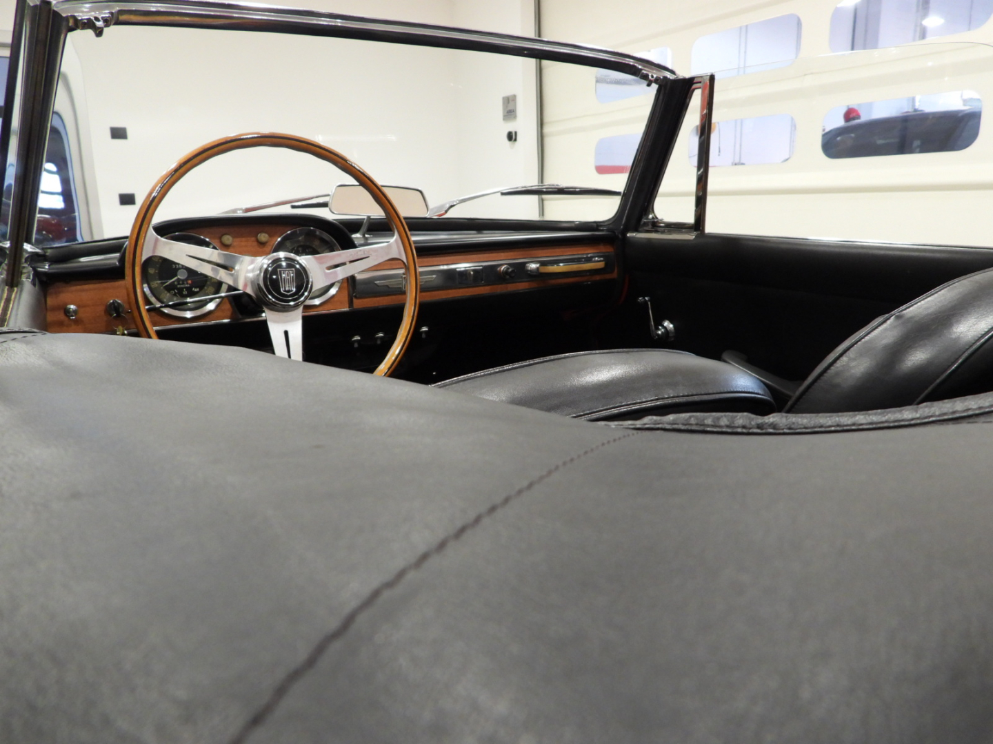 Sedili e pannelli in sky nero, Volante originale Nardi a tre razze in alluminio lucidato con corona in legno, Capotte in tela nera, Copri capotte in sky nero