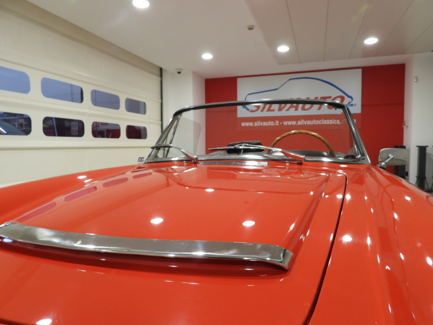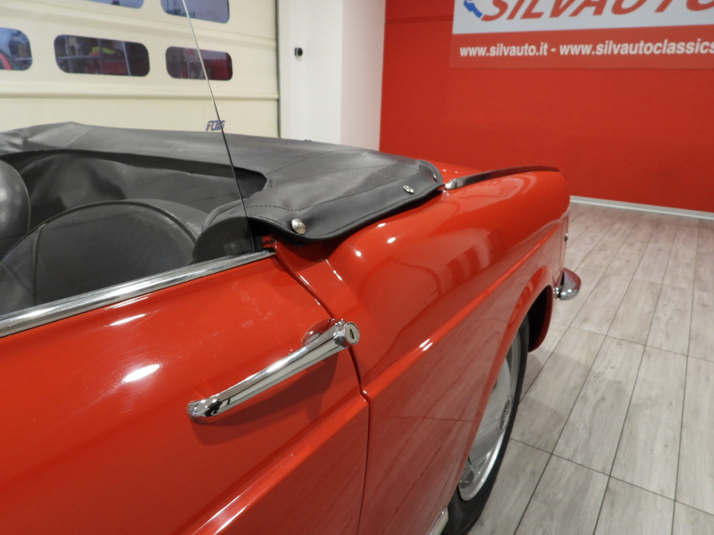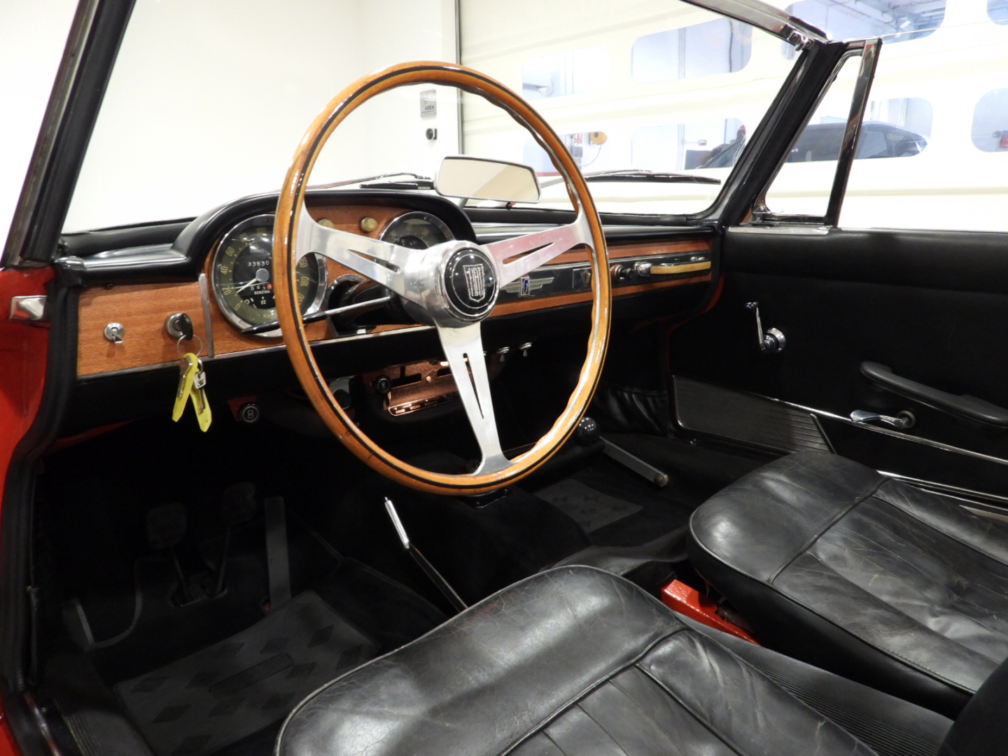 Sedili e pannelli in sky nero, Volante originale Nardi a tre razze in alluminio lucidato con corona in legno, Capotte in tela nera, Copri capotte in sky nero