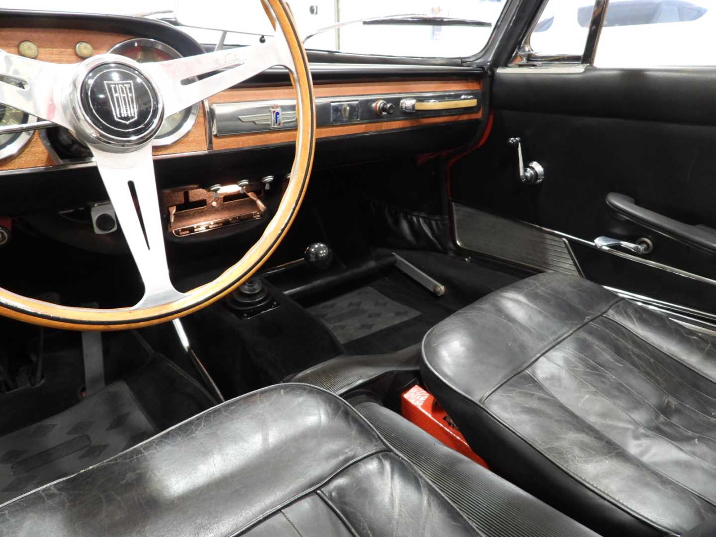 Sedili e pannelli in sky nero, Volante originale Nardi a tre razze in alluminio lucidato con corona in legno…