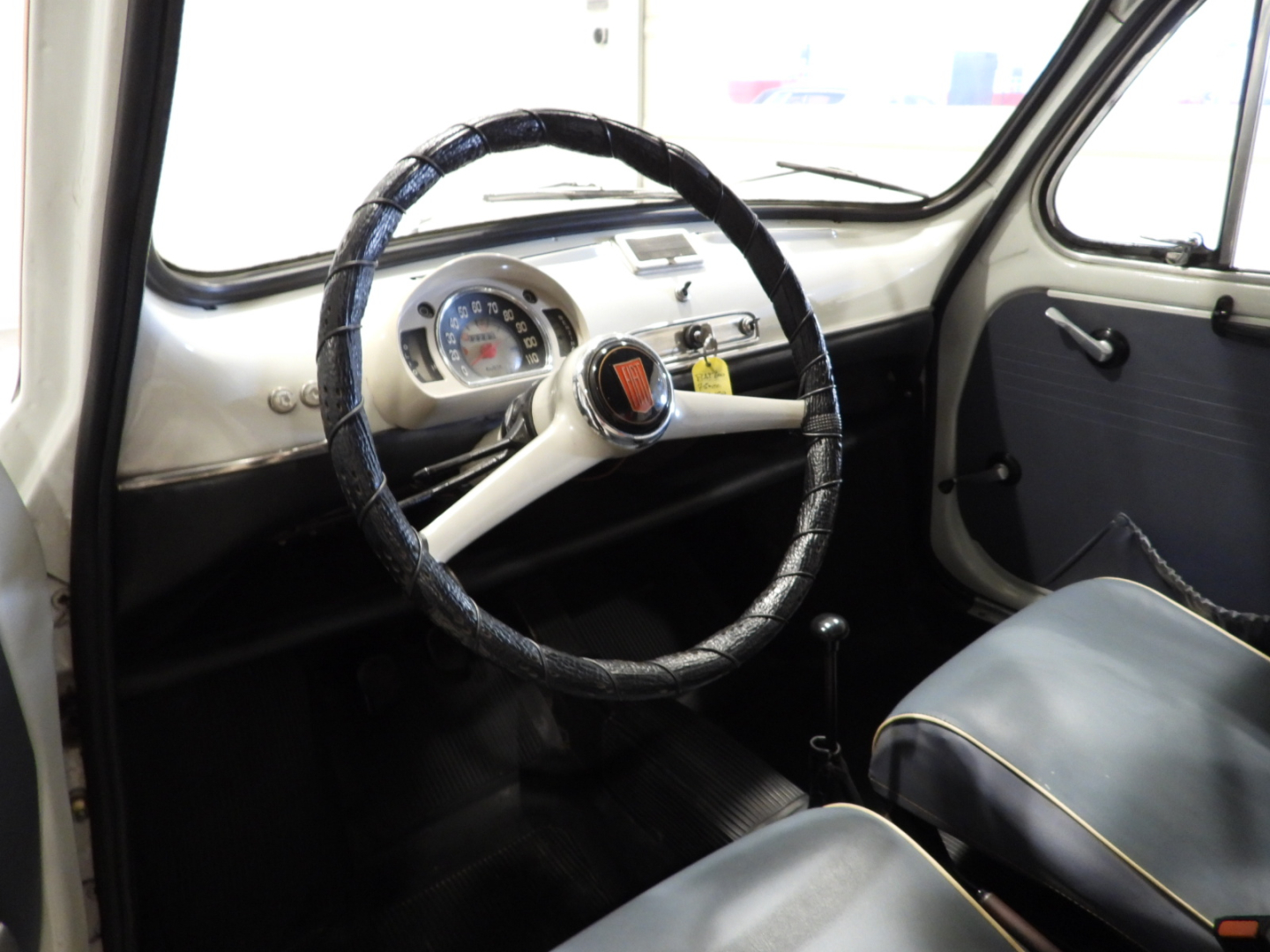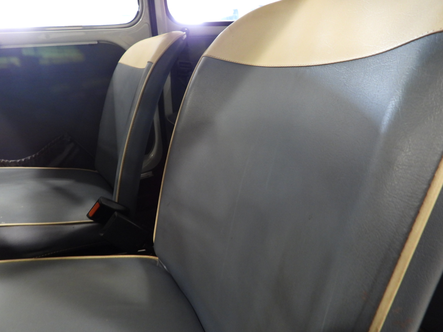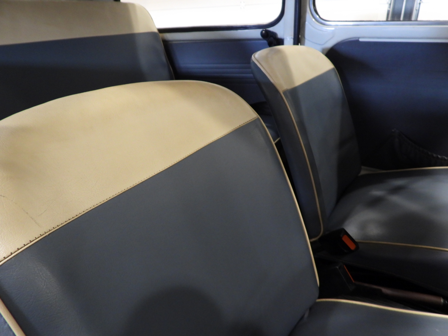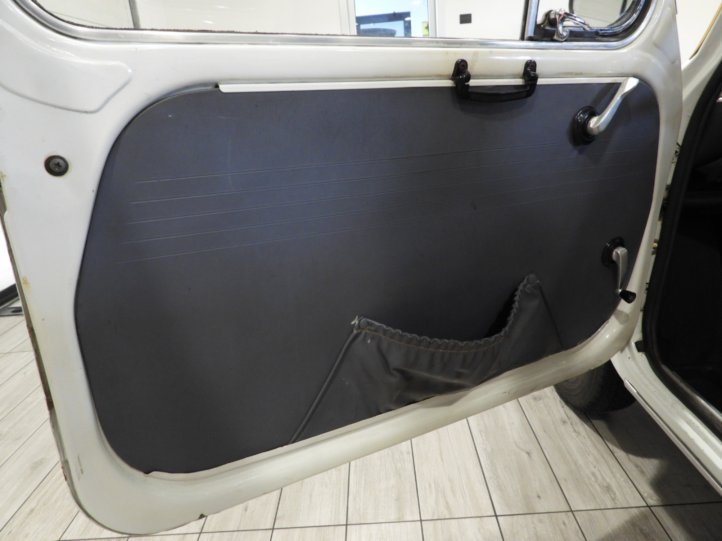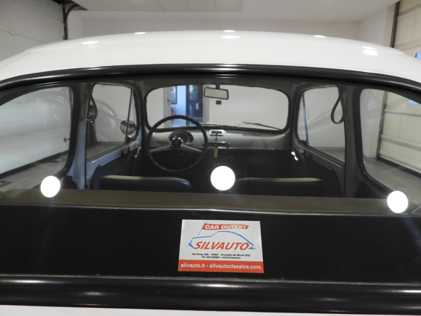 Sedili e pannelli in Vipla celeste e avorio, Specchio esterno lato guida cromato, Cerchi in ferro con calotta Fiat Cromata con pneumatici 145SR12, Staccabatteria
