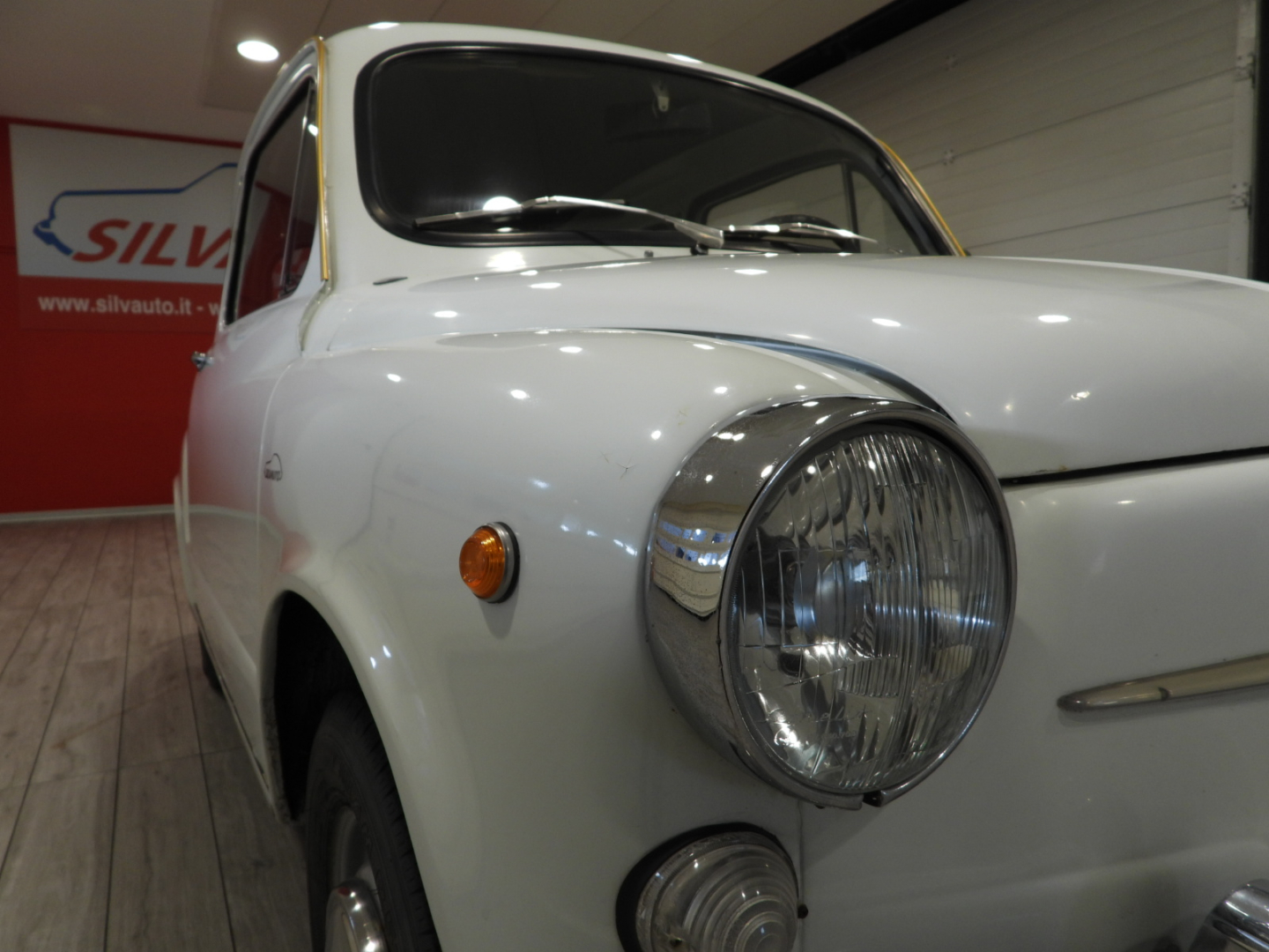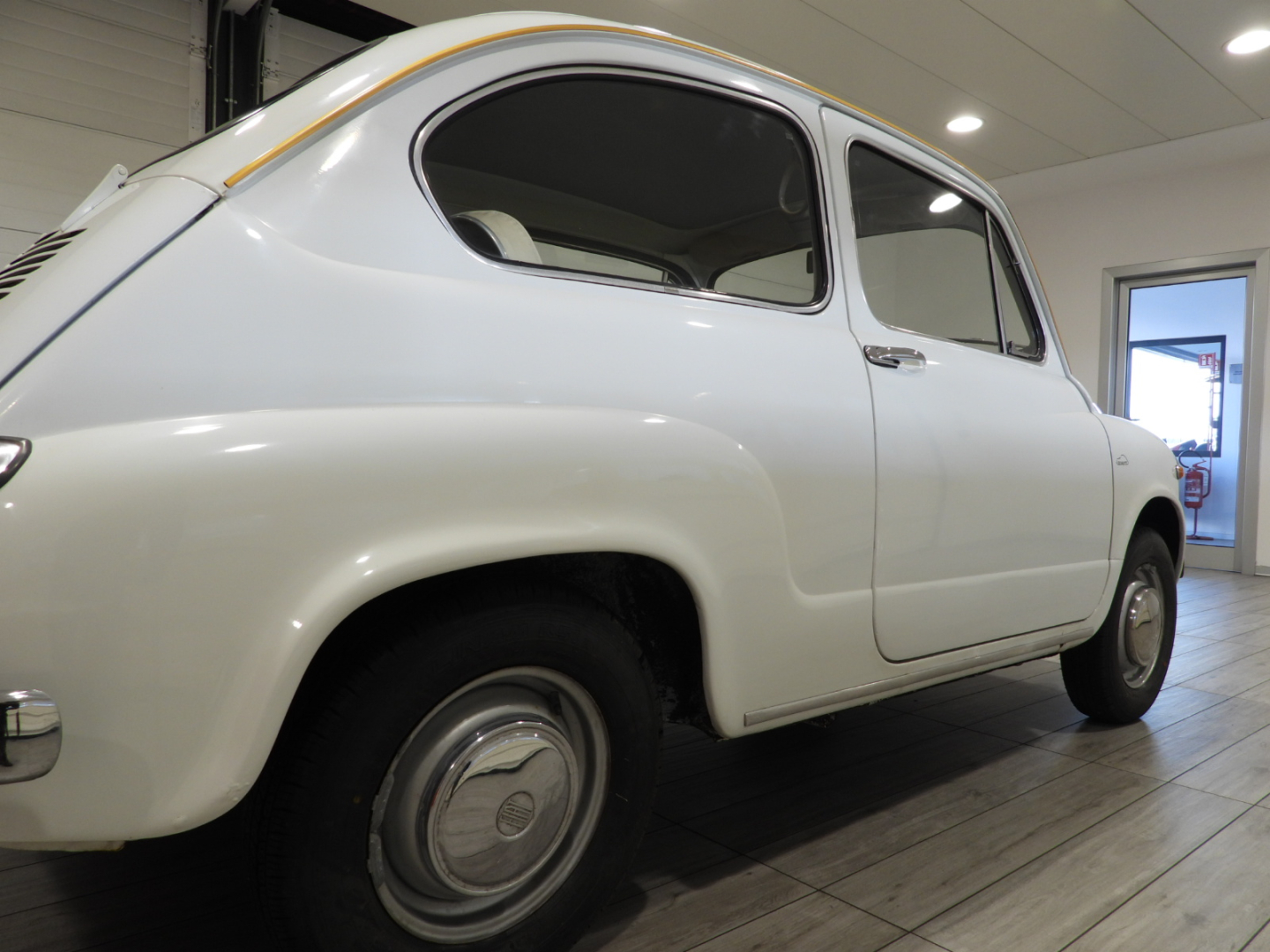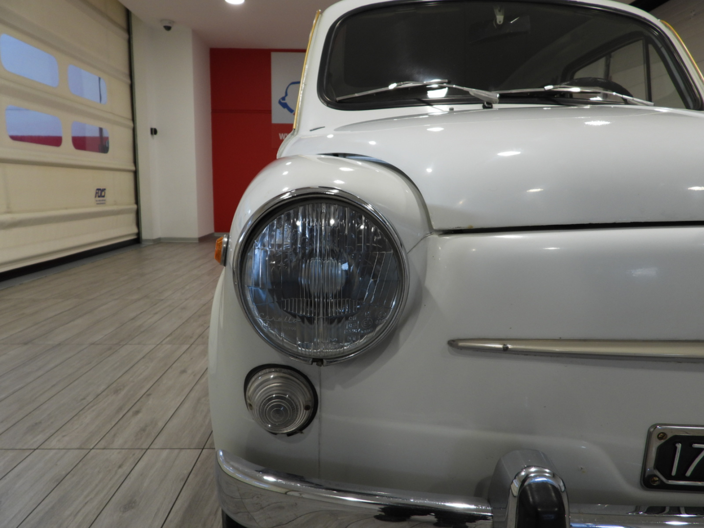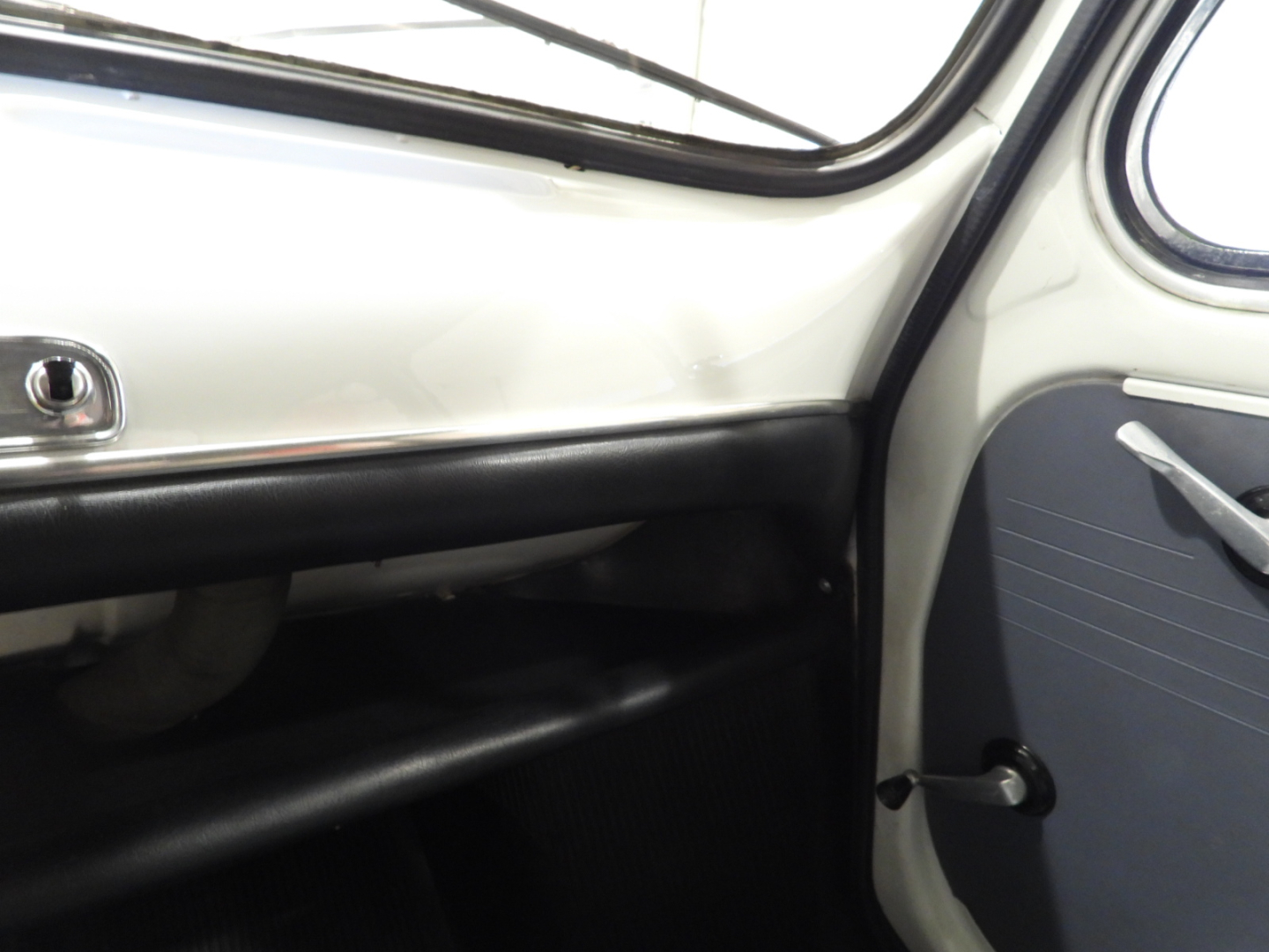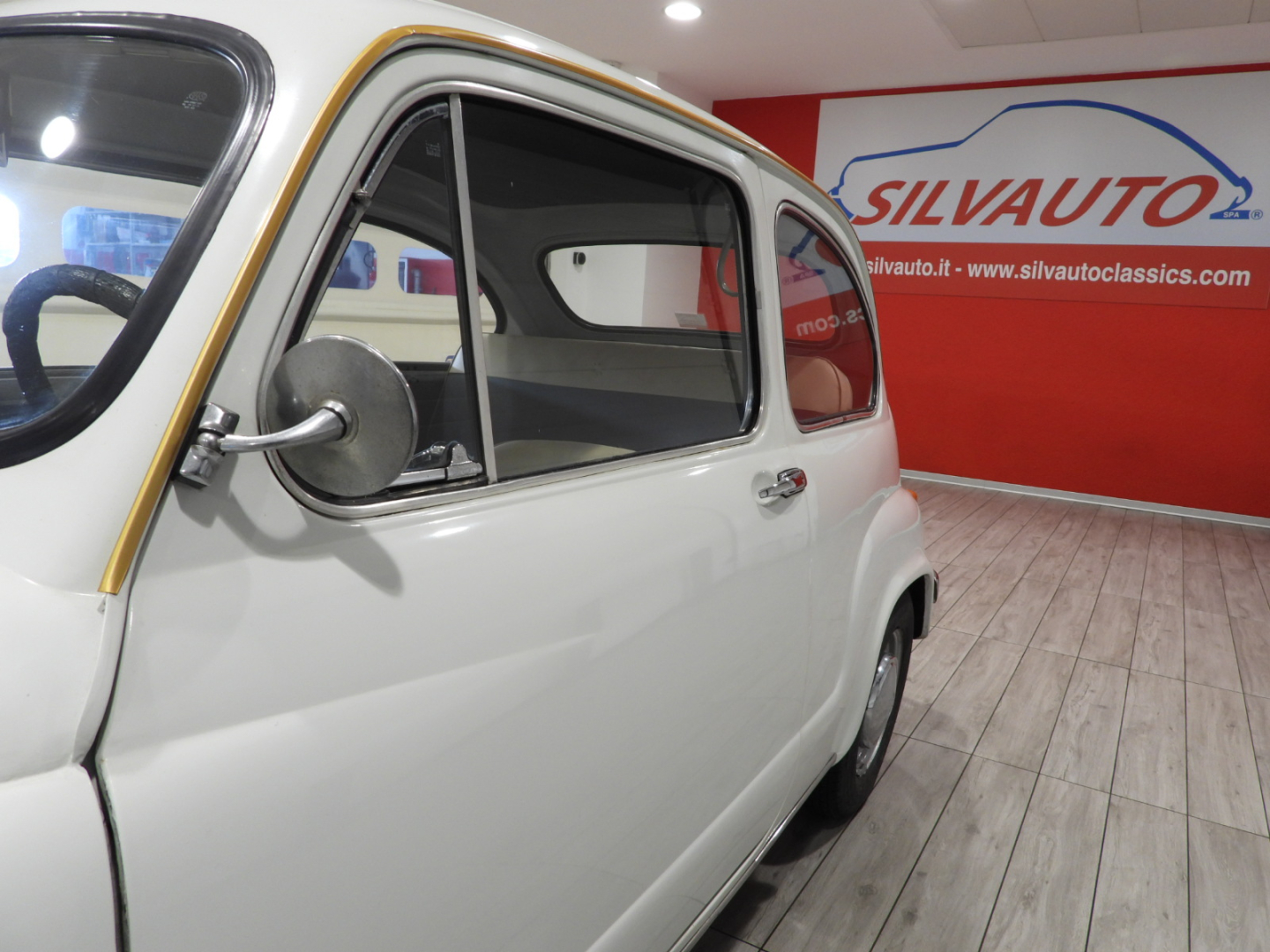 Sedili e pannelli in Vipla celeste e avorio, Specchio esterno lato guida cromato, Cerchi in ferro con calotta Fiat Cromata con pneumatici 145SR12, Staccabatteria