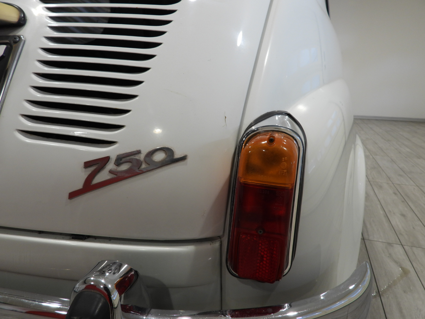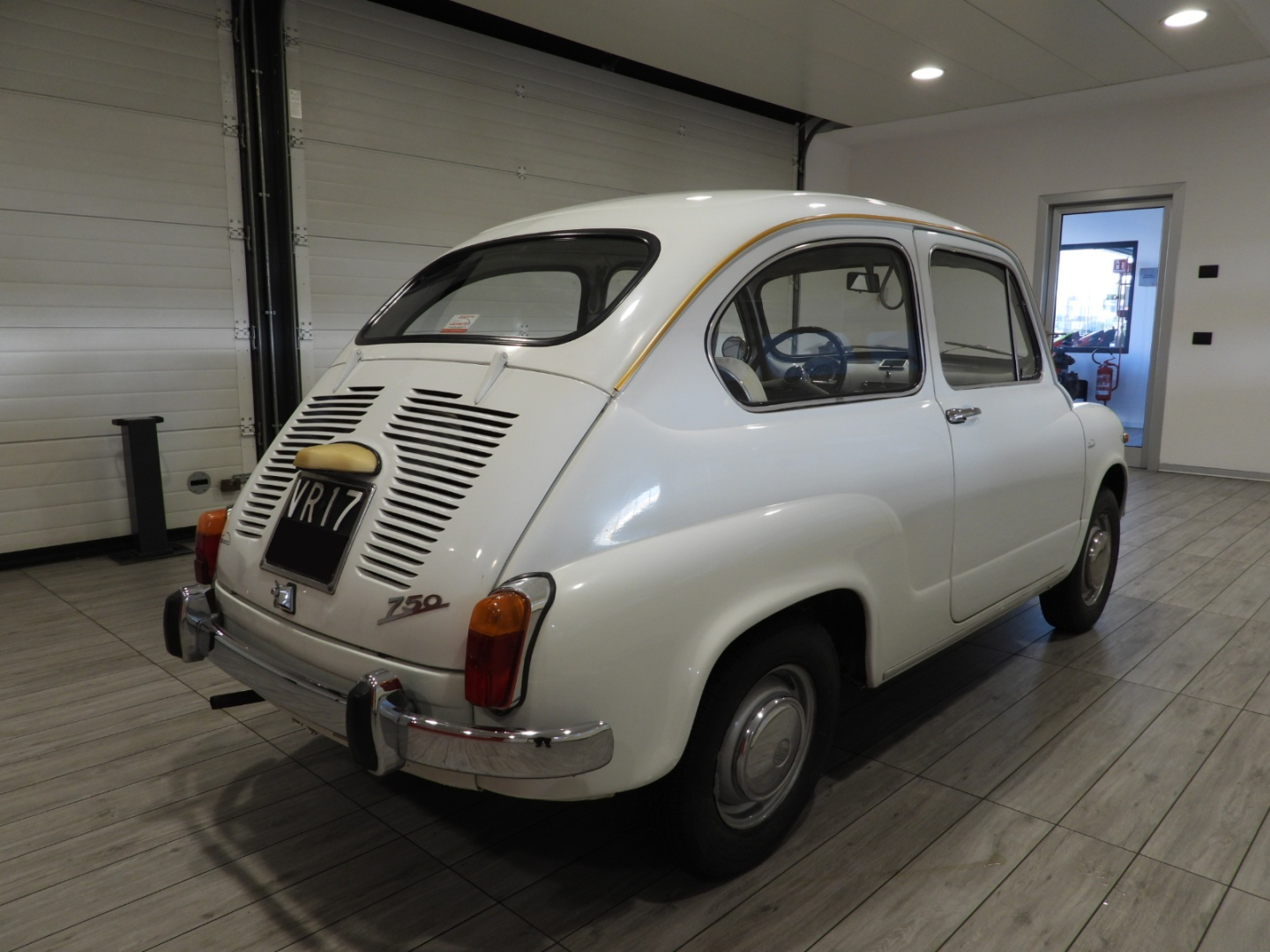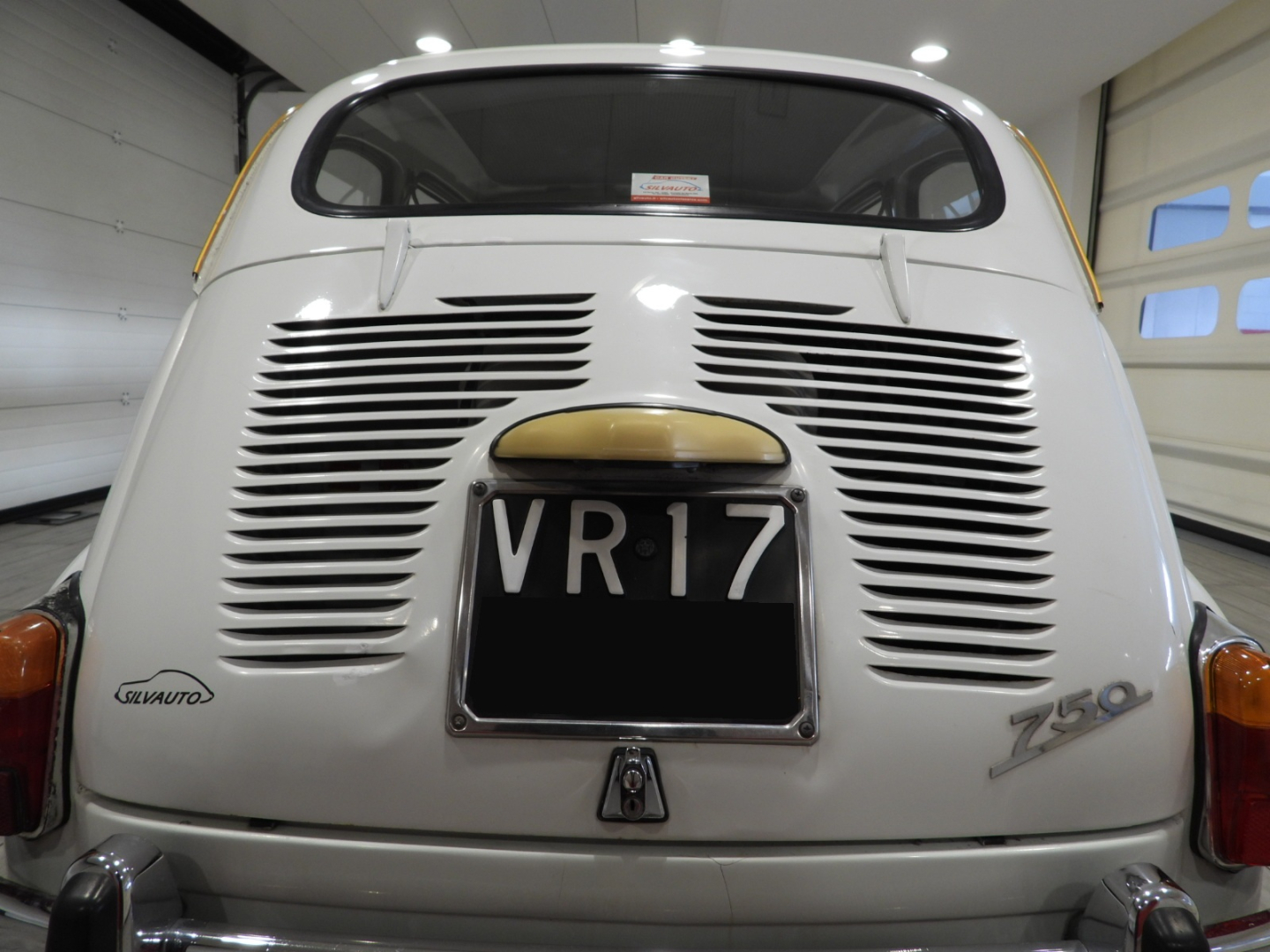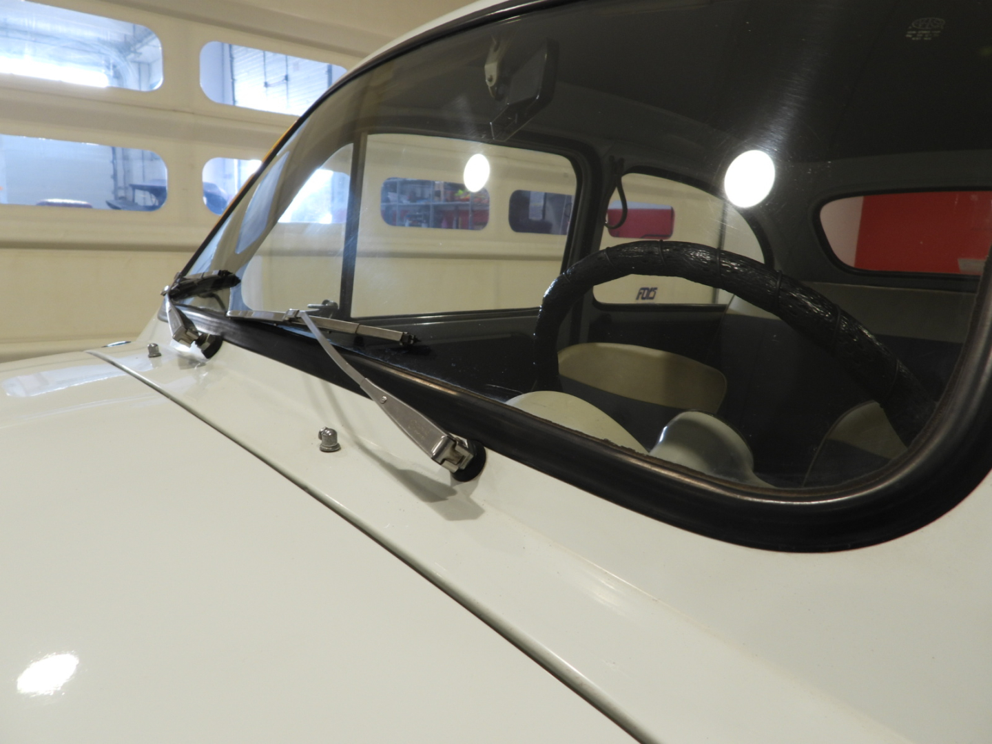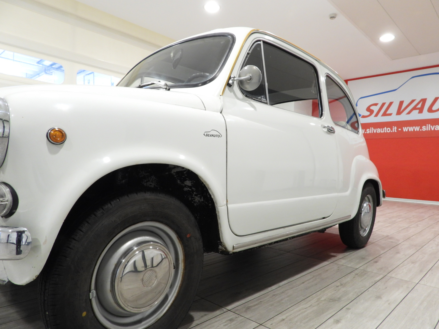 Sedili e pannelli in Vipla celeste e avorio, Specchio esterno lato guida cromato, Cerchi in ferro con calotta Fiat Cromata con pneumatici 145SR12, Staccabatteria