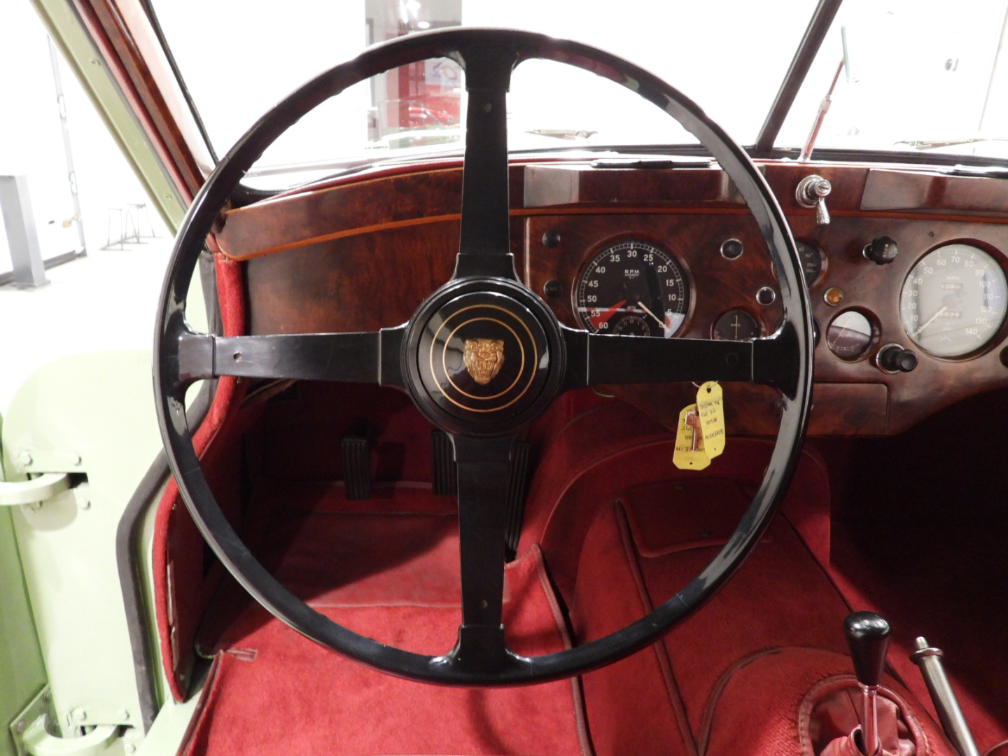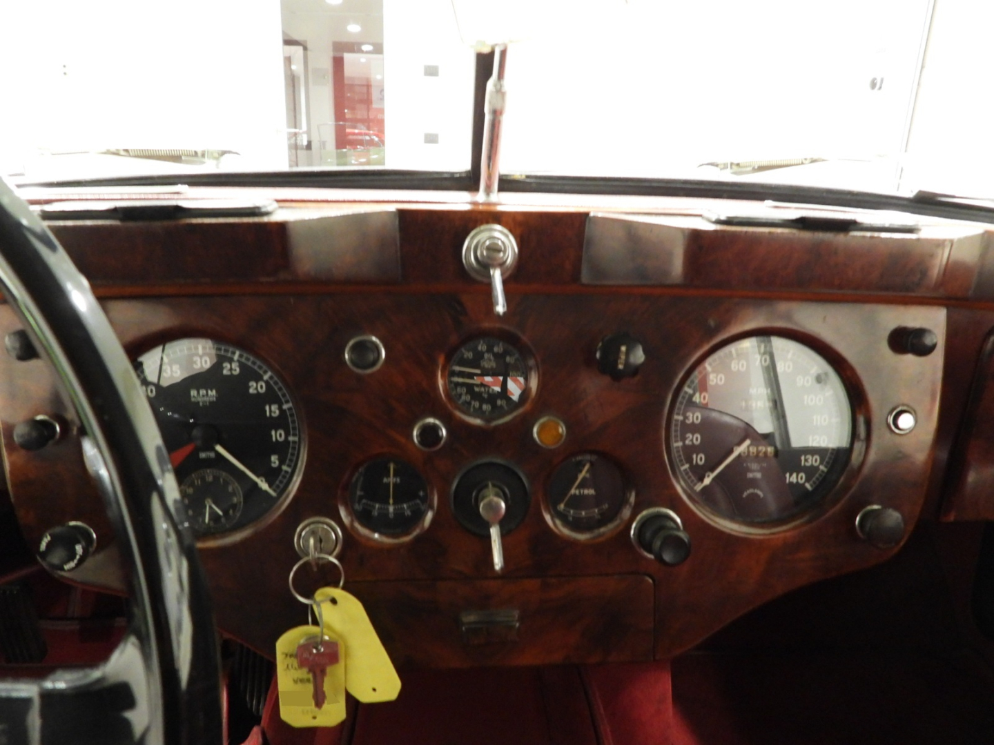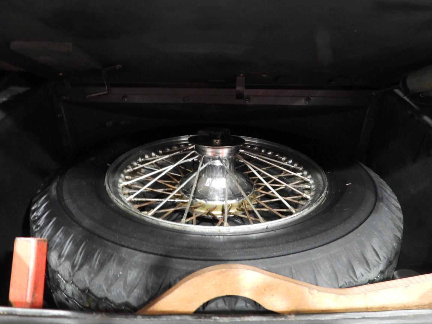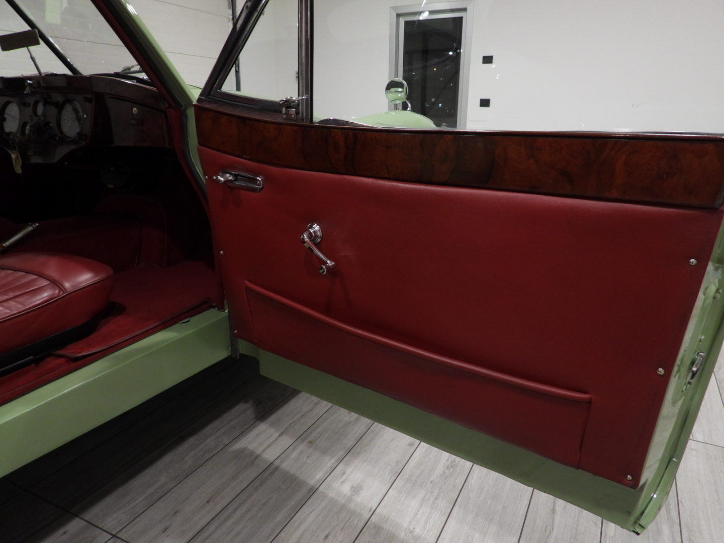 Sedili e pannelli in tutta pelle cartier, Moquette in lana rossa al pavimento, Cruscotto e pannelli in radica di noce, Parabrezza diviso, Specchio esterno lato guida tondo cromato e specchio supplementare al parafango anteriore sinistro, Cerchi a raggi cromati con gallettone cromato con pneumatici Dunlop 6.00 H16, Fari tondi supplementari LUCAS a luce bianca, Staccabatteria
