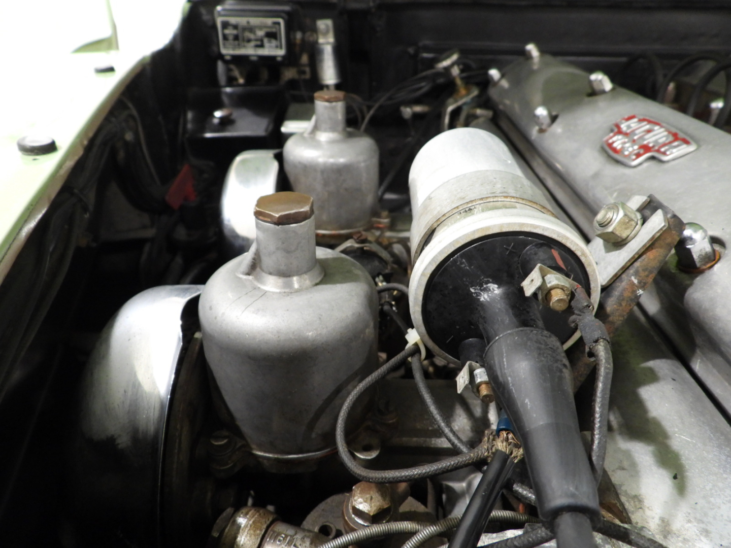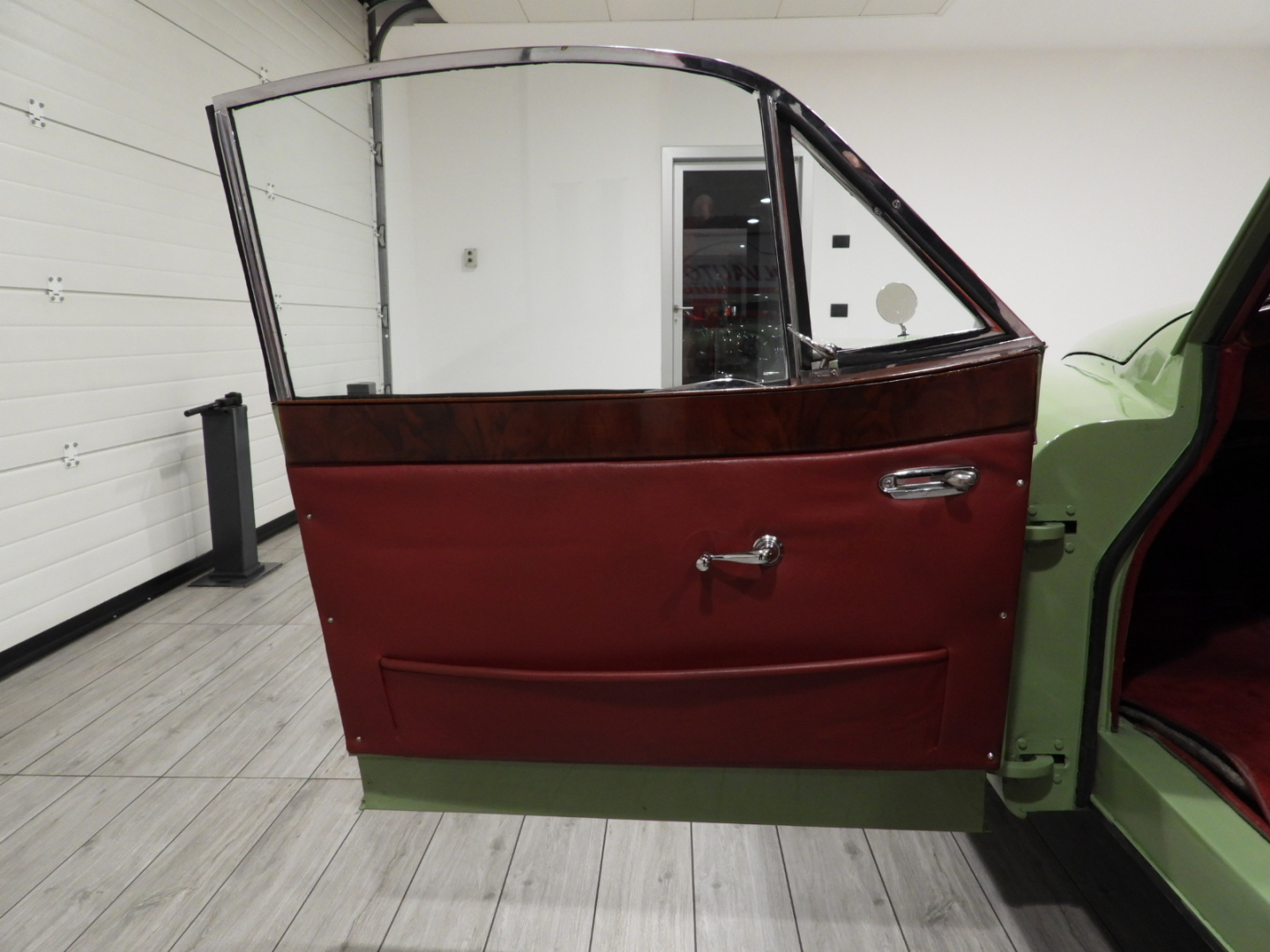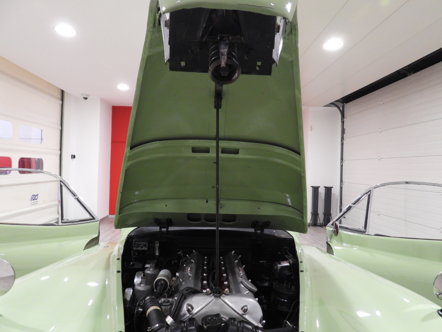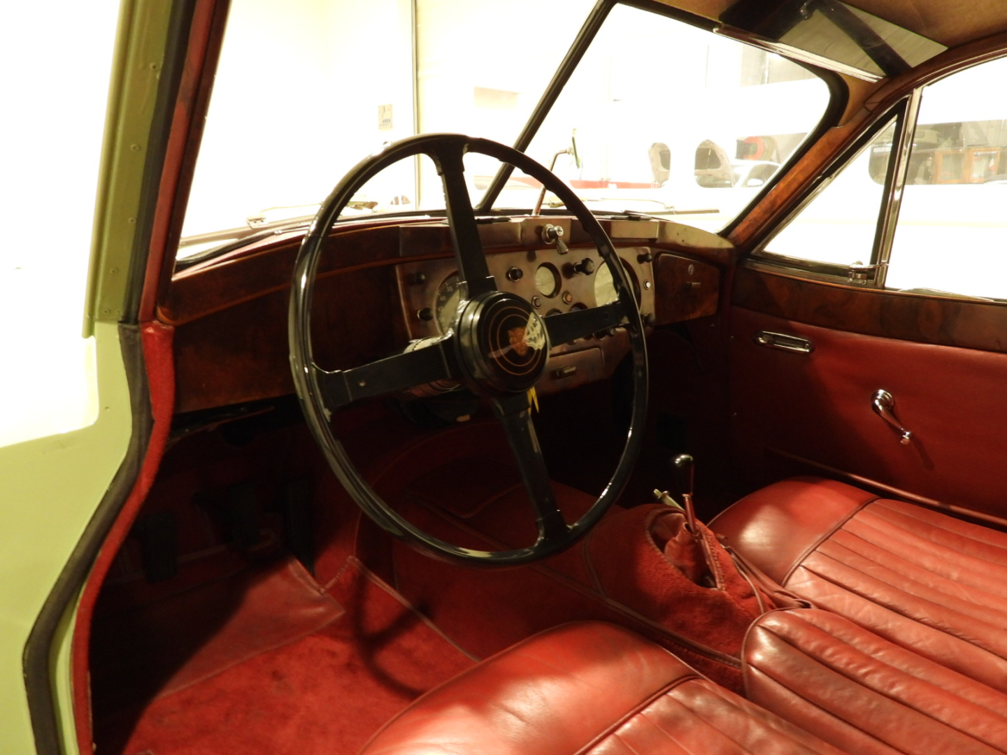 Sedili e pannelli in tutta pelle cartier, Moquette in lana rossa al pavimento, Cruscotto e pannelli in radica di noce, Parabrezza diviso, Specchio esterno lato guida tondo cromato e specchio supplementare al parafango anteriore sinistro, Cerchi a raggi cromati con gallettone cromato con pneumatici Dunlop 6.00 H16, Fari tondi supplementari LUCAS a luce bianca, Staccabatteria