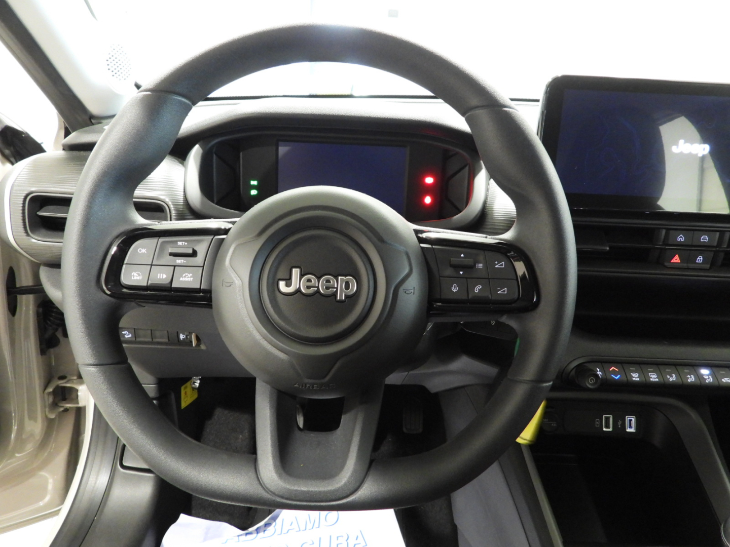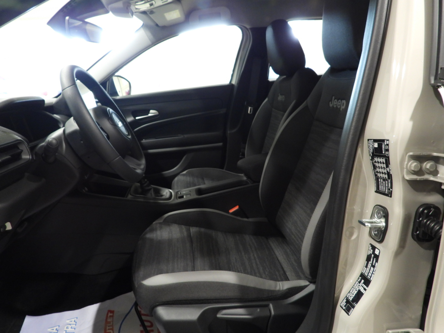 Apple car play/android auto, Sistema vivavoce bluetooth con comandi al volante, Uconnect touch display da 10.25”, Sistema di navigazione, Climatizzatore manuale, Sedili anteriori con regolazione manuale, Bracciolo del sedile anteriore con scomparto interno, Quadro strumenti digitale, Select terrain mode selector, Freno di stazionamento elettrico, Stop&start, Cruise control, Sensori di parcheggio posteriore, Specchietti esterni riscaldabili e regolabili elettricamente, con calotta esterna nero opaco, Lane departure warning plus, Frenata di emergenza con rilevamento pedoni e ciclisti, Cerchi in lega da 16″ Standard, Sedili in tessuto nero.