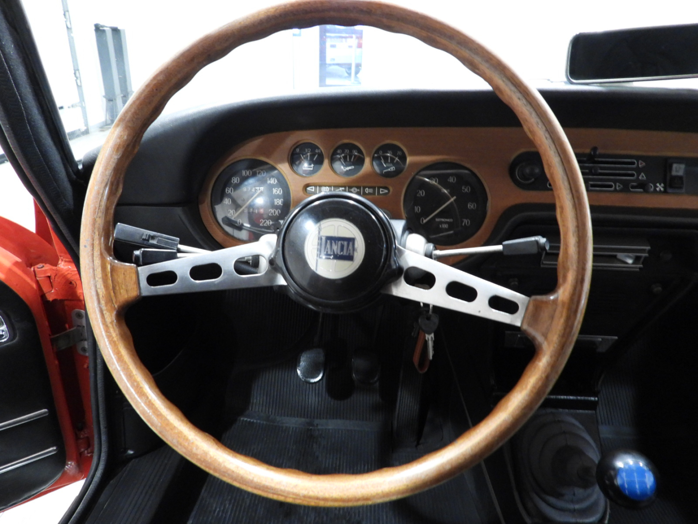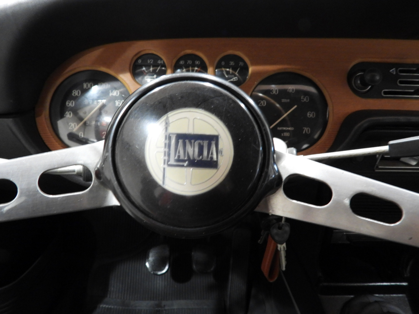 Sedili con poggiatesta e pannelli originali in TVE (tessuto vinilico elasticizzato) nera, Specchio esterno tondo cromato lato guida, Volante a due razze con corona in legno, Vetri elettrici, Cerchi in lega originali Lancia/Cromodora 14” X 5 1/2 con pneumatici 195/60 R14