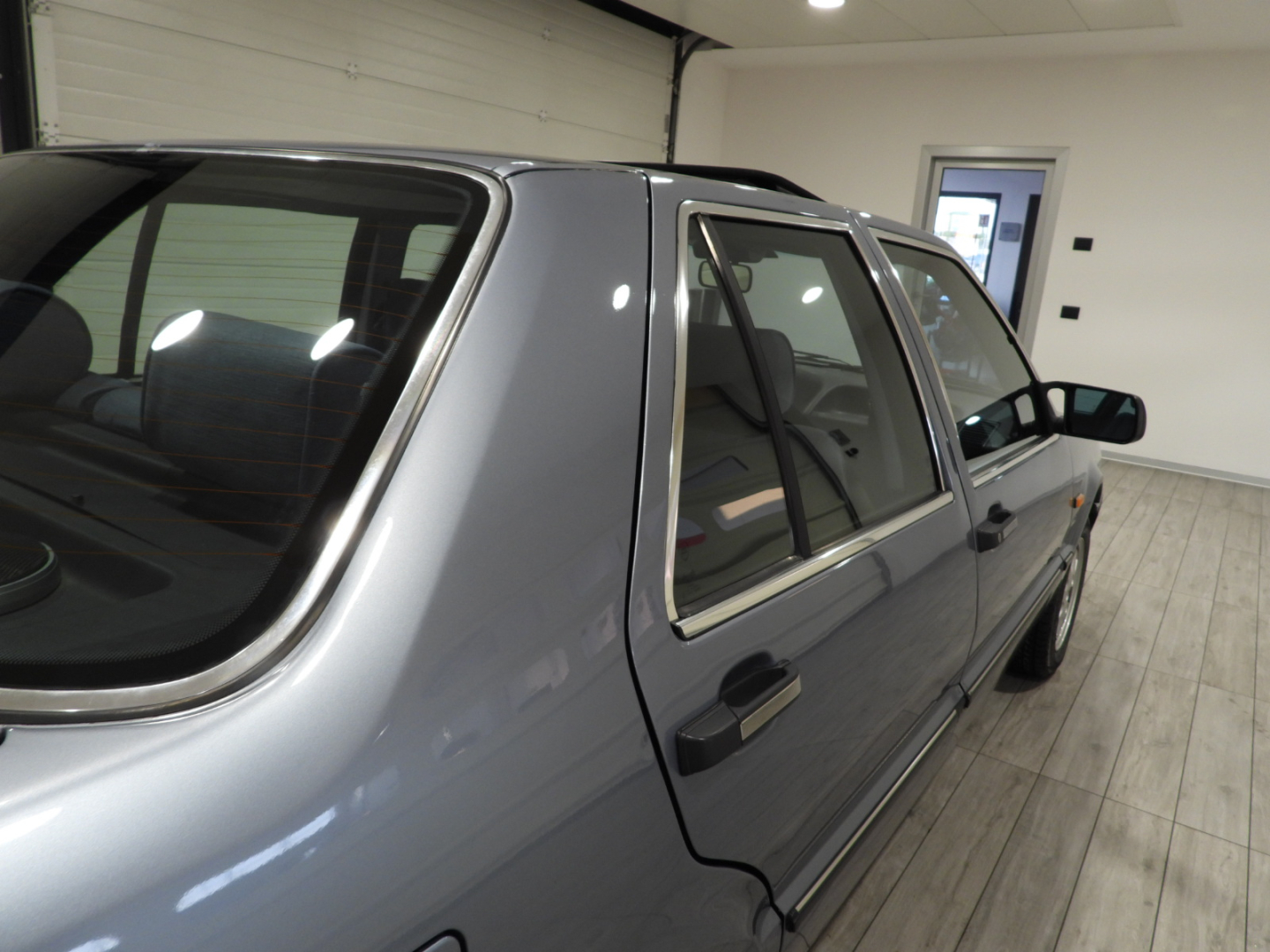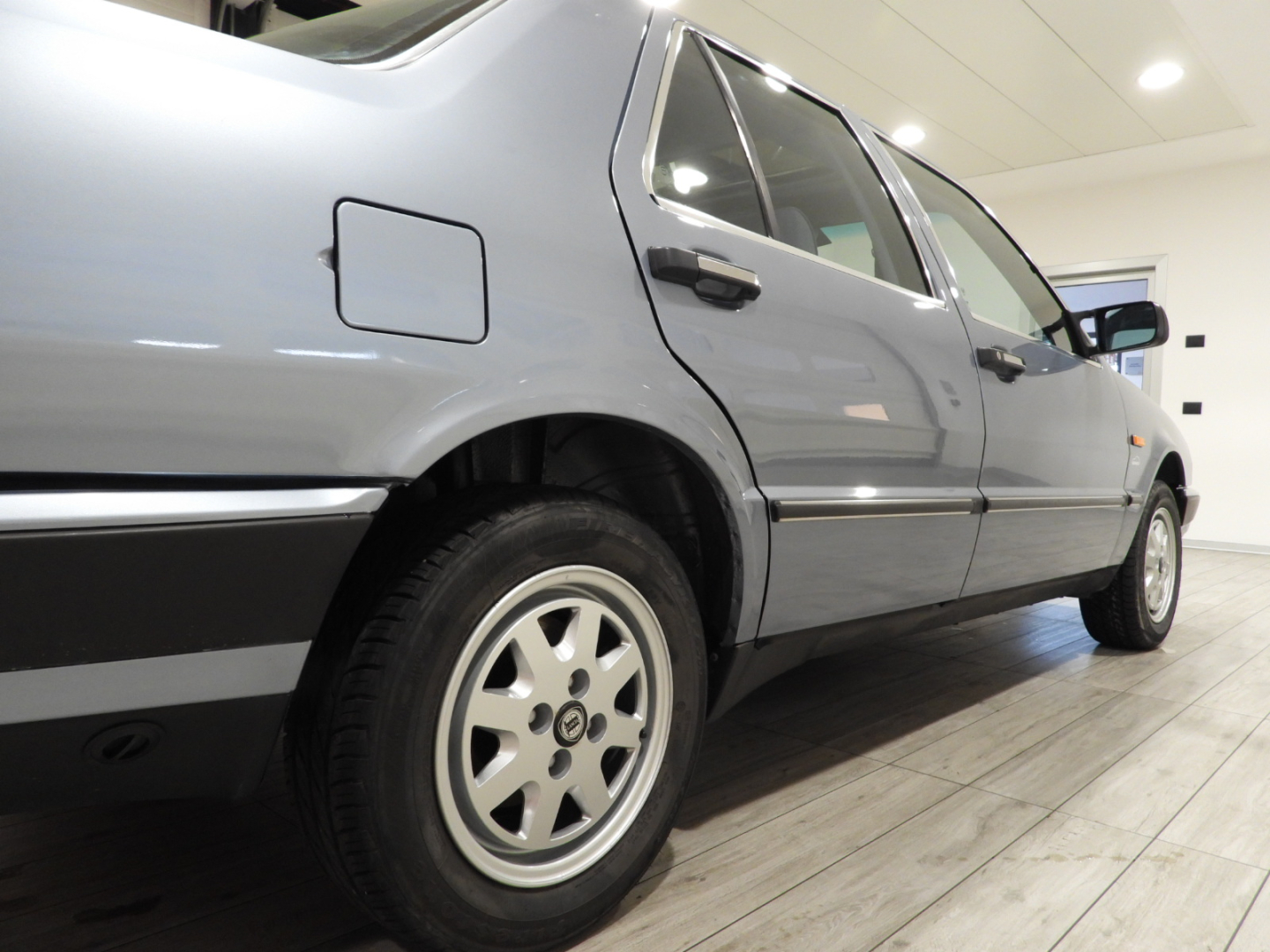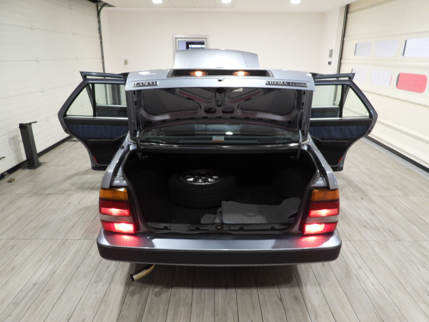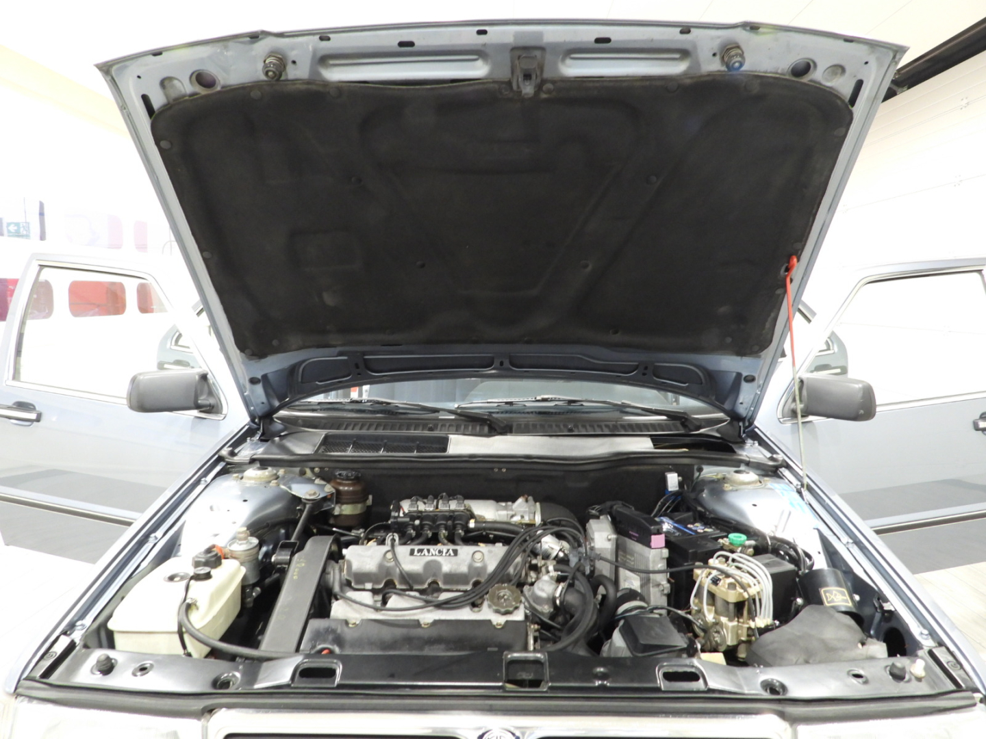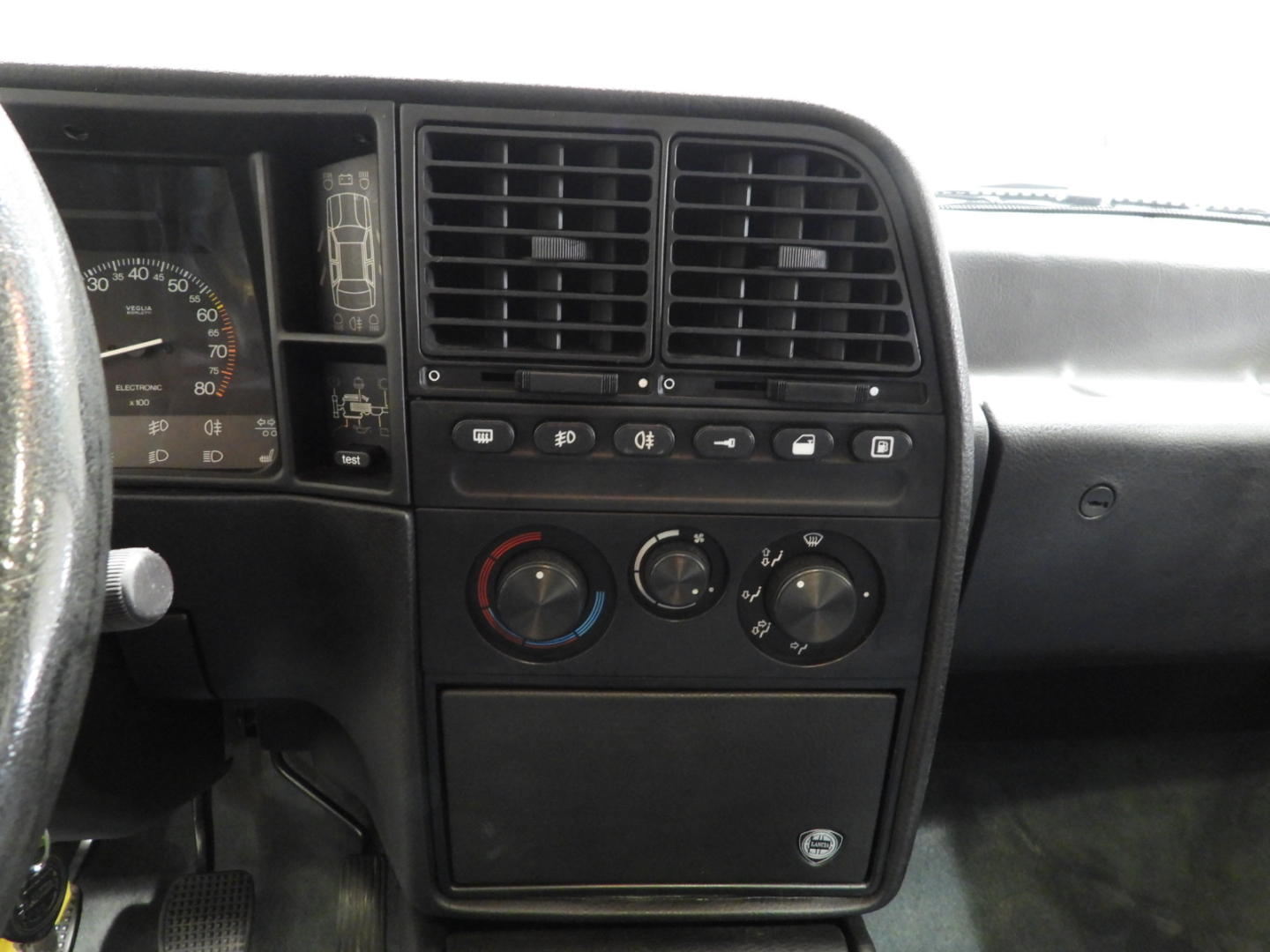 Sedili e pannelli in tessuto azzurro, 2 poggiatesta anteriori e 2 posteriori, Bracciolo posteriore, Moquette in lana bleu al pavimento, Autoradio Pioneer AM/FM a cassetta Stereo 7 con antenna al parafango posteriore sinistro, Vetri elettrici anteriori, Doppio specchio esterno a regolazione elettrica, Tetto apribile, 5 Cerchi in lega Lancia Speedline 6JX14 con pneumatici 195/60 R14, Tergilavafari, Fari fendinebbia rettangolari a luce bianca