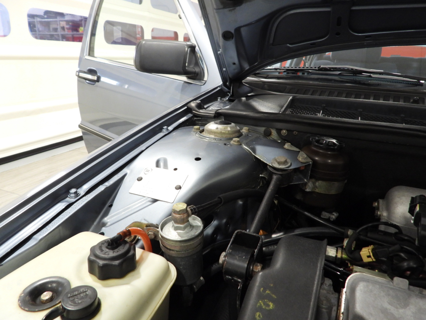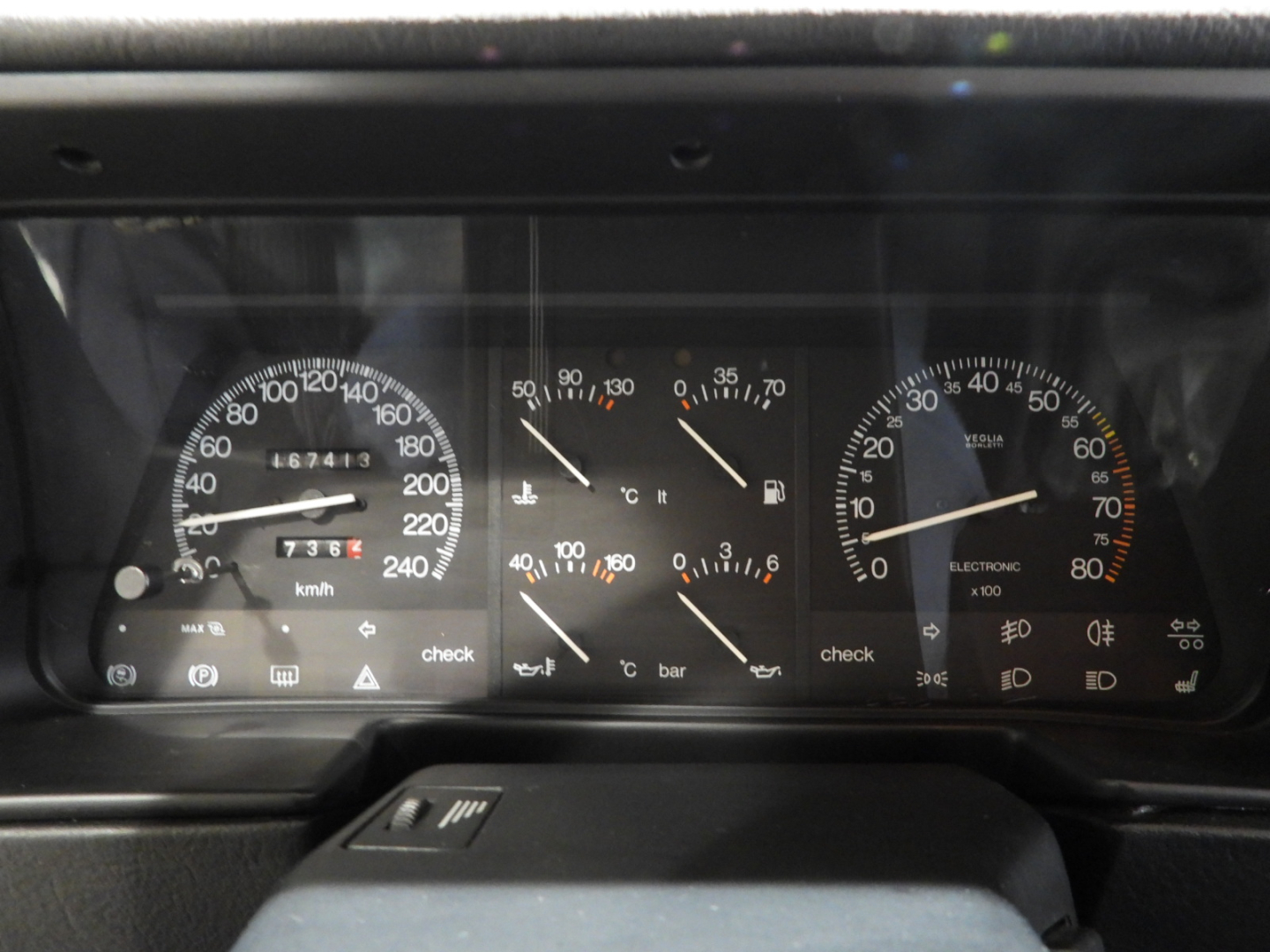 Sedili e pannelli in tessuto azzurro, 2 poggiatesta anteriori e 2 posteriori, Bracciolo posteriore, Moquette in lana bleu al pavimento, Autoradio Pioneer AM/FM a cassetta Stereo 7 con antenna al parafango posteriore sinistro…