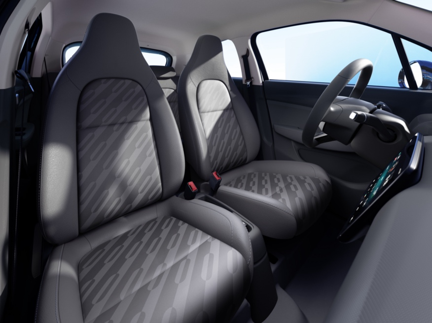Selettore stile di guida a 3 modalità, Cambio automatico a rapporto singolo, Controllo elettronico della stabilità (ESC), Sistema antibloccaggio (ABS), Ripartitore elettronico della frenata (EBD), Assistenza alla partenza in salita, Frenata automatica d’emergenza (AEB), Cruise control adattivo (ACC) con assistente di velocità intelligente (ISA), Sistema di mantenimento e avviso cambio corsia (LKA + LDW), Riconoscimento stanchezza e distrazione conducente (ADDW + DDAW), Rilevamento angolo cieco (BSD), Avviso collisione frontale (FCW), Avviso apertura porte (DOW), Airbag frontali, laterali e a tendina, Specchietti retrovisori elettrici, Specchietto retrovisore interno antiabbagliante manuale, Freno di stazionamento elettrico, Sensore pressione pneumatici, Cerchi in lega da 15″, Tetto nero a contrasto, Tetto panoramico con parasole elettrico, Retrocamera con rilevamento ostacoli, Climatizzatore automatico, Display multifunzione da 8″, Touchscreen centrale da 10.1″ con navigatore connesso, Radio FM+DAB, Bluetooth, 2 prese USB, Comandi vocali in italiano, Connettività Wi-Fi, App control e musica online, Volante in similpelle regolabile in altezza, Alzacristalli elettrici anteriori e posteriori one touch, Sedile guida regolabile in 6 direzioni, Sedile passeggero regolabile in 4 direzioni, Caricabatterie di bordo da 6,6 kW, Cavo di ricarica Tipo 2, Sblocco automatico serrature in caso di impatto.