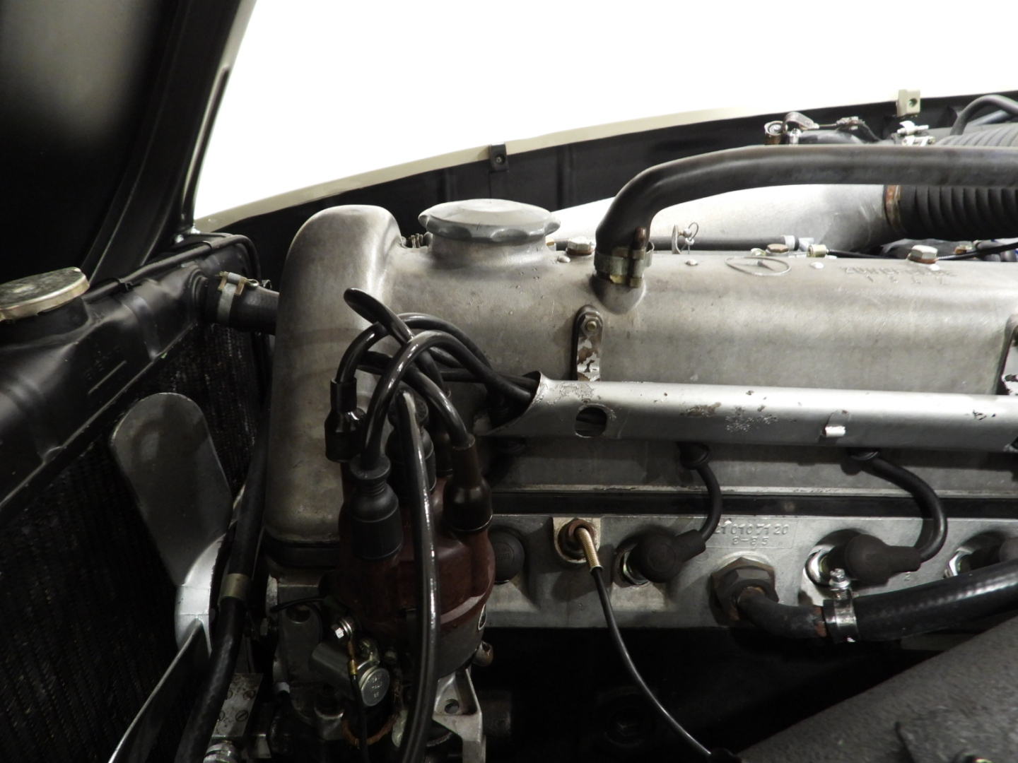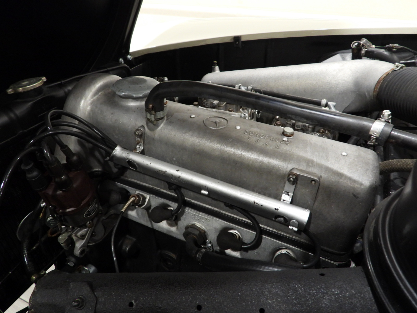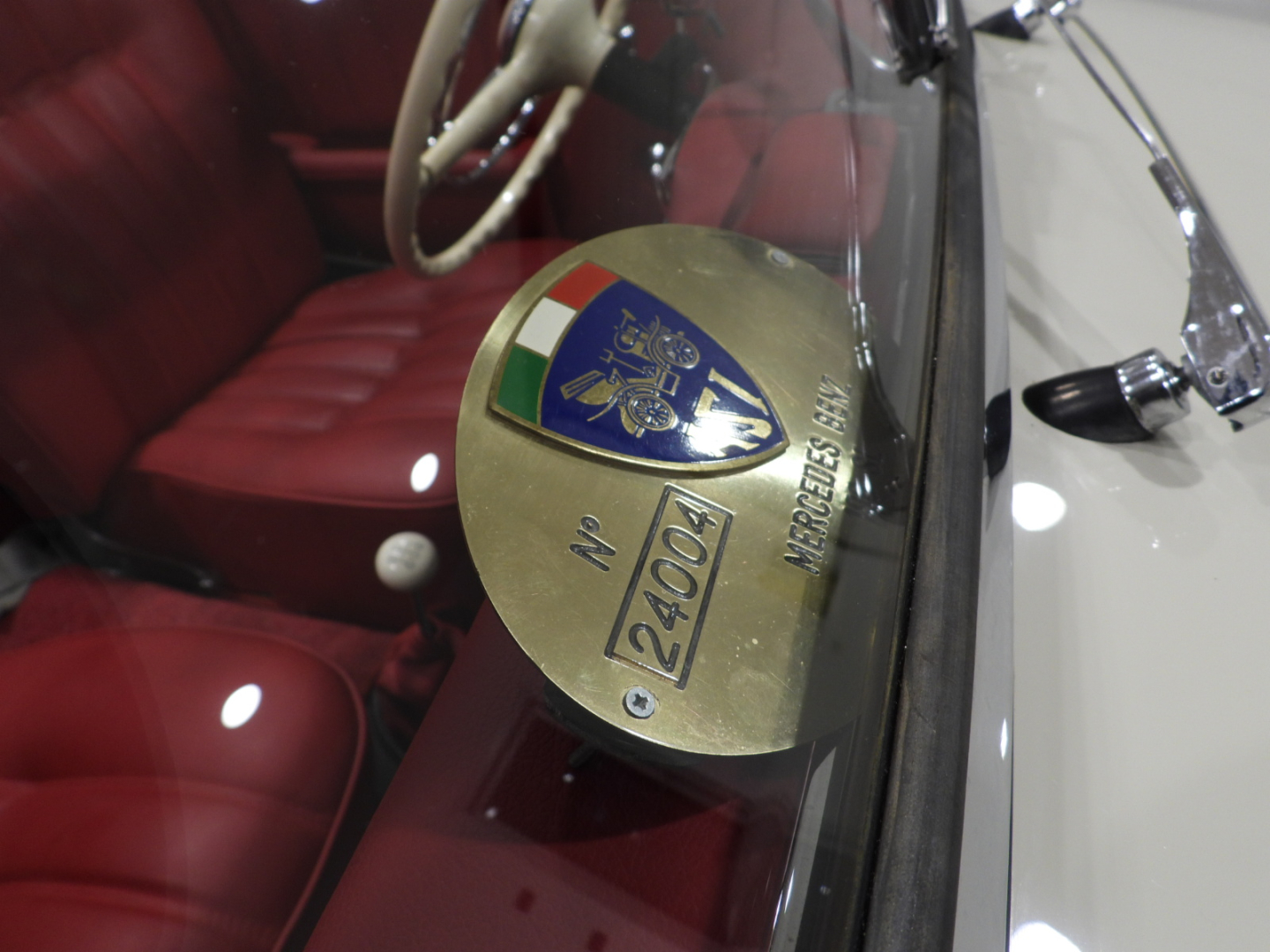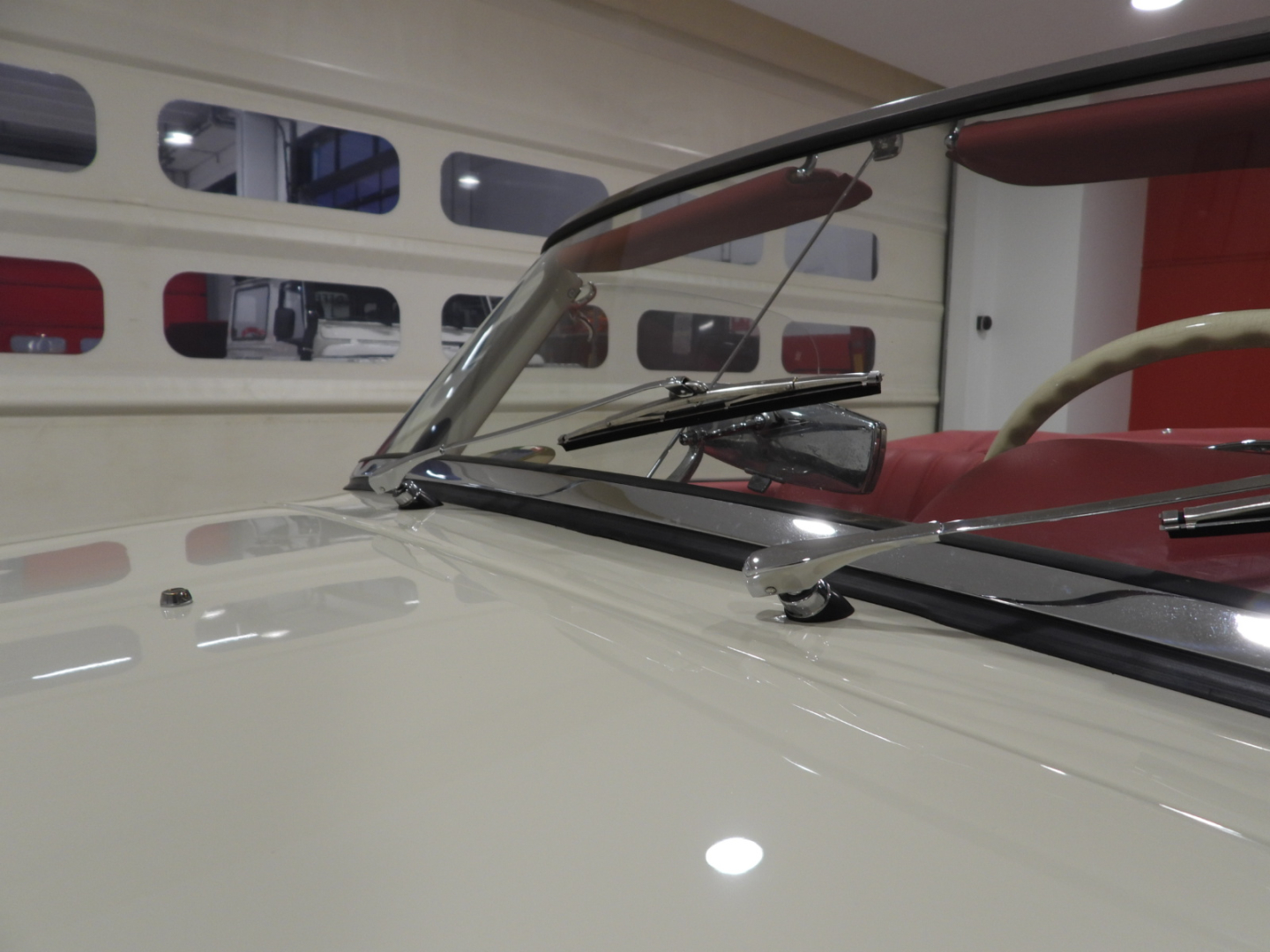 Sedili e pannelli in tutta pelle cartier, Moquette in lana rossa al pavimento, Specchio esterno lato guida cromato, Autoradio Blaupunkt con antenna manuale al parafango anteriore sinistro, Cerchi in ferro con calotte in tinta carrozzeria con anello cromato…