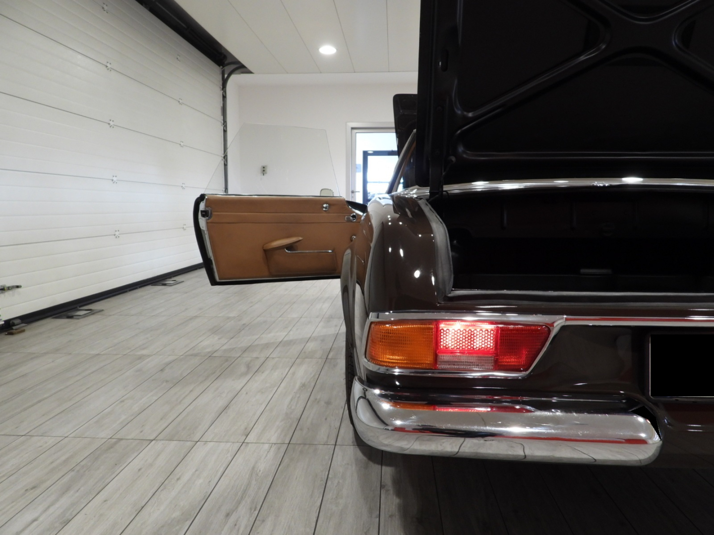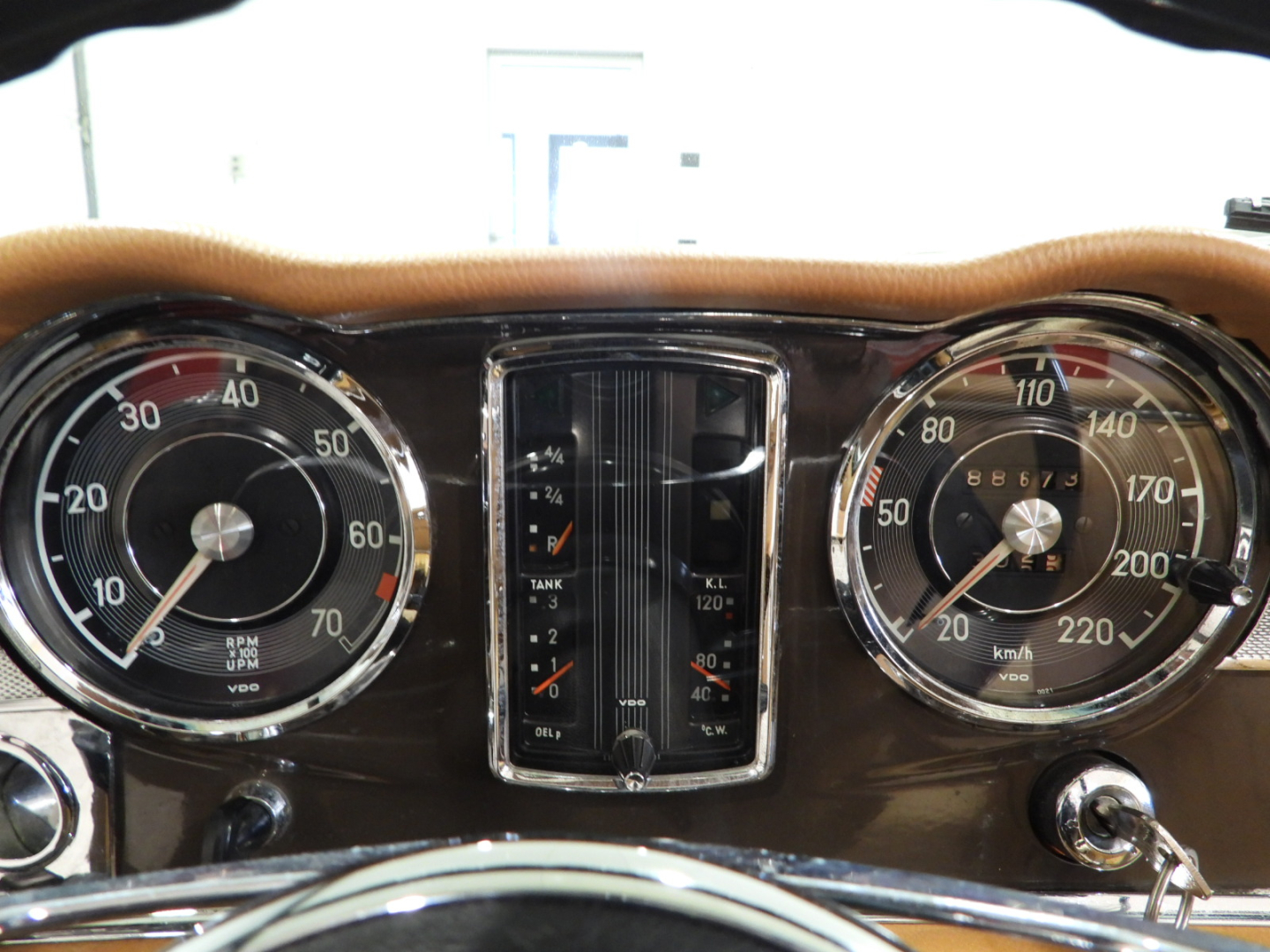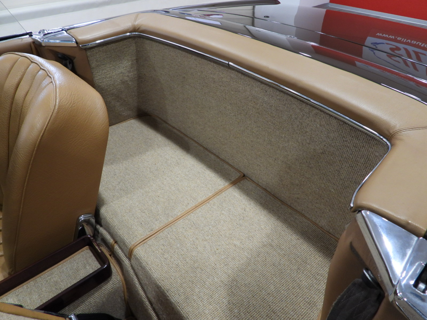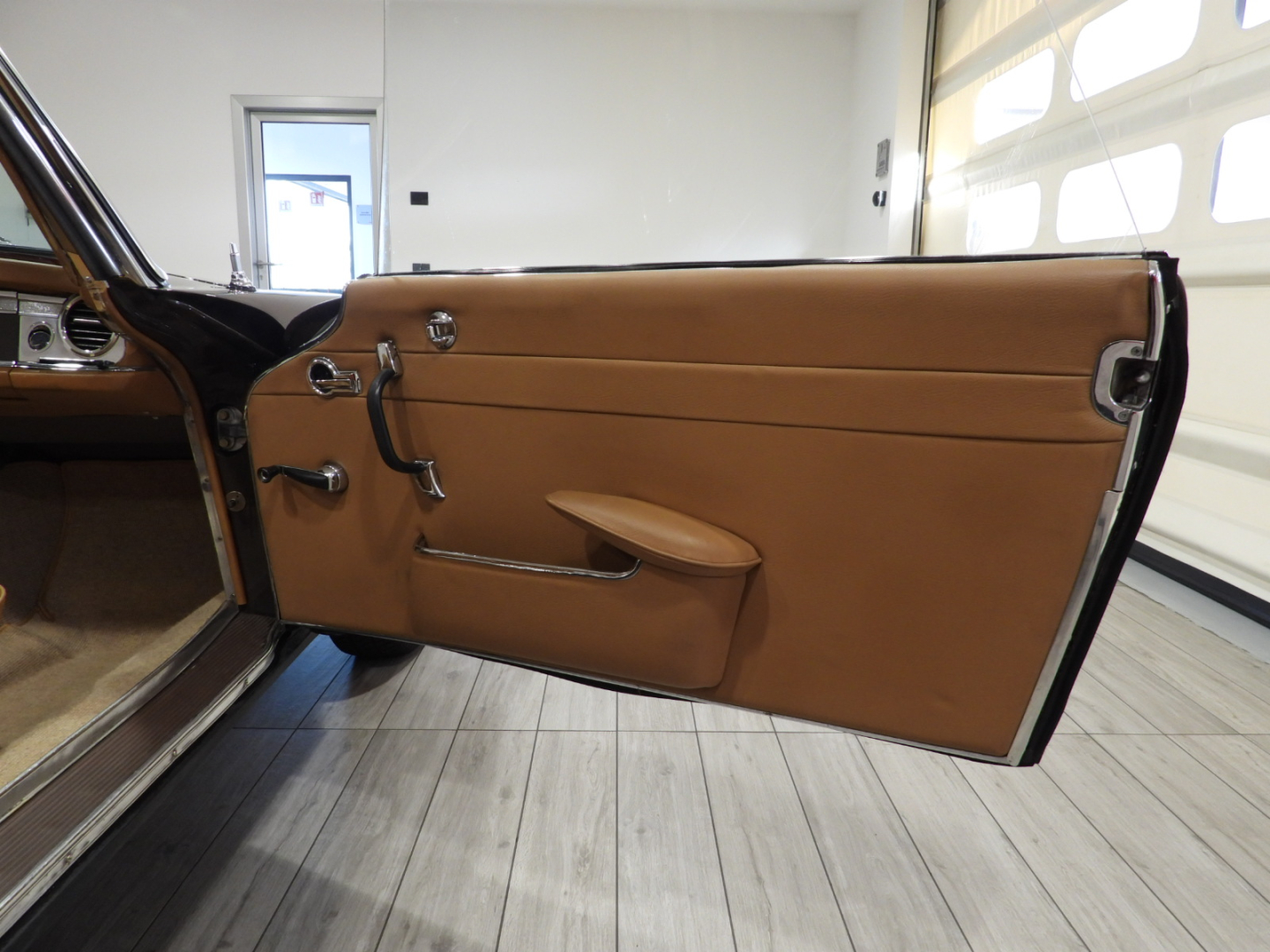 Sedili e pannelli in MB Tex color Cognac cod. 2402, Moquette al pavimento in bouclet havana, Autoradio Blaupunkt dell’epoca con antenna elettrica al parafango anteriore destro, Specchio esterno lato guida cromato, Cerchi in ferro cromati con calotta Mercedes-Benz verniciati in tinta carrozzeria con pneumatici Michelin 185HR14 con bordo in rilievo salva marciapiede, Soft top in tela marrone 737, Hard top in tinta carrozzeria, Staccabatteria