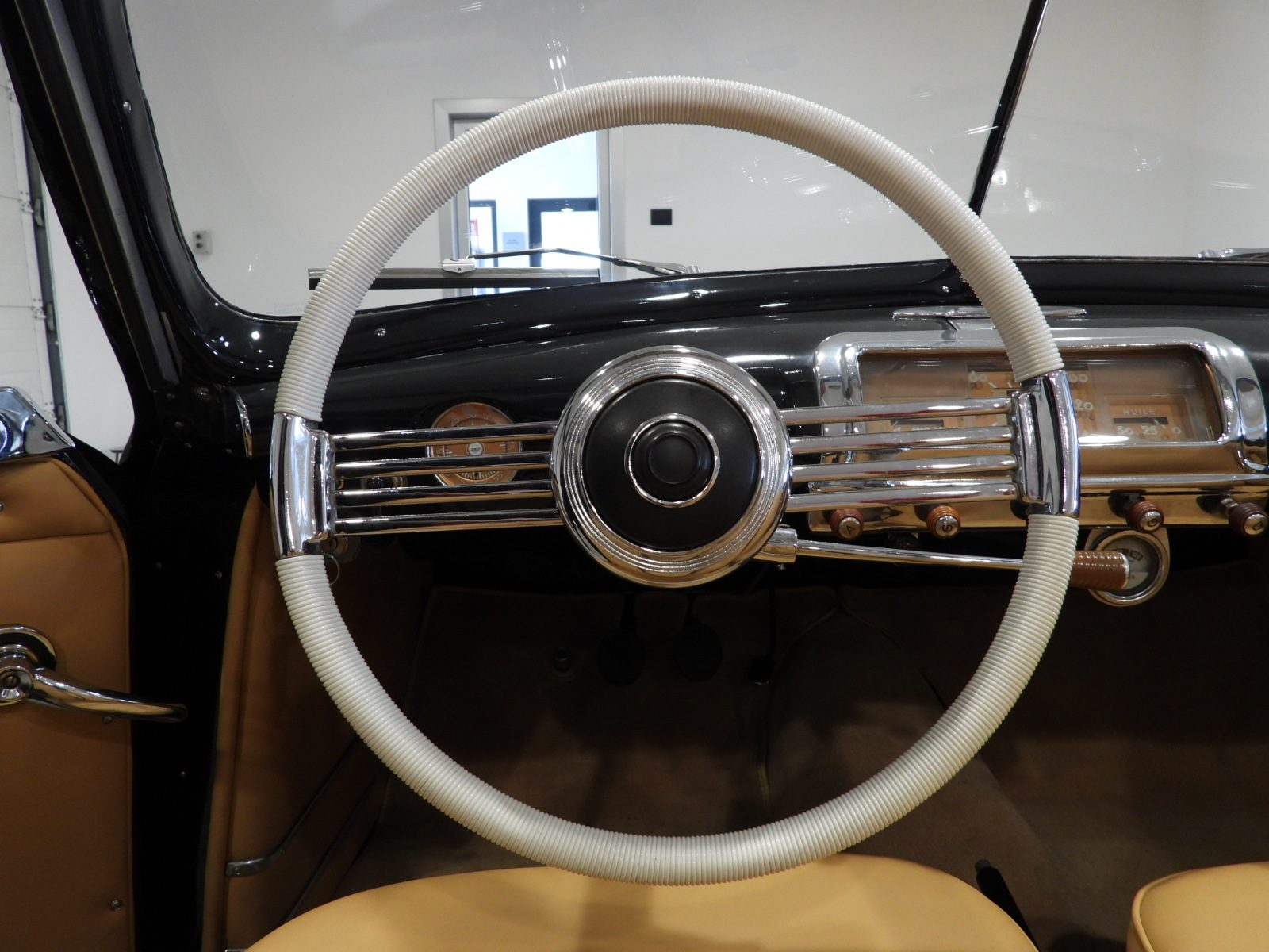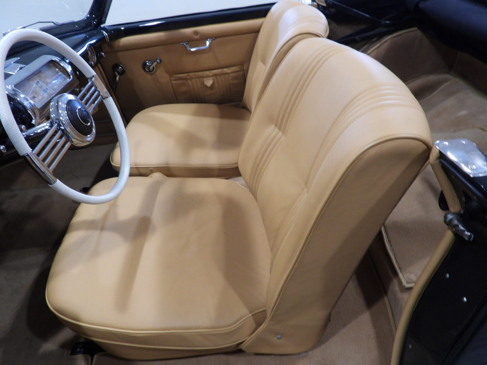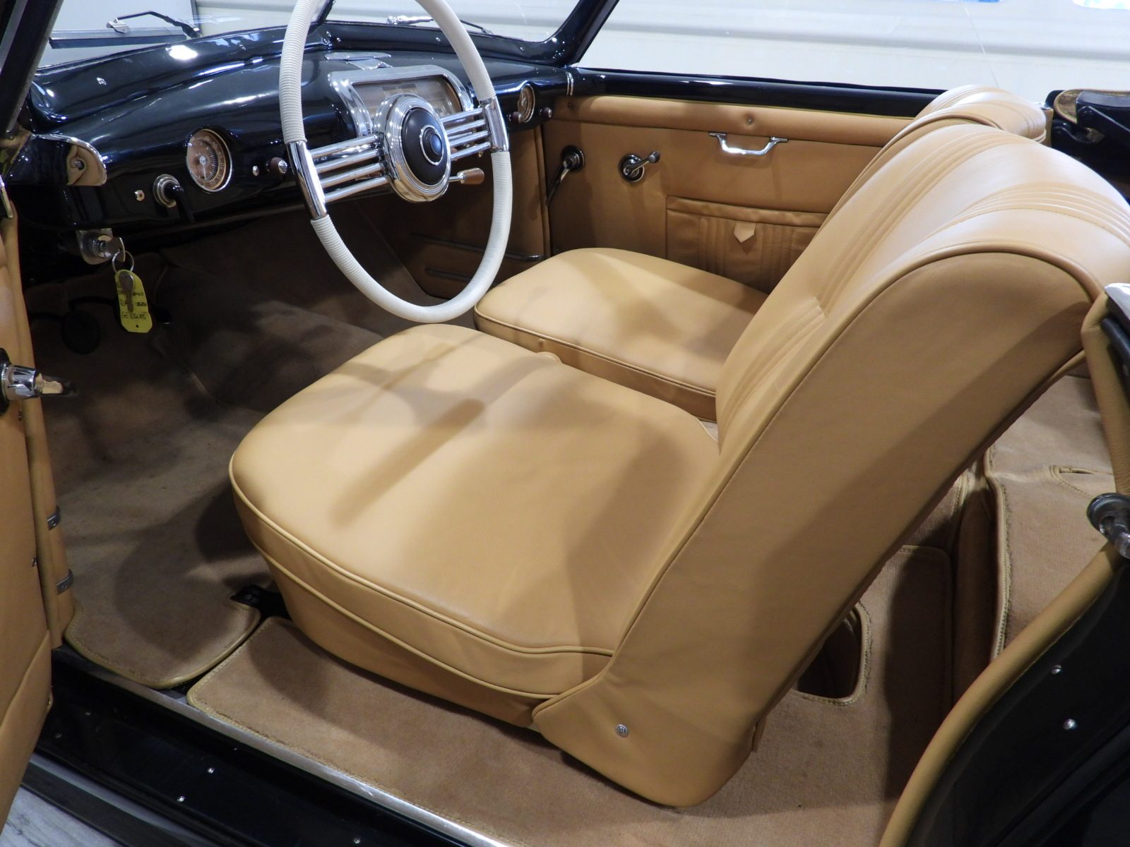 Sedili e pannelli in pelle connoly beige, Moquette in lana beige, Volante a due razze originale dell’epoca, Strumentazione rettangolare in posizione centrale in alluminio…