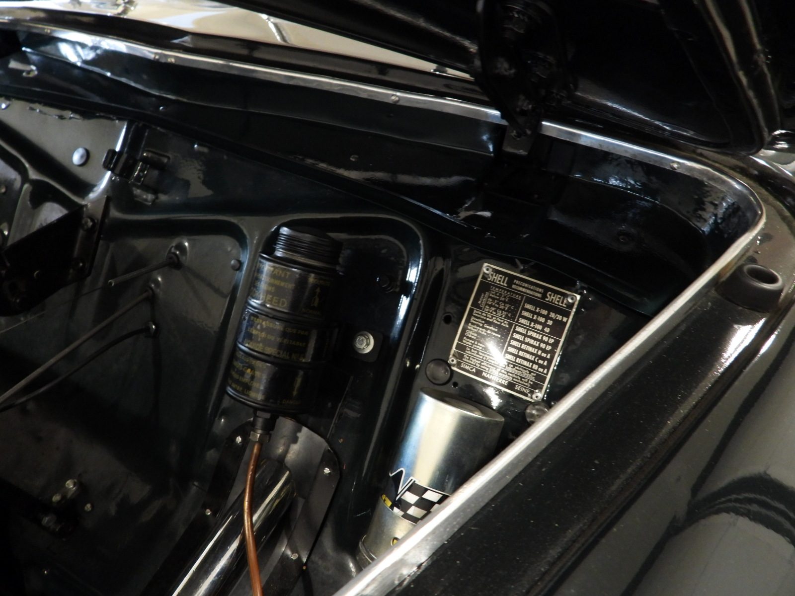 - VETTURA DOTATA DEL SUO MOTORE ORIGINALE A 4 MARCE CON CAMBIO AL VOLANTE, CHE VENNE A SUO TEMPO PRELEVATO DALLA LINEA DI MONTAGGIO DELLA SIMCA 8 BERLINA DAL REPARTO CORSE SIMCA, DIRETTO DAL ”MAGO” GORDINI, ELABORANDOLO E RENDENDOLO CAPACE DI PORTARE GLI ORIGINARI 35 CV A 51CV, RAGGIUNGENDO COSI’ UNA VELOCITA’ DI 135 KM/H