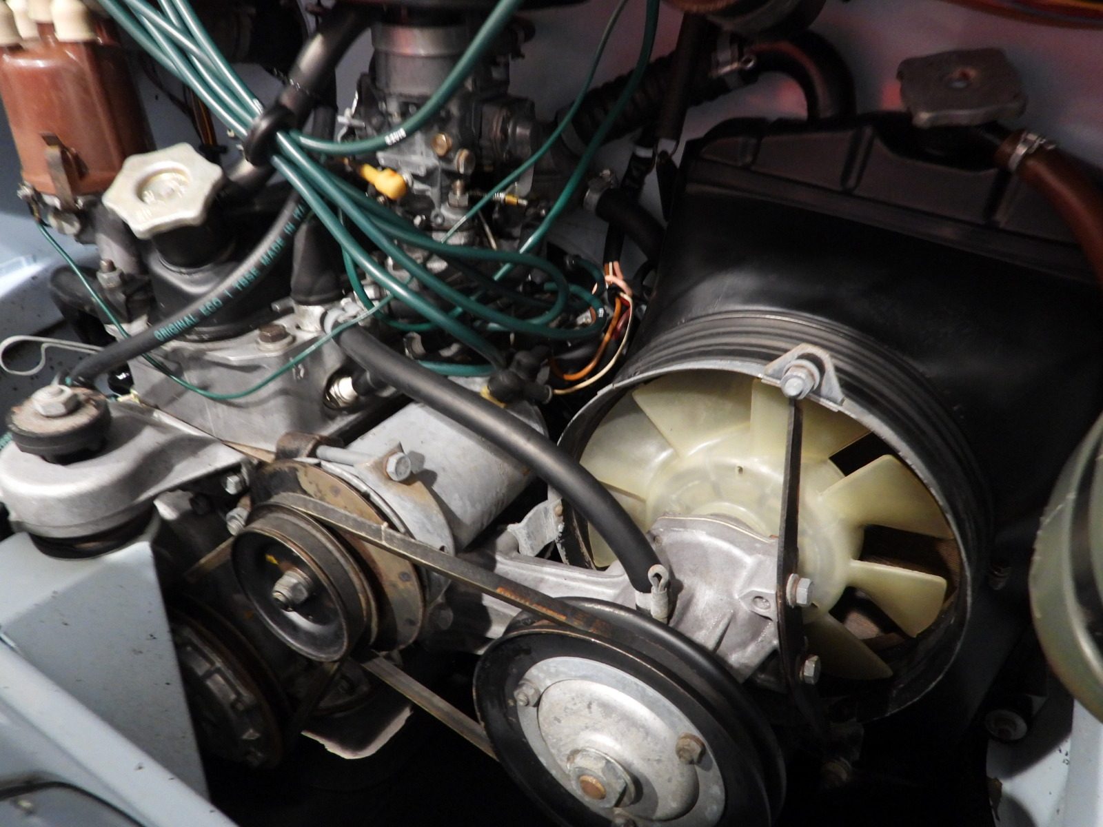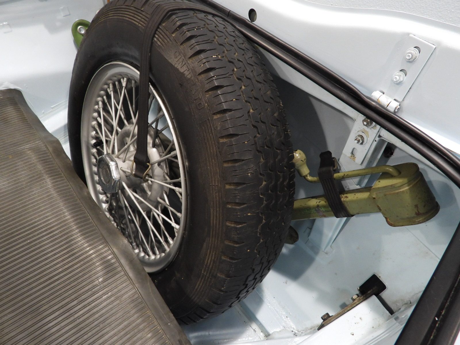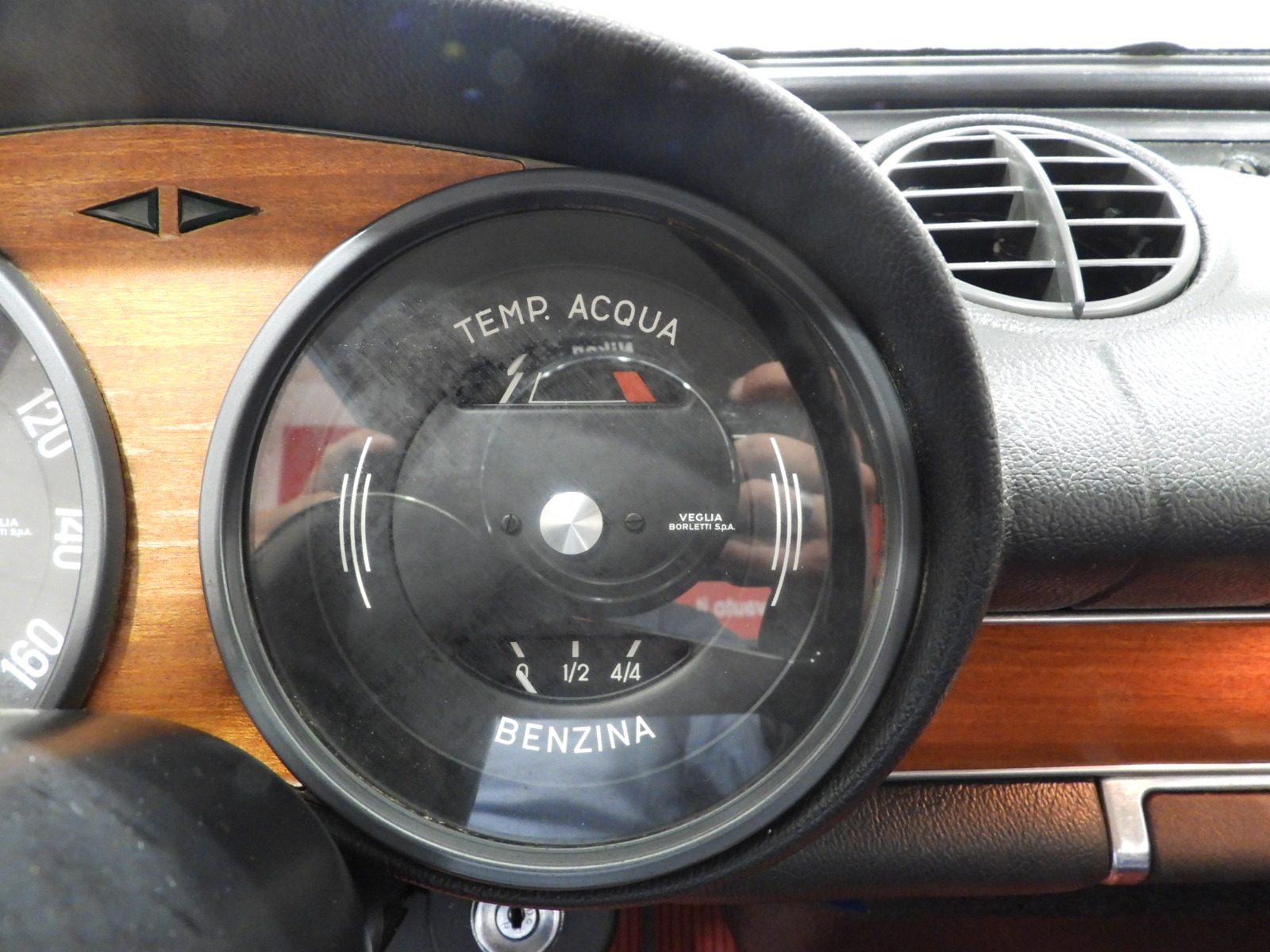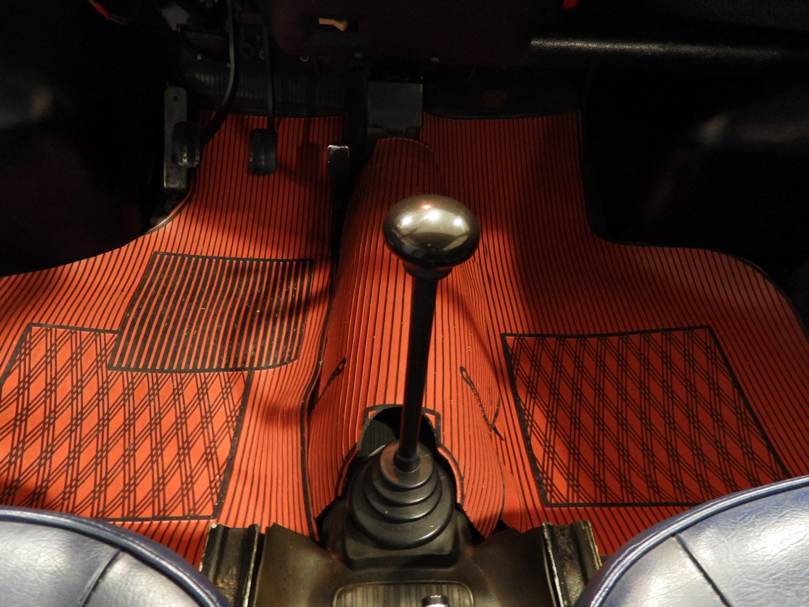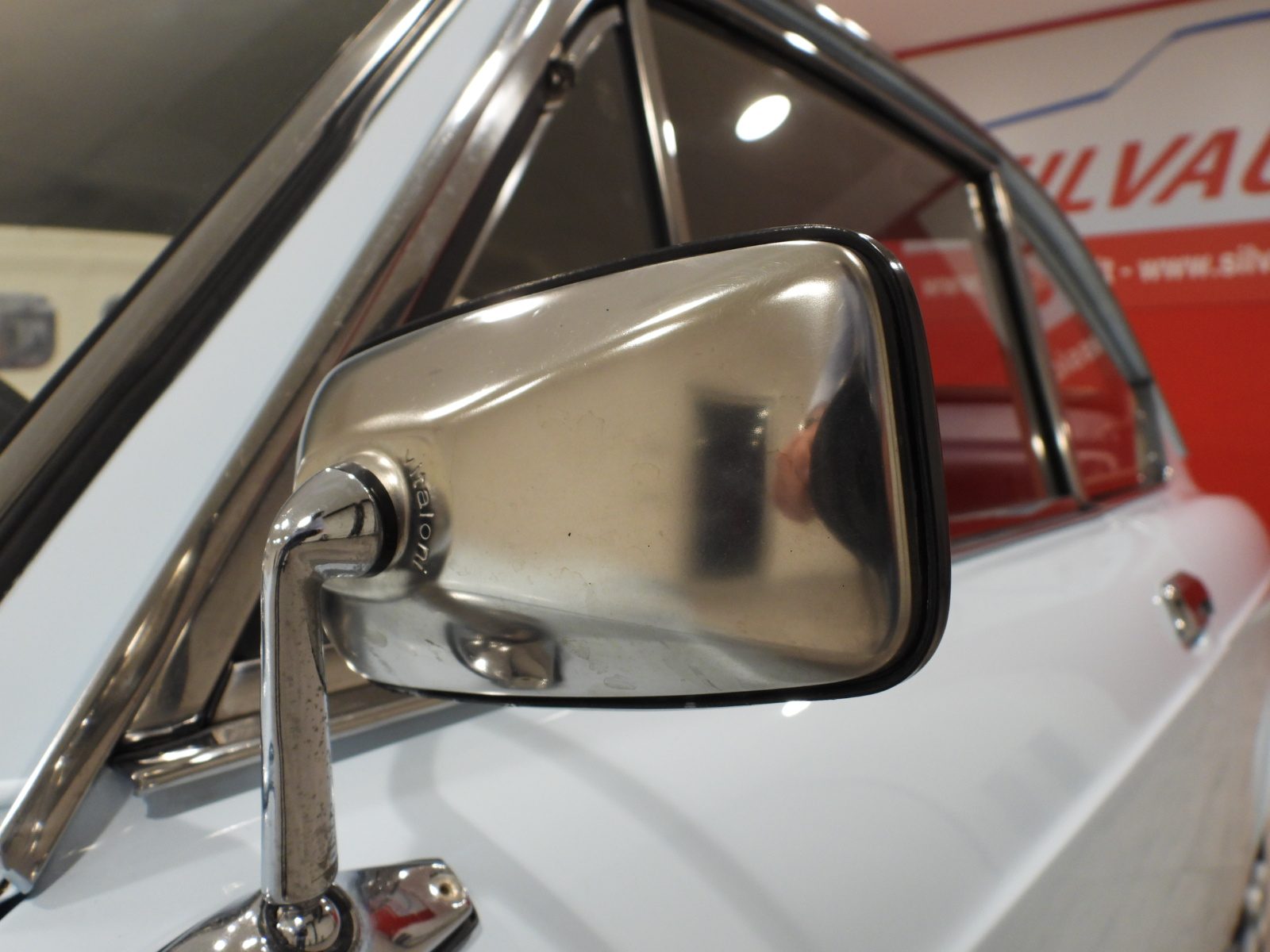 Sitze und Verkleidungen in blauem Himmel, Zwei-Speichen-Lenkrad, Holz-Armaturenbrett, Original Gummimatten der Epoche, Außenspiegel Vitaloni Fahrerseite verchromt, 5 Speichenfelgen mit Gummireifen lackiert Pirelli Gürtel P3 155 SR13