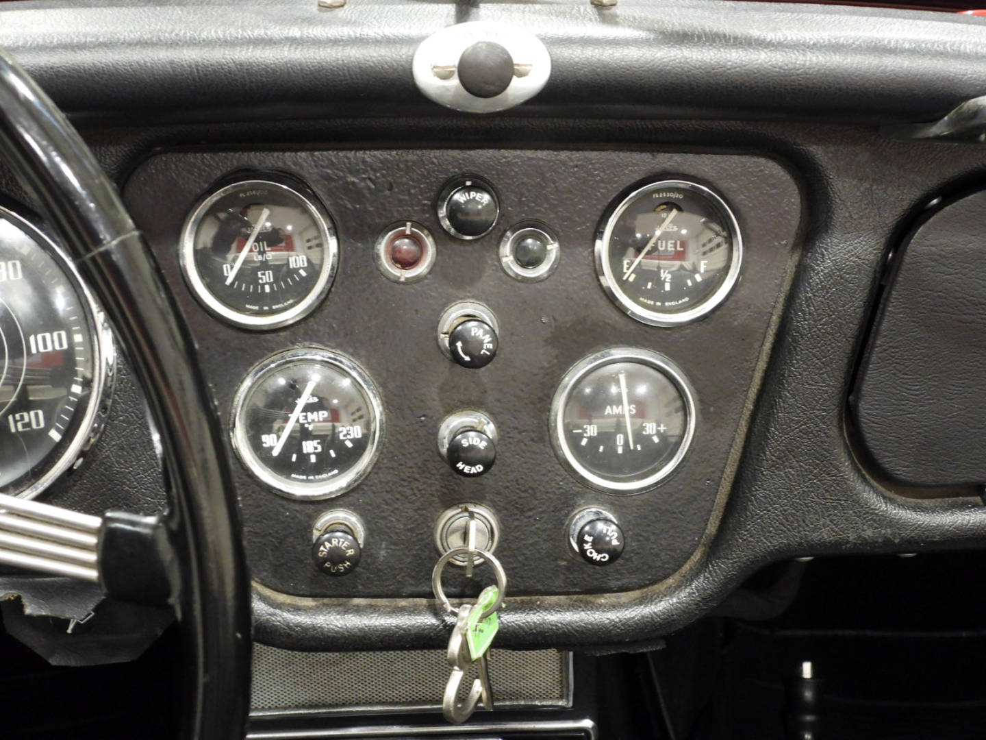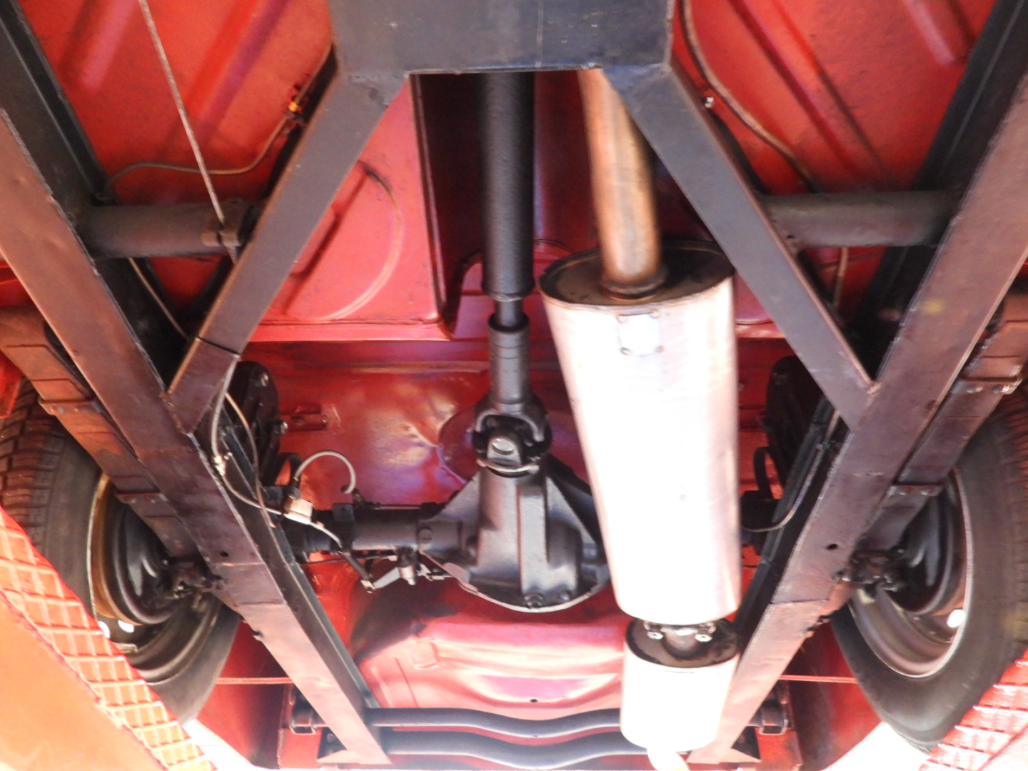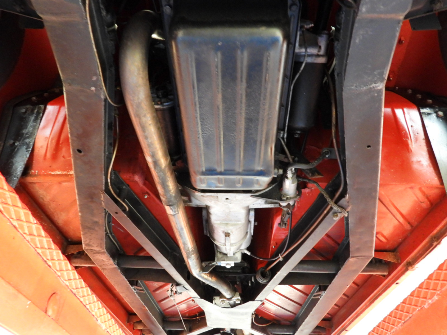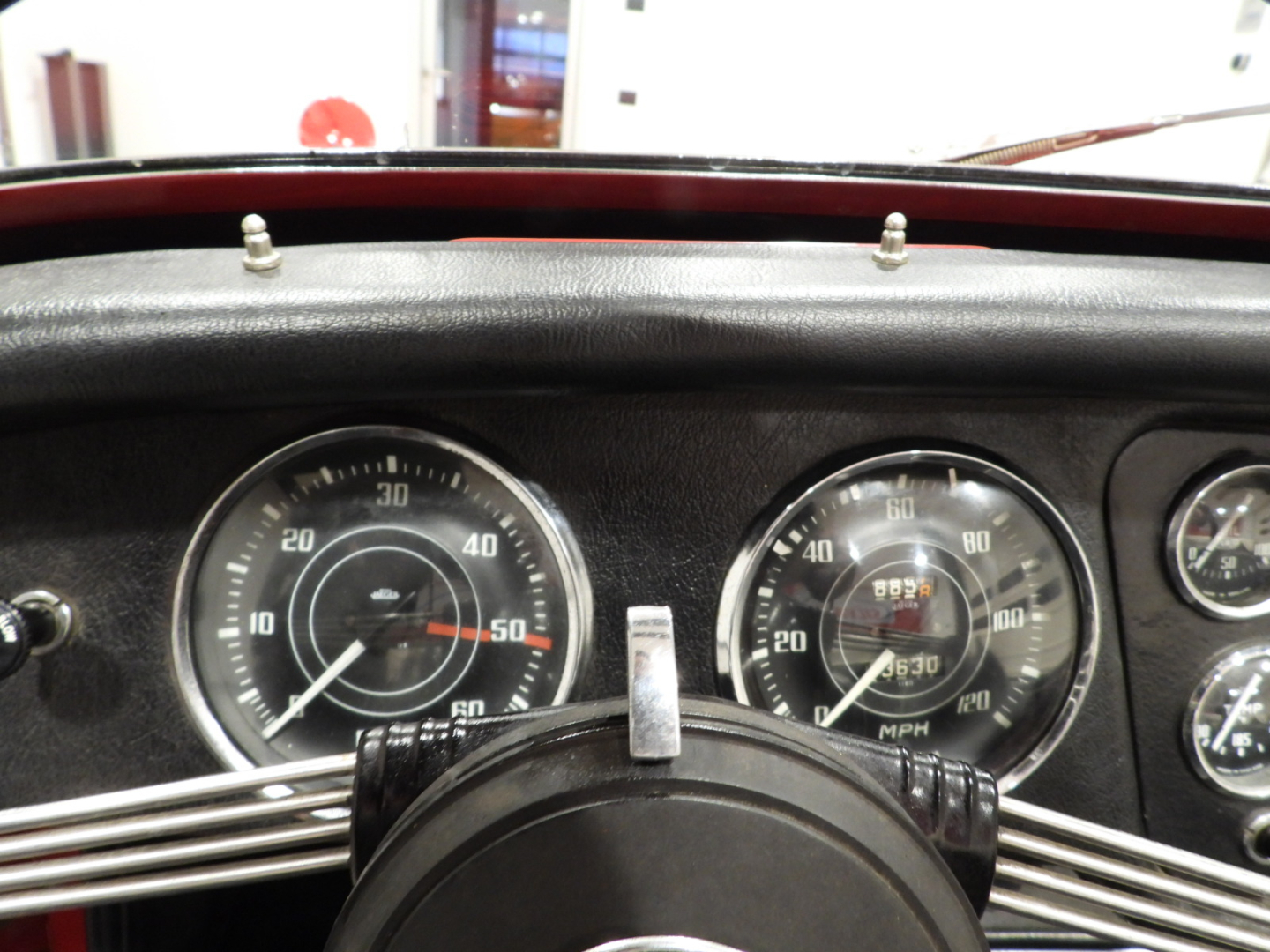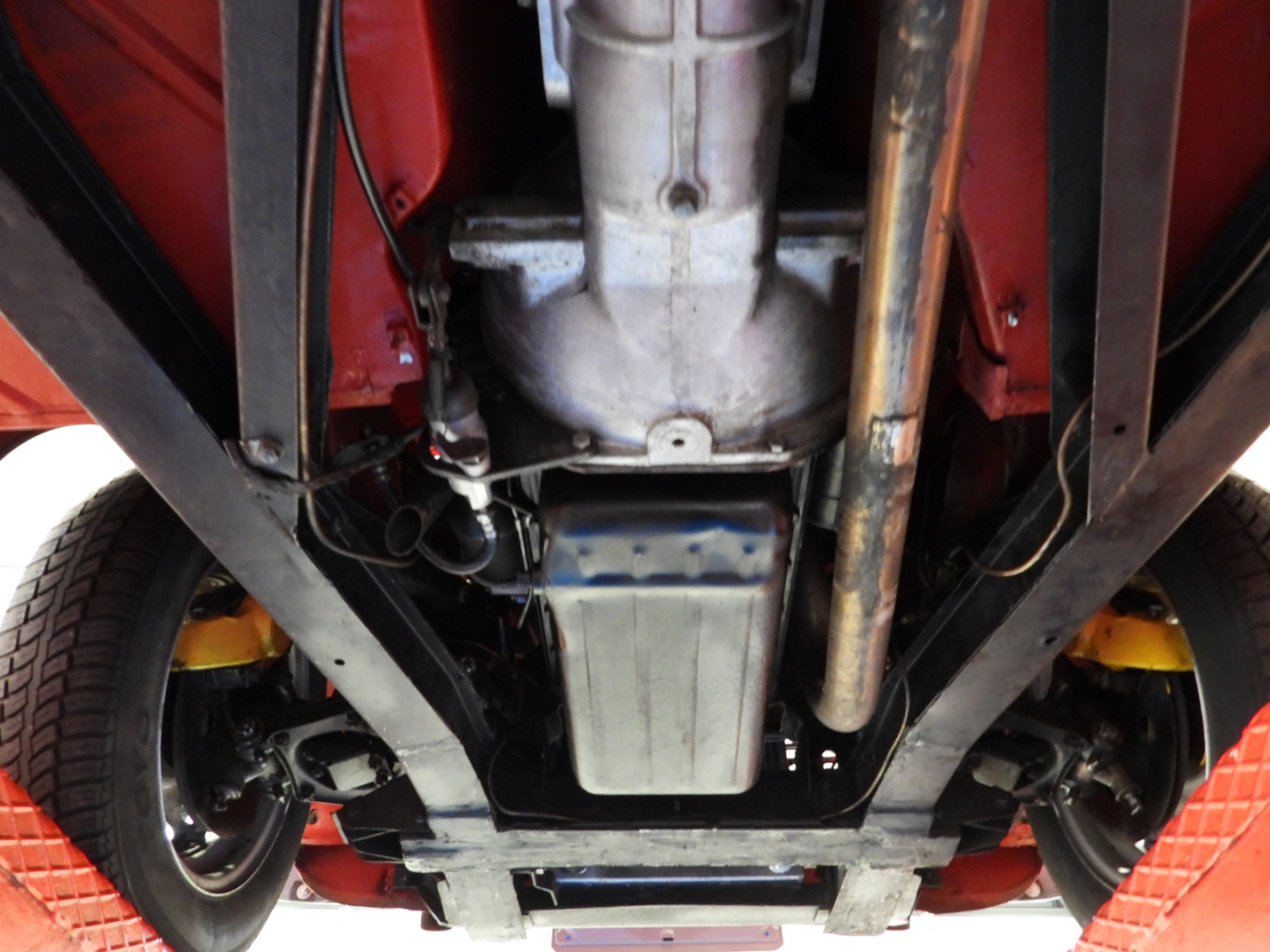 Sitze und Verkleidungen in schwarzem Himmel mit elfenbeinfarbener Paspelierung, originales Dreispeichenlenkrad, Holzschaltknauf, originales AM-Radio der damaligen Zeit, doppelte verchromte Außenspiegel an den vorderen Kotflügeln …