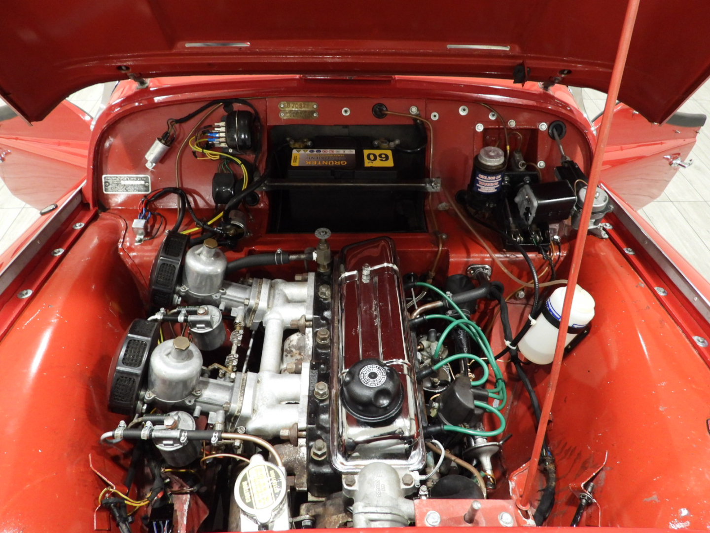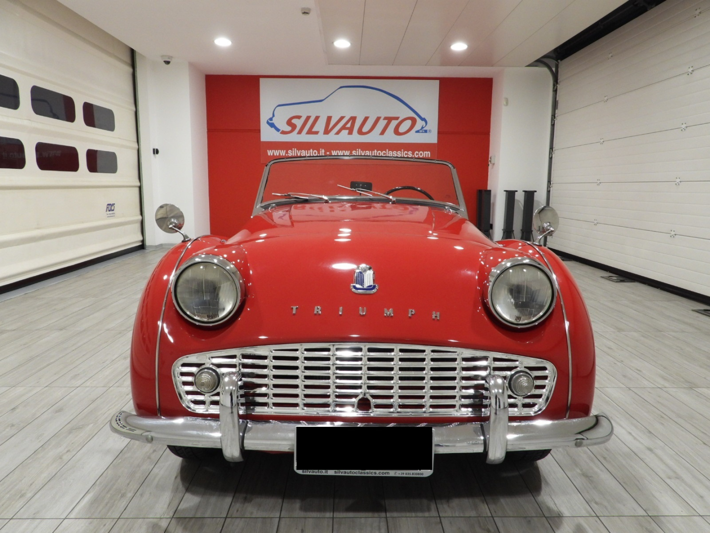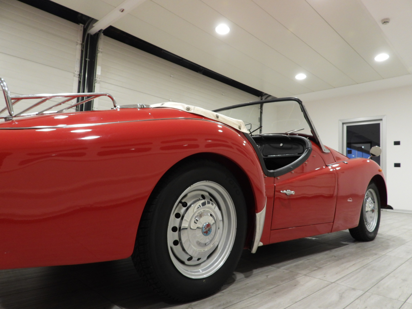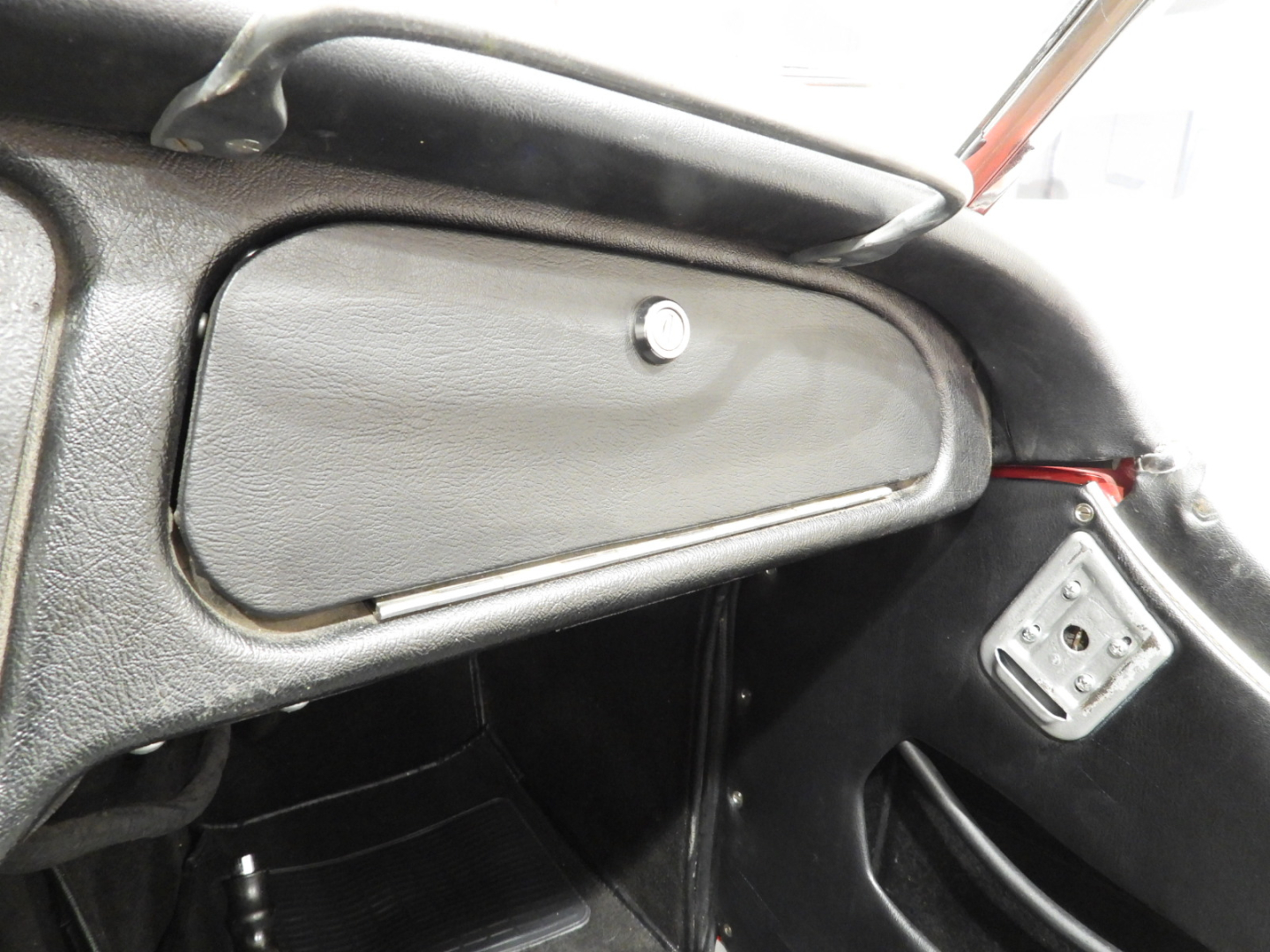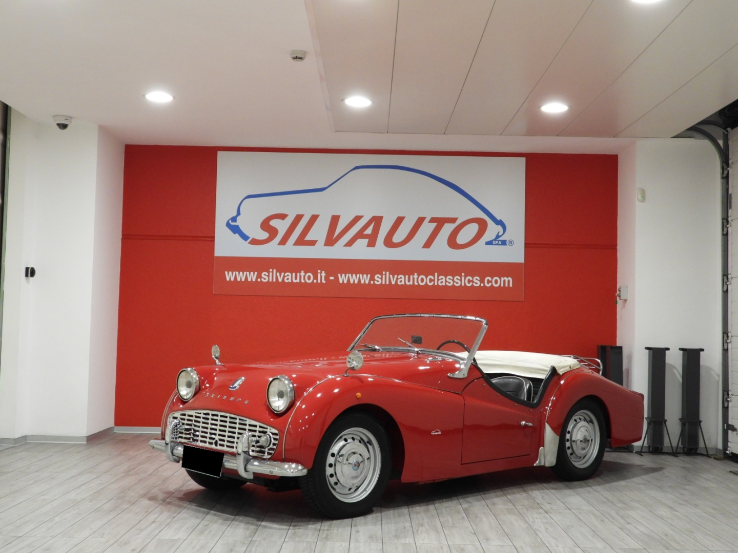 Sedili e pannelli in sky nero con pipeline avorio, Volante a tre razze originale, Pomello del cambio in legno, Autoradio AM originale dell’epoca, Doppio specchio esterno cromato ai parafanghi anteriori, Portapacchi posteriore cromato, Cerchi in ferro con calotta cromata Triumph, Capotte in Pvc avorio, Copri capotte in pvc avorio, Voletti asportabili
