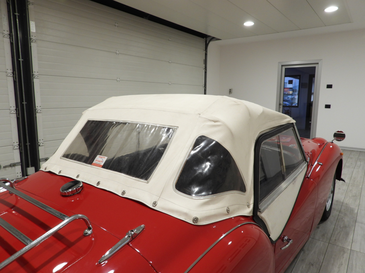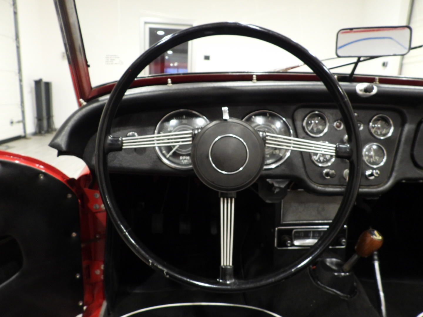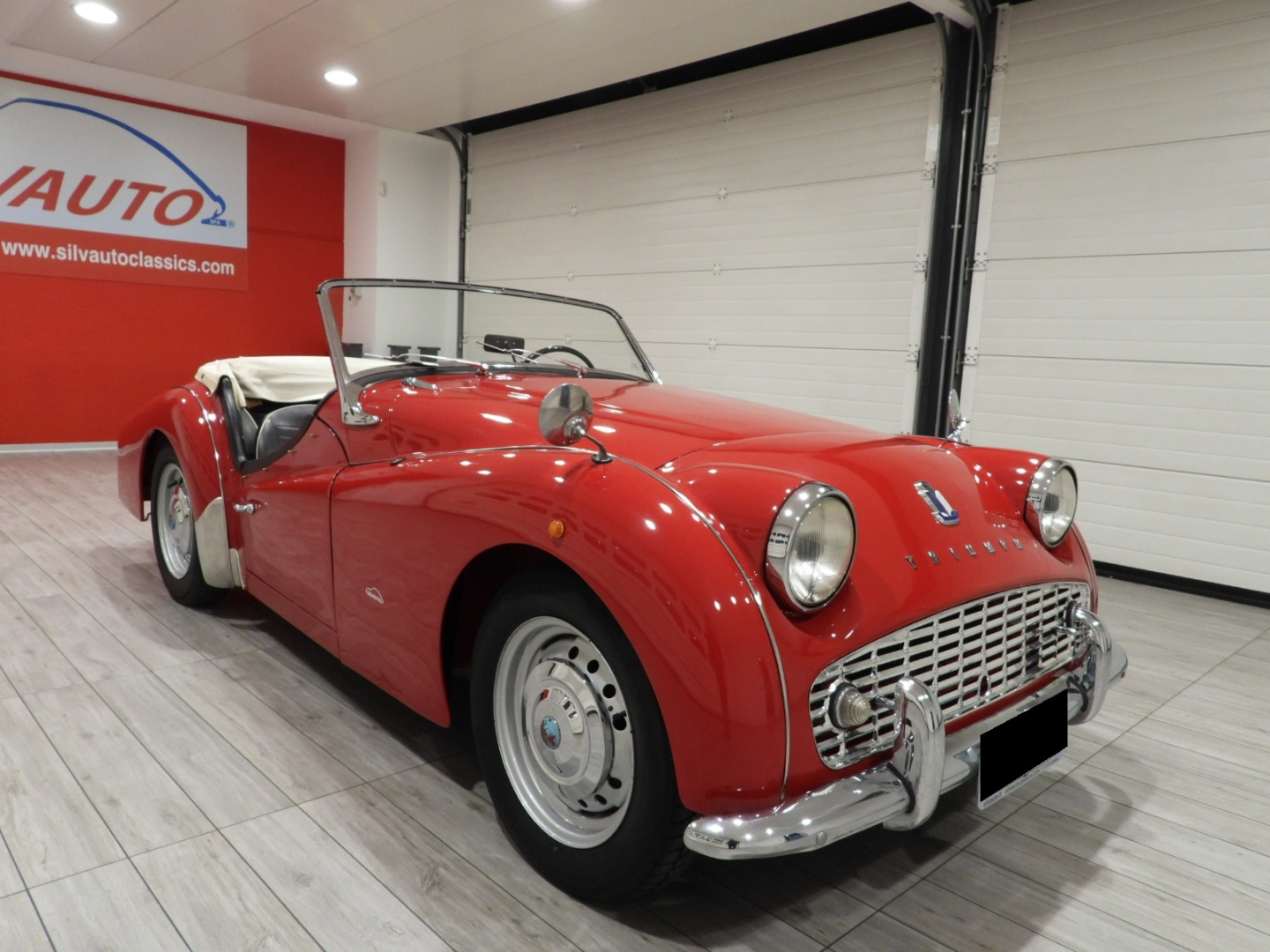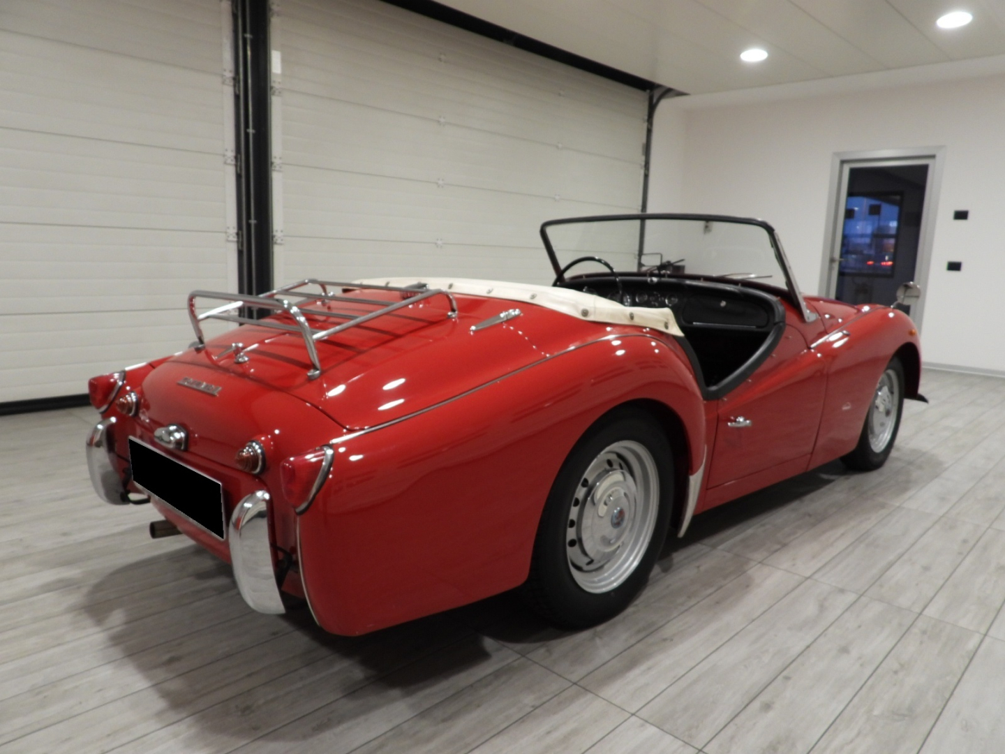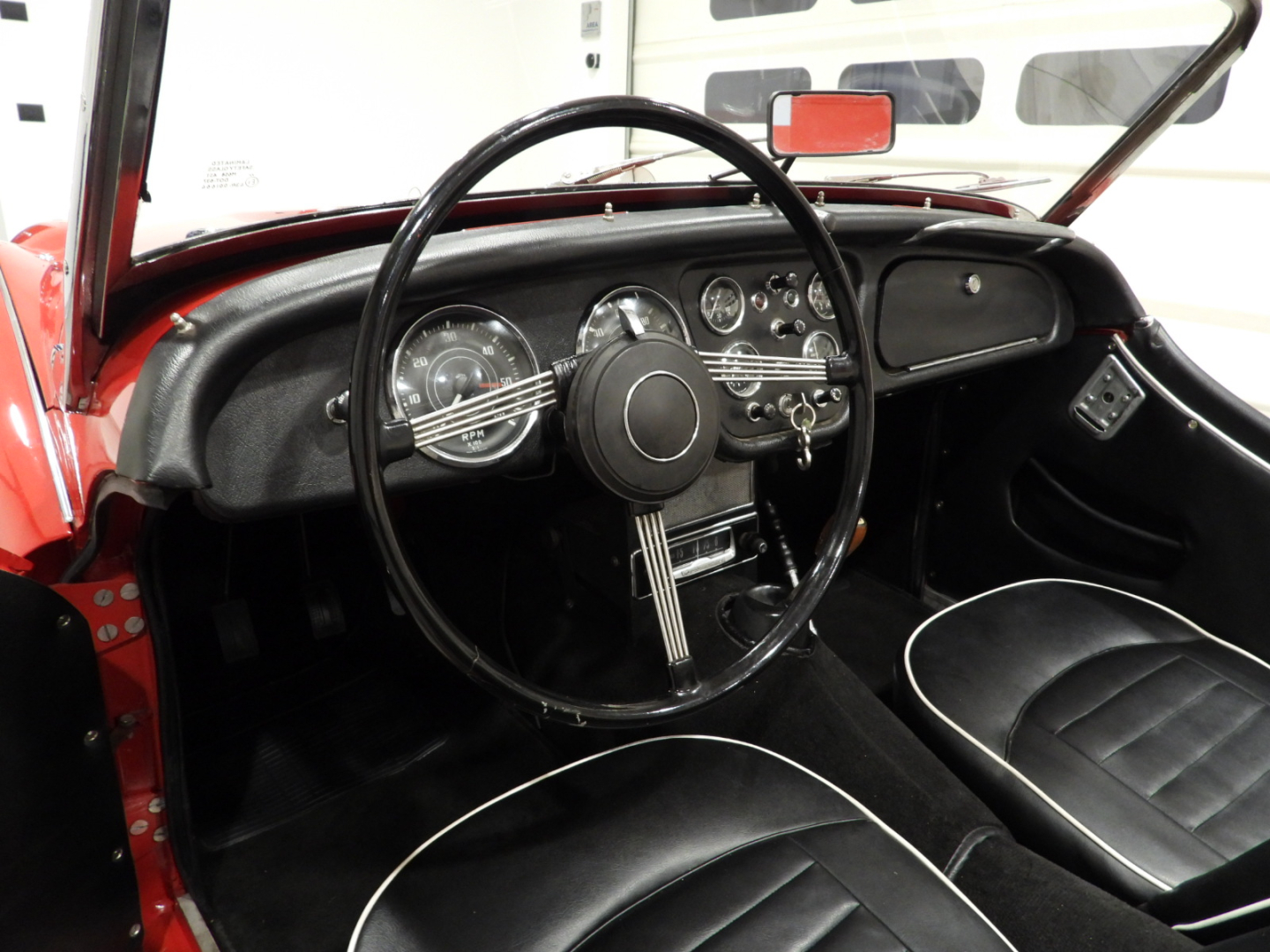 Sedili e pannelli in sky nero con pipeline avorio, Volante a tre razze originale, Pomello del cambio in legno, Autoradio AM originale dell’epoca, Doppio specchio esterno cromato ai parafanghi anteriori, Portapacchi posteriore cromato, Cerchi in ferro con calotta cromata Triumph, Capotte in Pvc avorio, Copri capotte in pvc avorio, Voletti asportabili
