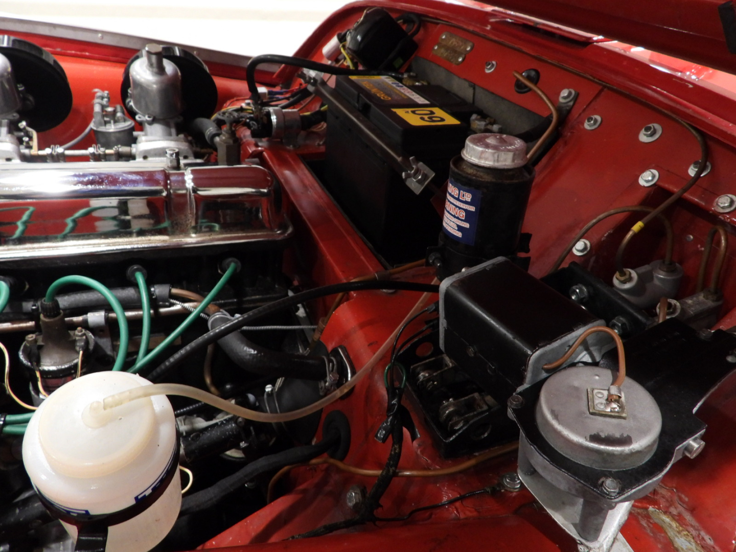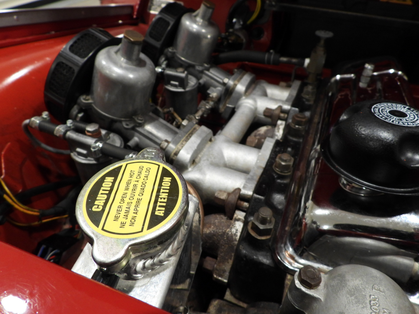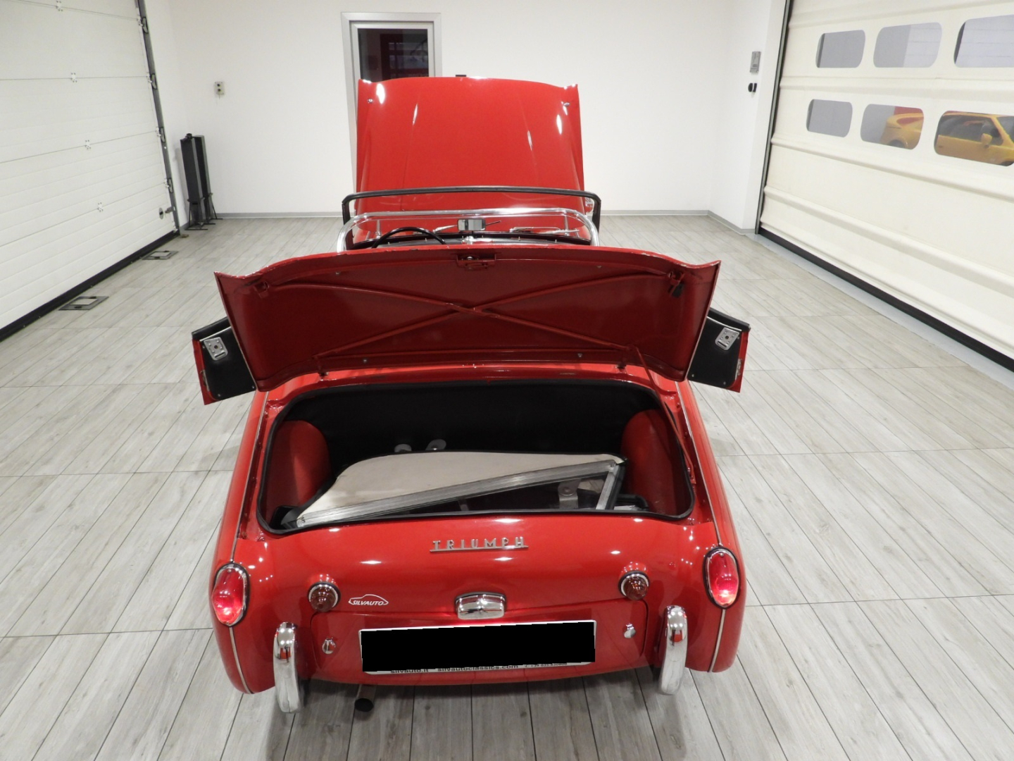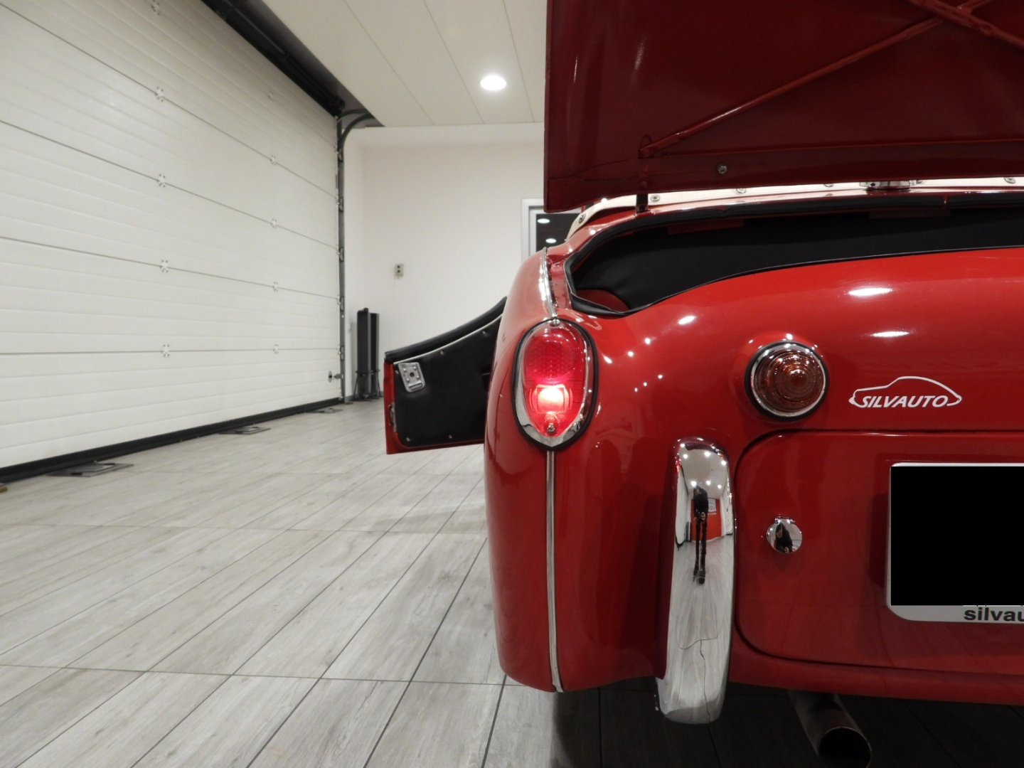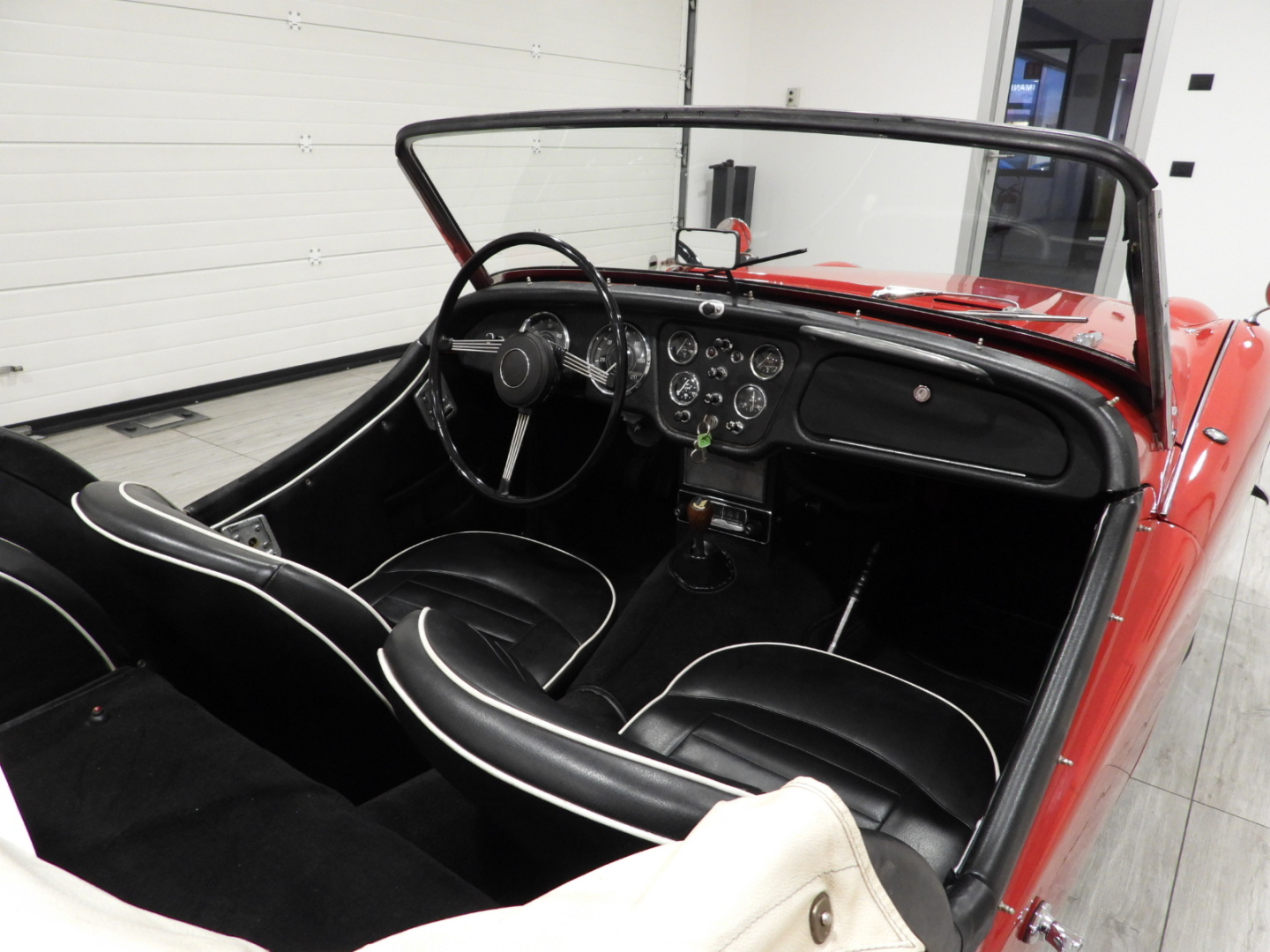 Sedili e pannelli in sky nero con pipeline avorio, Volante a tre razze originale, Pomello del cambio in legno, Autoradio AM originale dell’epoca, Doppio specchio esterno cromato ai parafanghi anteriori, Portapacchi posteriore cromato, Cerchi in ferro con calotta cromata Triumph, Capotte in Pvc avorio, Copri capotte in pvc avorio, Voletti asportabili