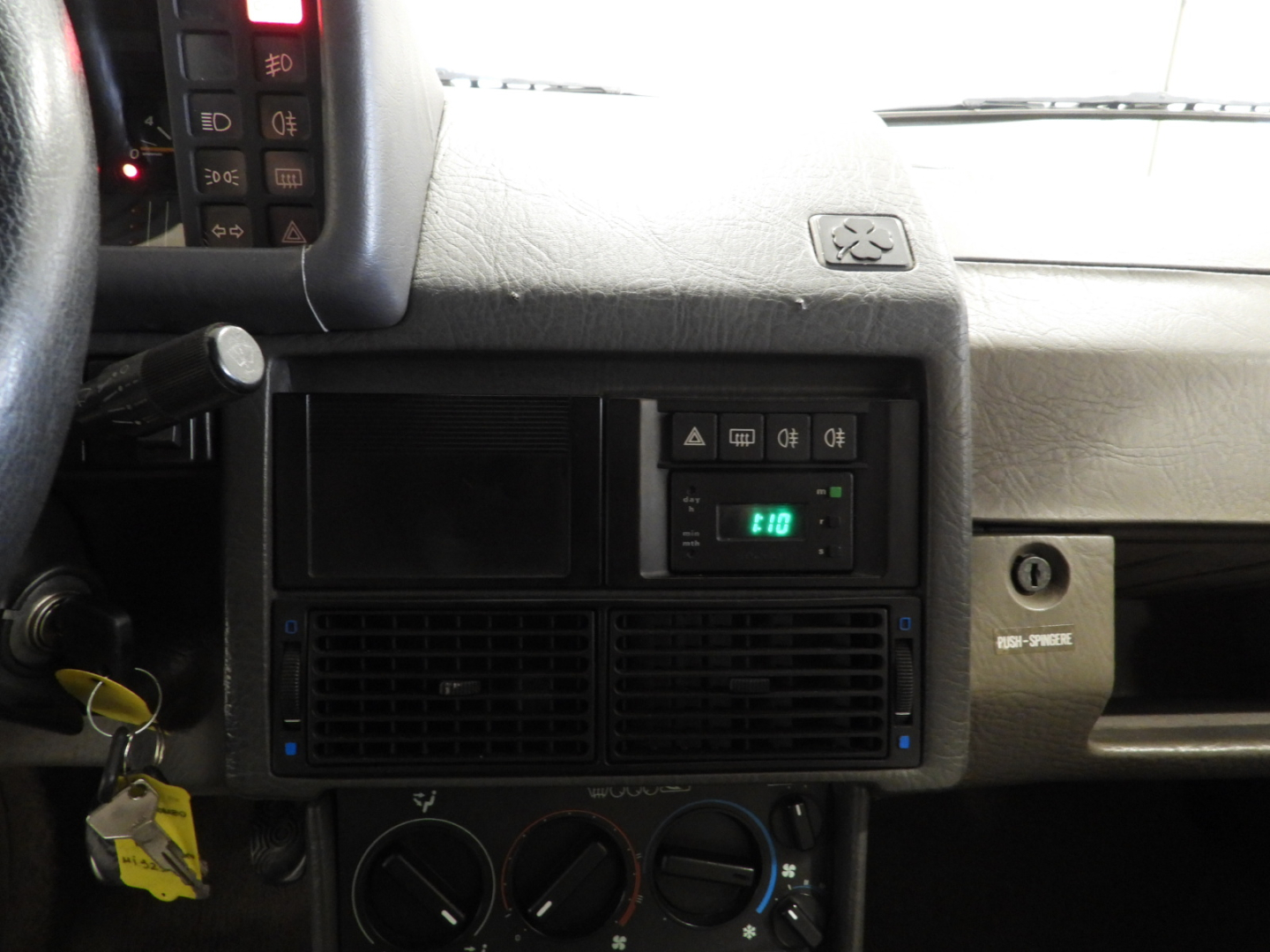 Sièges et panneaux en tissu chevrons gris, Dossiers des sièges avant réglables électriquement, Ceintures de sécurité avant, Accoudoir avant, Vitres avant et arrière électriques, Volant sport à trois branches, Radio Alpine avec antenne électrique sur l’aile arrière gauche…