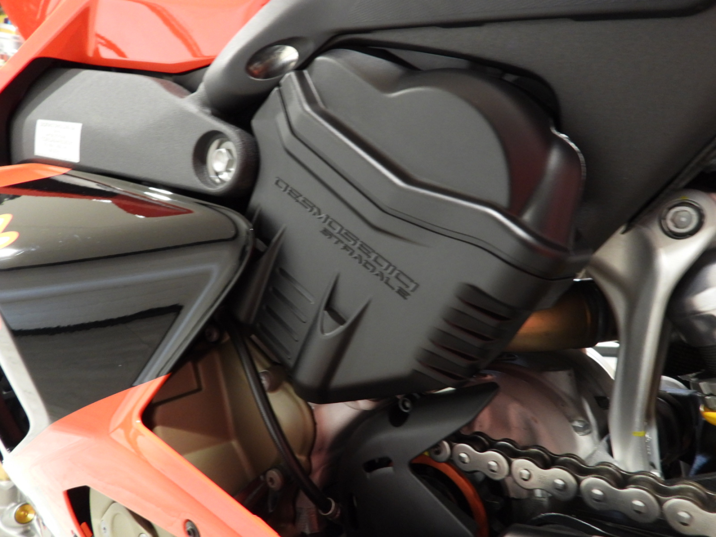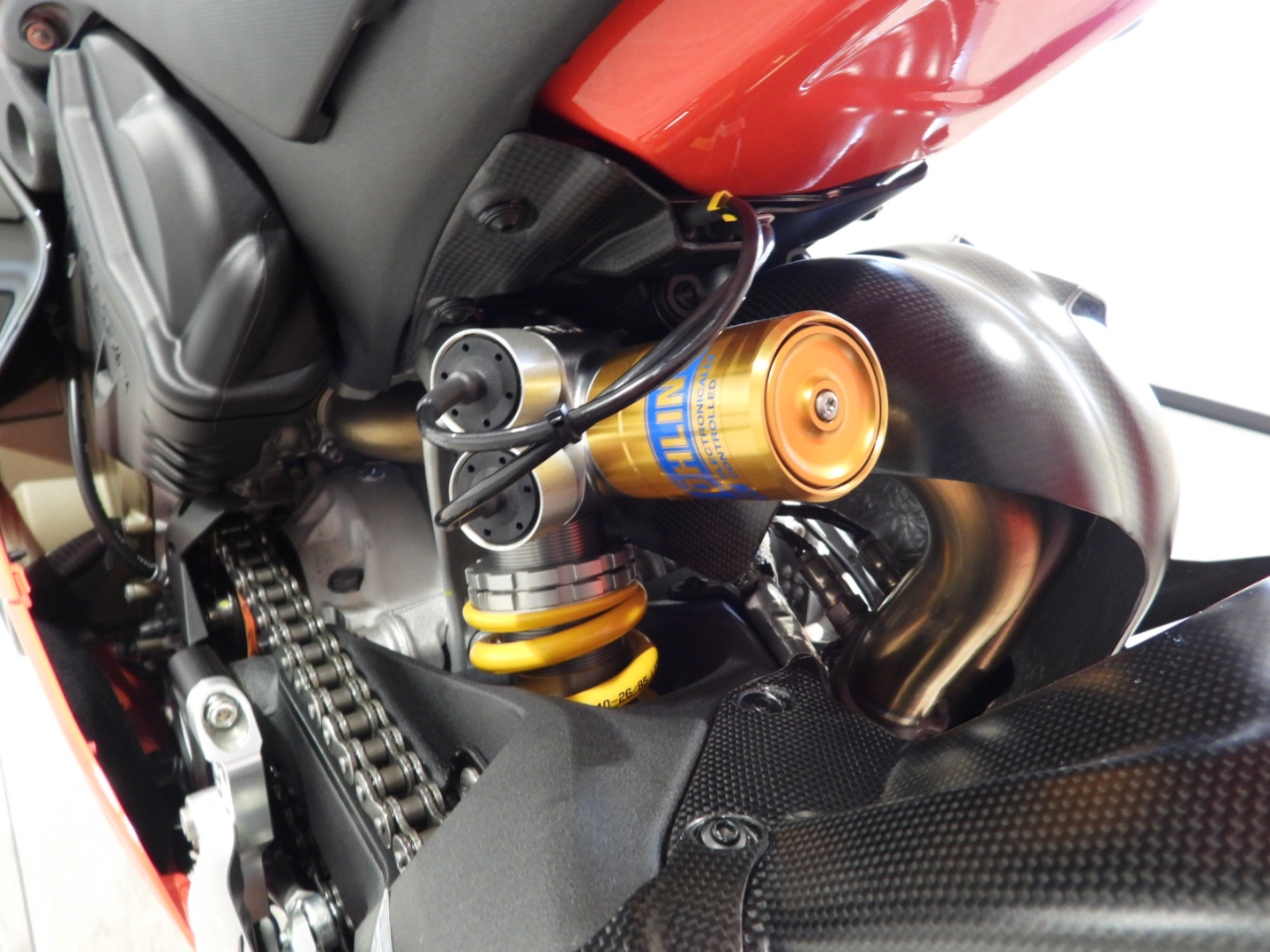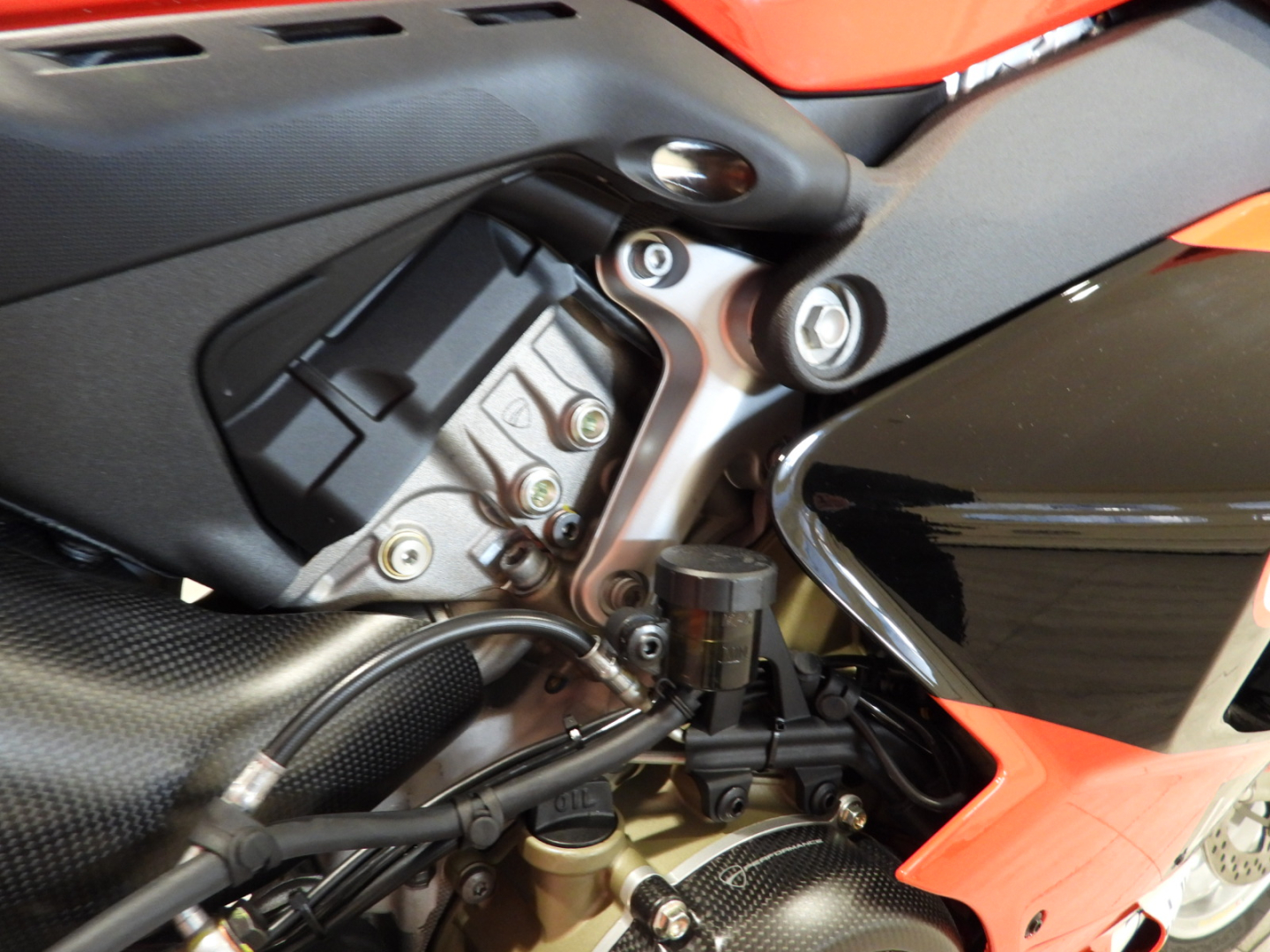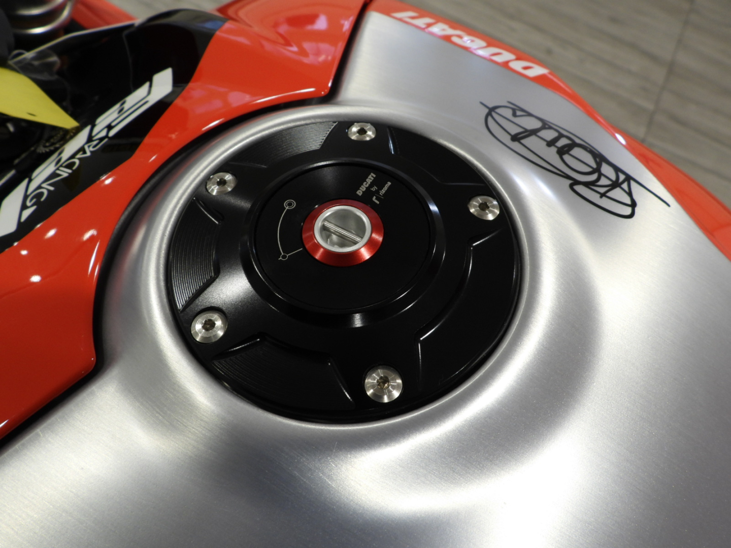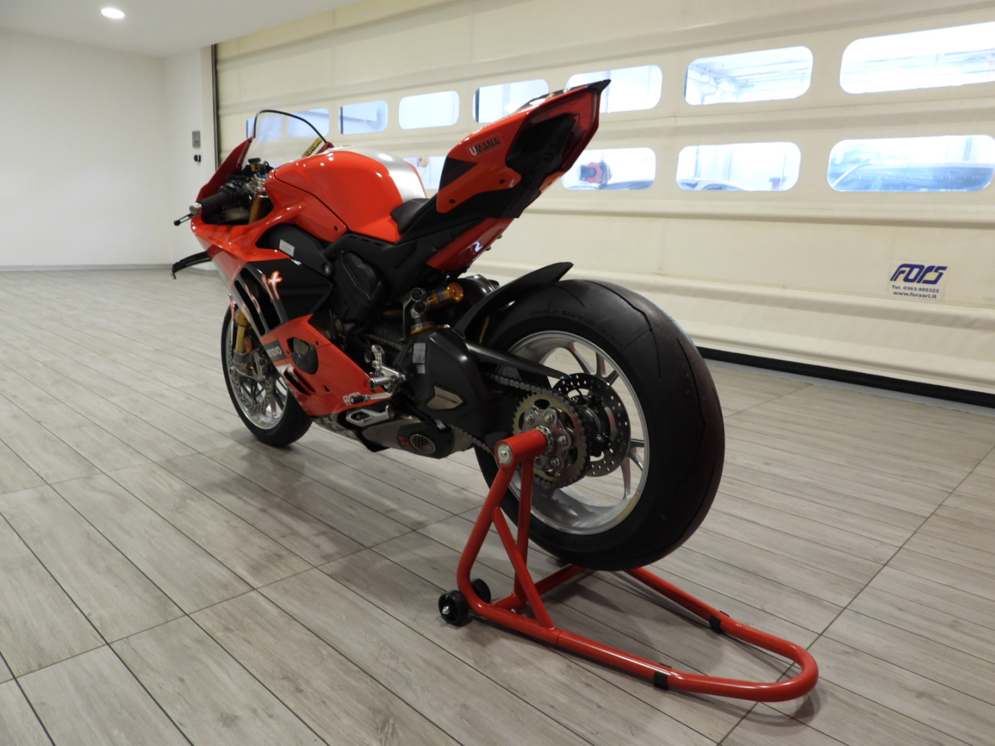 Tête de direction en aluminium usiné avec nom et numéro progressif de la moto, Réservoir de carburant en aluminium brossé (livrée de course Bautista #19 uniquement), Réservoir dédicacé à l’origine par Alvaro Bautista (#19), Plexiglas de course, Silencieux homologué Akrapovič, Bouclier thermique en fibre de carbone pour collecteurs d’échappement arrière, embrayage à sec STM-EVO SBK 9 disques, repose-pieds pilote réglables Rizoma en aluminium billette avec protège-talons en fibre de carbone, étriers Brembo Stylema R, pompe Brembo MCS avec réglage à distance, leviers de frein et embrayage usinés, avant et arrière en fibre de carbone garde-boue, Conduits d’air de refroidissement du frein avant en fibre de carbone, Cache-bras oscillant en fibre de carbone et titane, Cache-alternateur en fibre de carbone