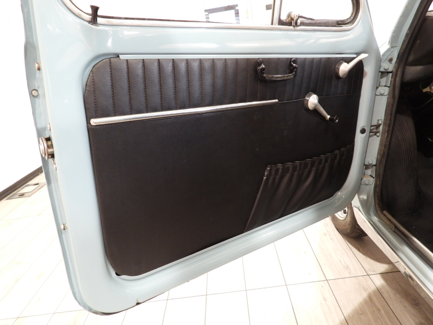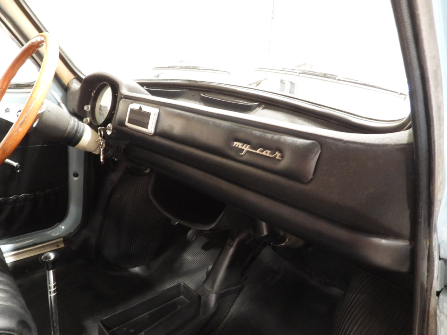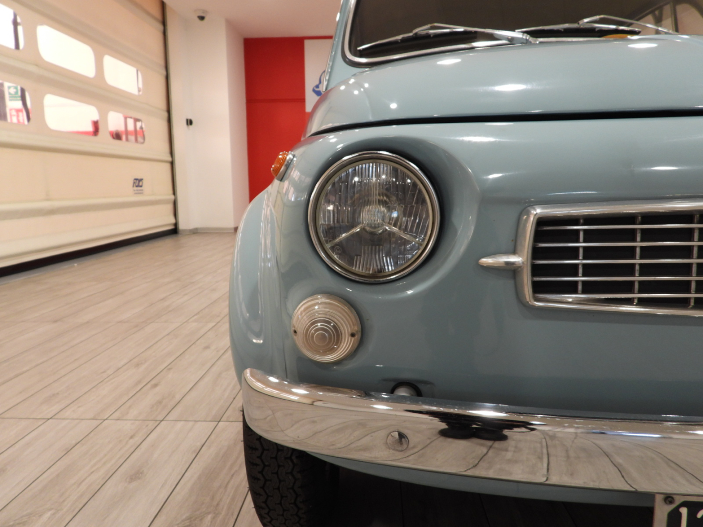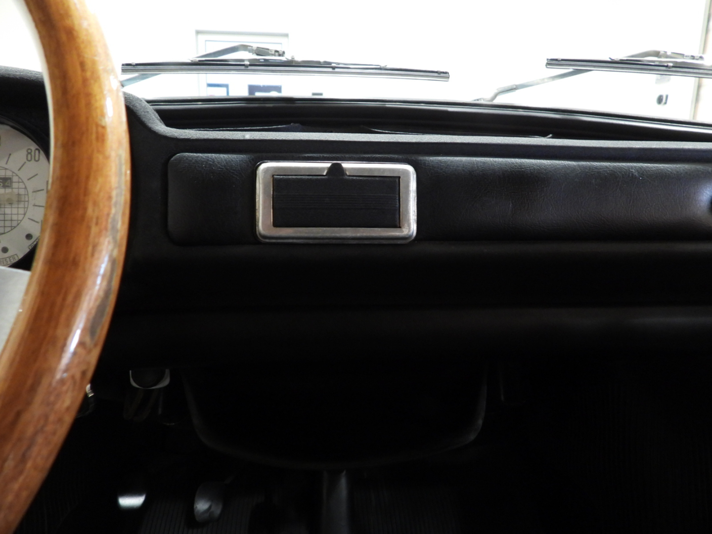 CARACTÉRISTIQUES SPÉCIFIQUES AU MODÈLE : Tableau de bord façonné et recouvert de plastique noir, levier de vitesses et poignée de frein à main en acier inoxydable, seuils de porte en acier inoxydable, calandre arrondie avec calandre en zamak chromé et phares encastrés, rampes d’égouttement en acier inoxydable, finitions chromées en les joints du pare-brise avant et de la lunette arrière, les cerclages de roue en acier avec pneus 125 SR 12, la serrure du capot moteur, volant Ferrero avec couronne en bois, vitres arrière qui s’ouvrent comme une boussole, deux nervures longitudinales et un petit becquet (qui créent une image de sportivité et de raffinement)