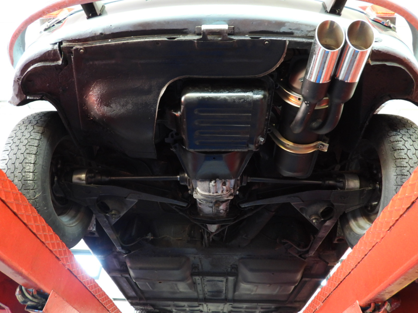 Sièges et panneaux en ciel noir, Volant Ferrero avec couronne en bois, Rétroviseur extérieur côté conducteur, Danger, Double pot d’échappement