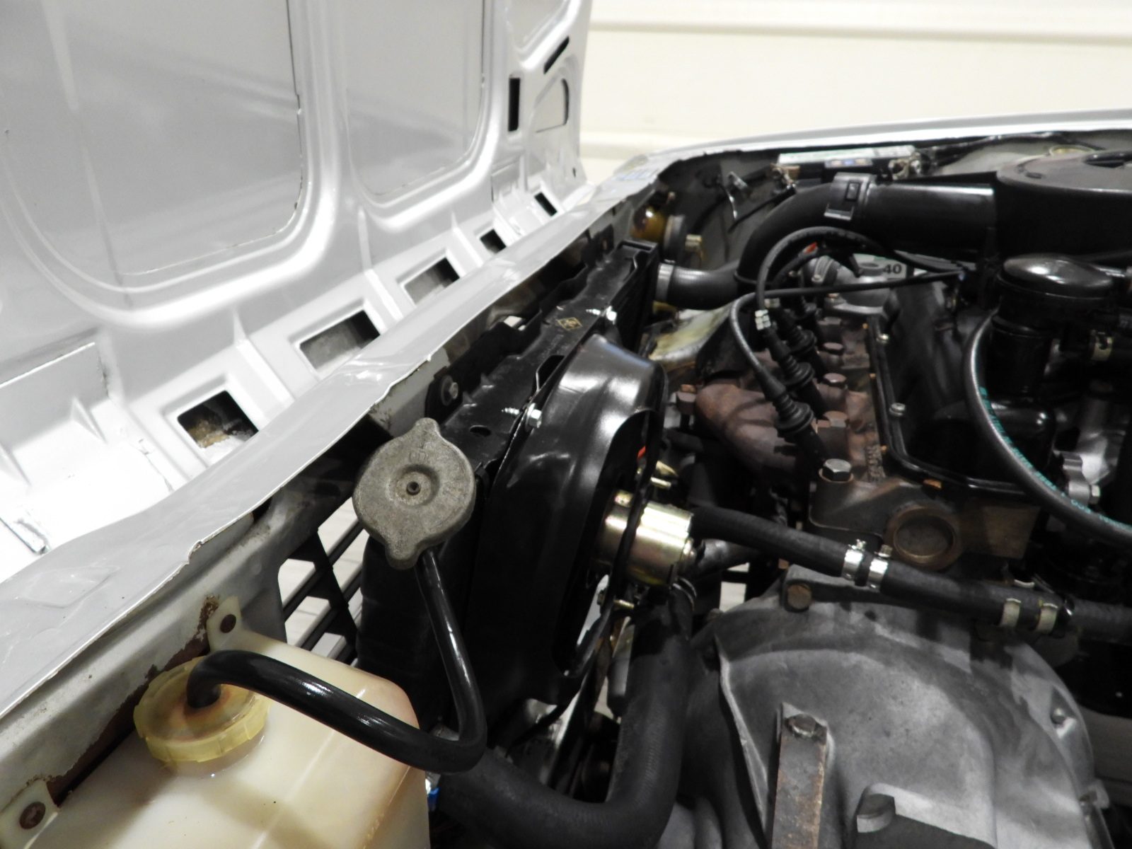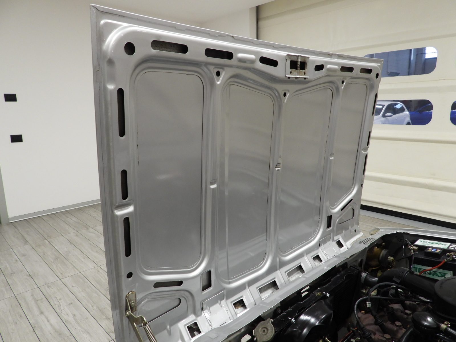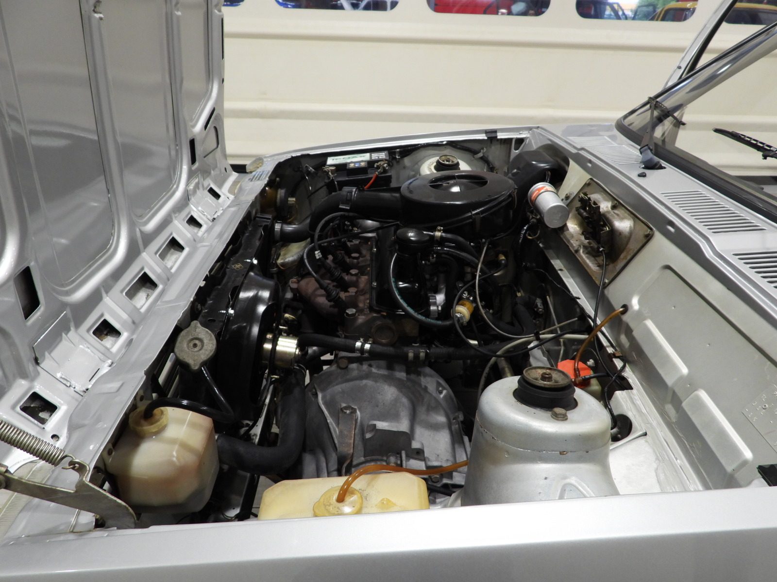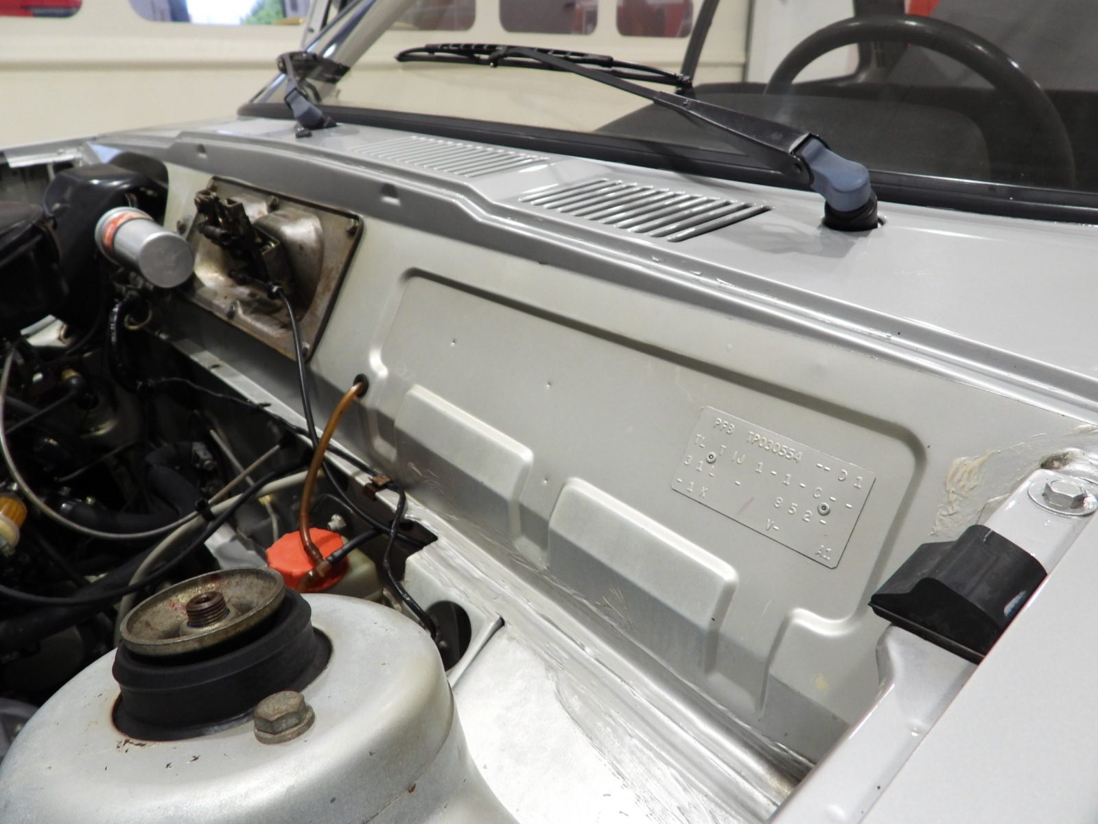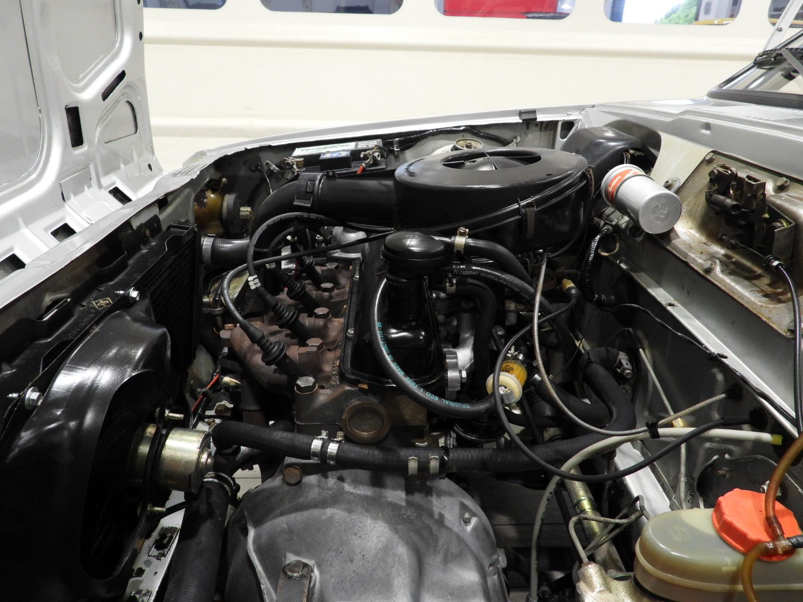 Sièges en tissu gris et noir et panneaux en velours côtelé et ciel noir, Moquette en laine noire au sol, Volant d’origine à deux branches, Rétroviseur extérieur côté conducteur chromé à réglage manuel interne…