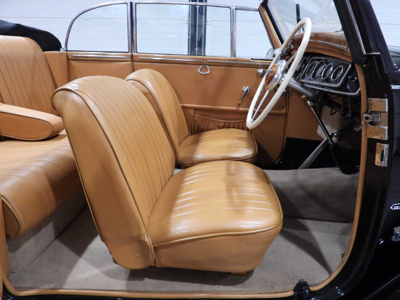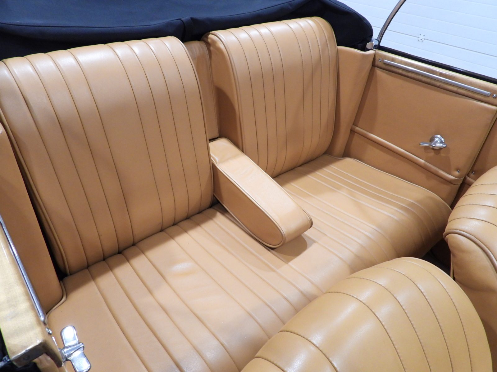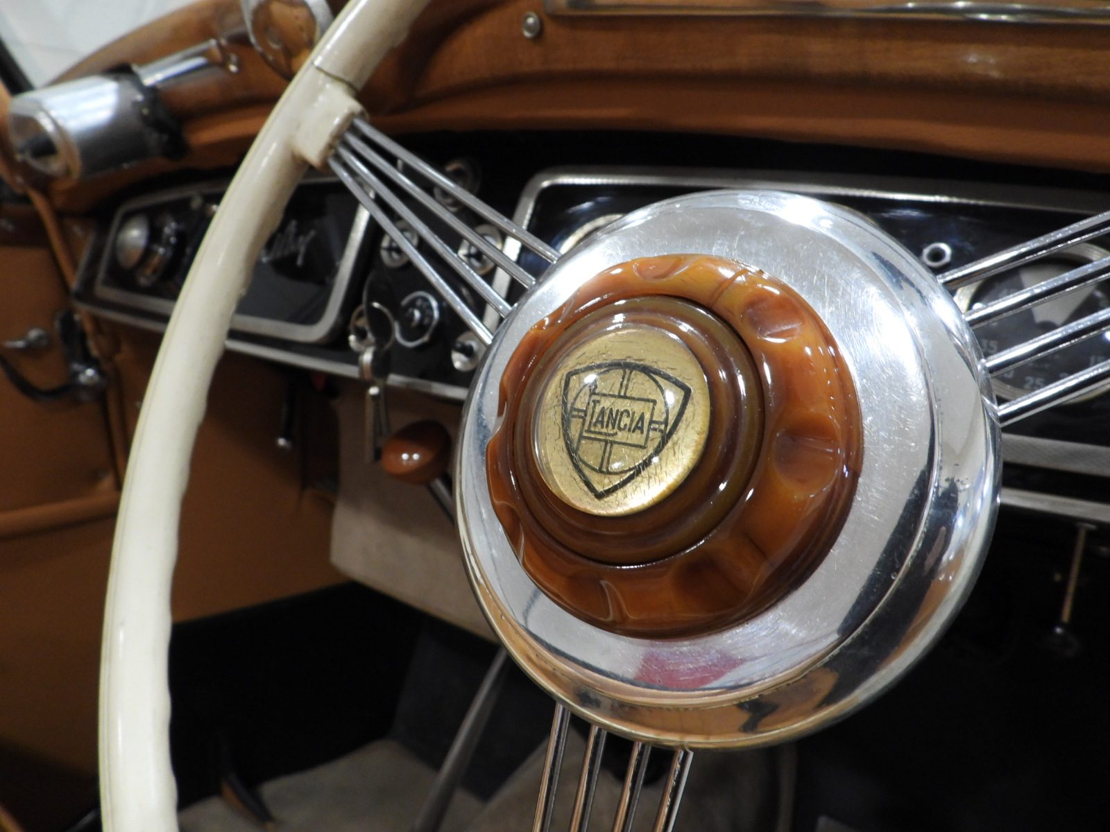 Sièges et panneaux en cuir tabac, Inserts sur le tableau de bord et les panneaux de porte en bois, Jeu de boutons de couleur ambre, Moquette au sol en laine beige, Volant Lancia à trois branches en bakélite, Accoudoir arrière, Guêtres (enjoliveurs de roue arrière), Extérieur rétroviseur côté gauche rond chromé, coupe batterie, capote en toile noire