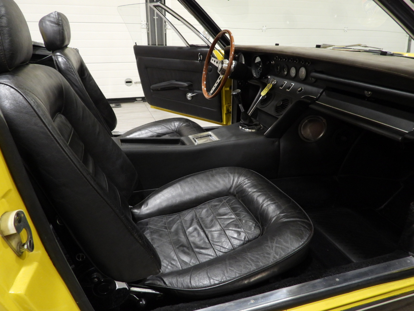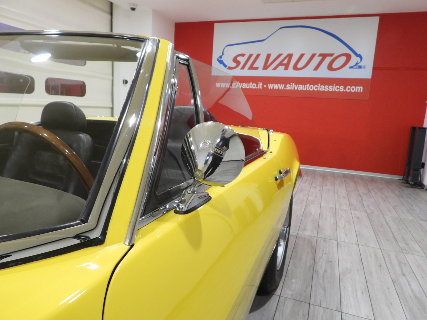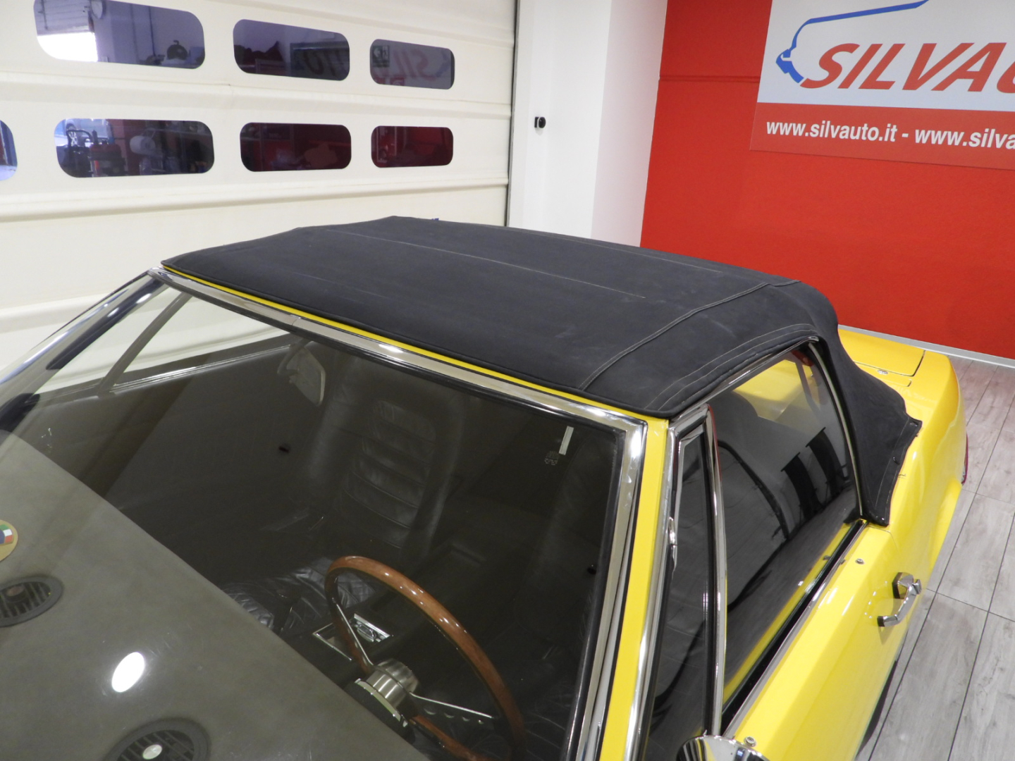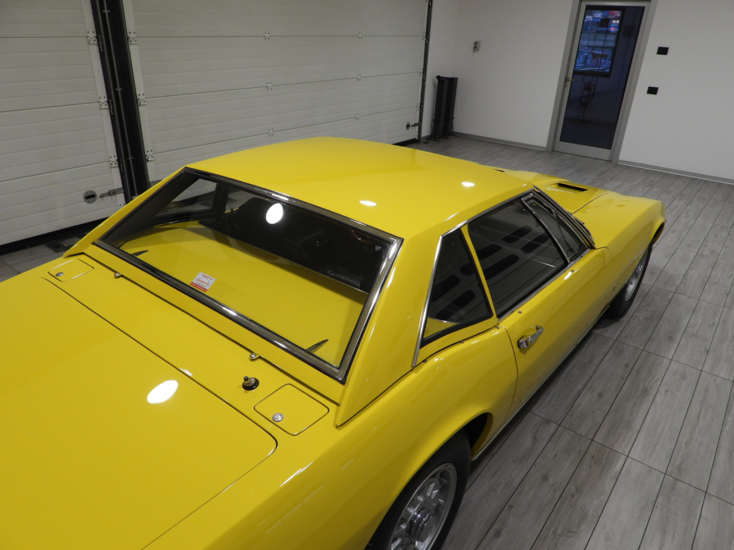 Sièges et panneaux en cuir Connoly noir intégral, volant Maserati à trois branches avec couronne en bois, vitres électriques, 5 jantes en alliage avec écrou à oreilles chromé avec pneus Pirelli GR70VR15, rétroviseur extérieur chromé côté conducteur, capotes en toile noire, toit rigide couleur carrosserie