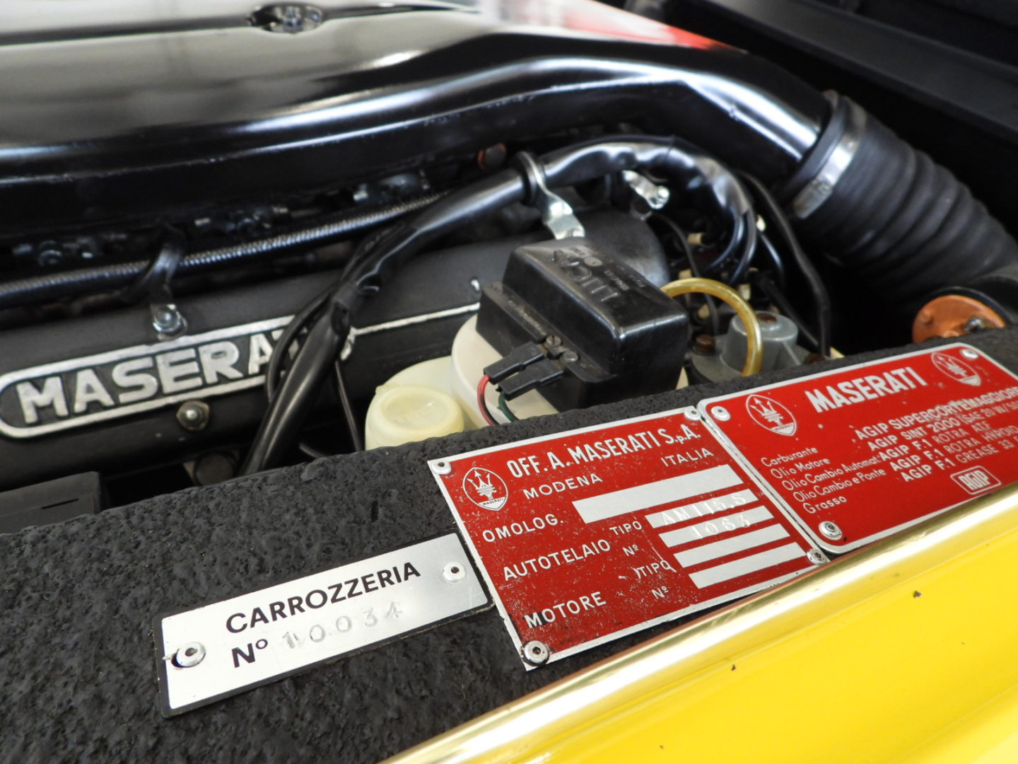 DÉCLARATION ÉMISE PAR MASERATI S.P.A. ARCHIVES HISTORIQUES DISPONIBLES QUI DÉCLARE LA CORRESPONDANCE ENTRE LE NUMÉRO DE CHÂSSIS ET LE MOTEUR, L’ORIGINALITÉ DE LA COULEUR EXTÉRIEURE « JAUNE » ET DE L’INTÉRIEUR EN CUIR CONNOLY NOIR ET LA PRODUCTION DE LA VOITURE LE 16 SEPTEMBRE 1969 AVEC MARCHÉ DE DESTINATION À ROME