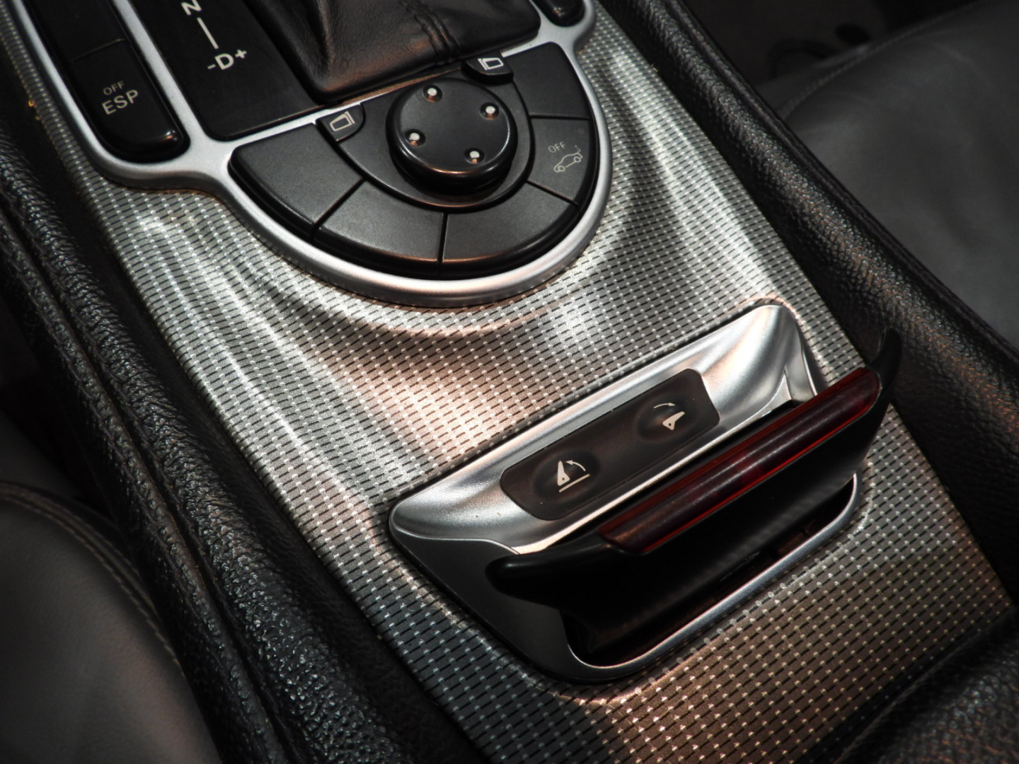 Sièges réglables électriquement avec fonction mémoire et panneaux en cuir anthracite (201A), sièges chauffants, éléments décoratifs en aluminium sur les panneaux et le tableau de bord, (423) volant multifonction à 4 branches, boîte automatique à 5 rapports, (500) rétroviseurs extérieurs réglables et rabattables électriquement, (664) jantes en alliage à 5 branches avec pneus 255/45 R17, système audio-navi Mercedes-Benz avec antenne sur le garde-boue arrière gauche, changeur de CD Mercedes-Benz dans le compartiment derrière le siège conducteur, (618) phares bi-xénon, feux de brouillard avant à lumière blanche, déflecteur de vent