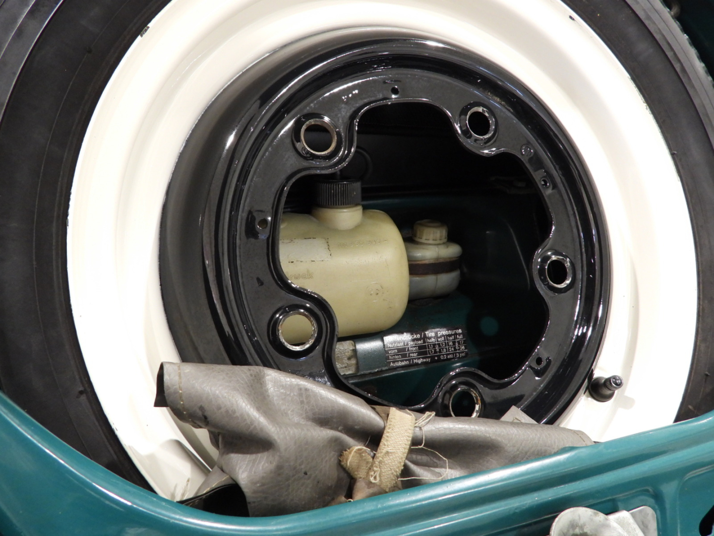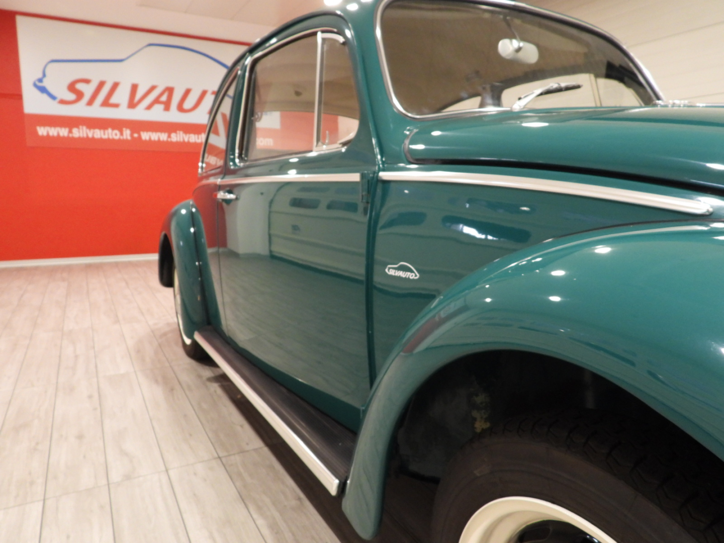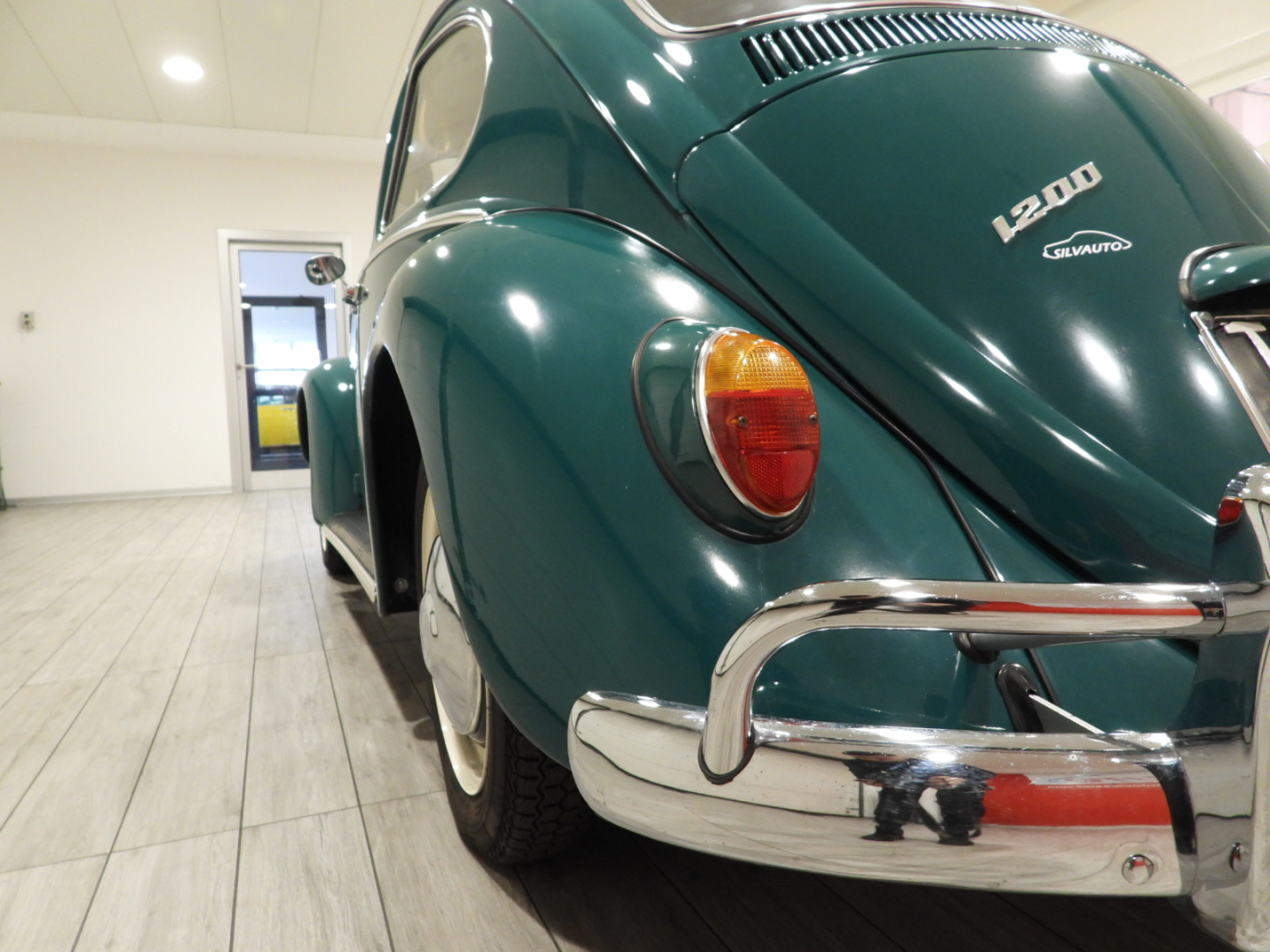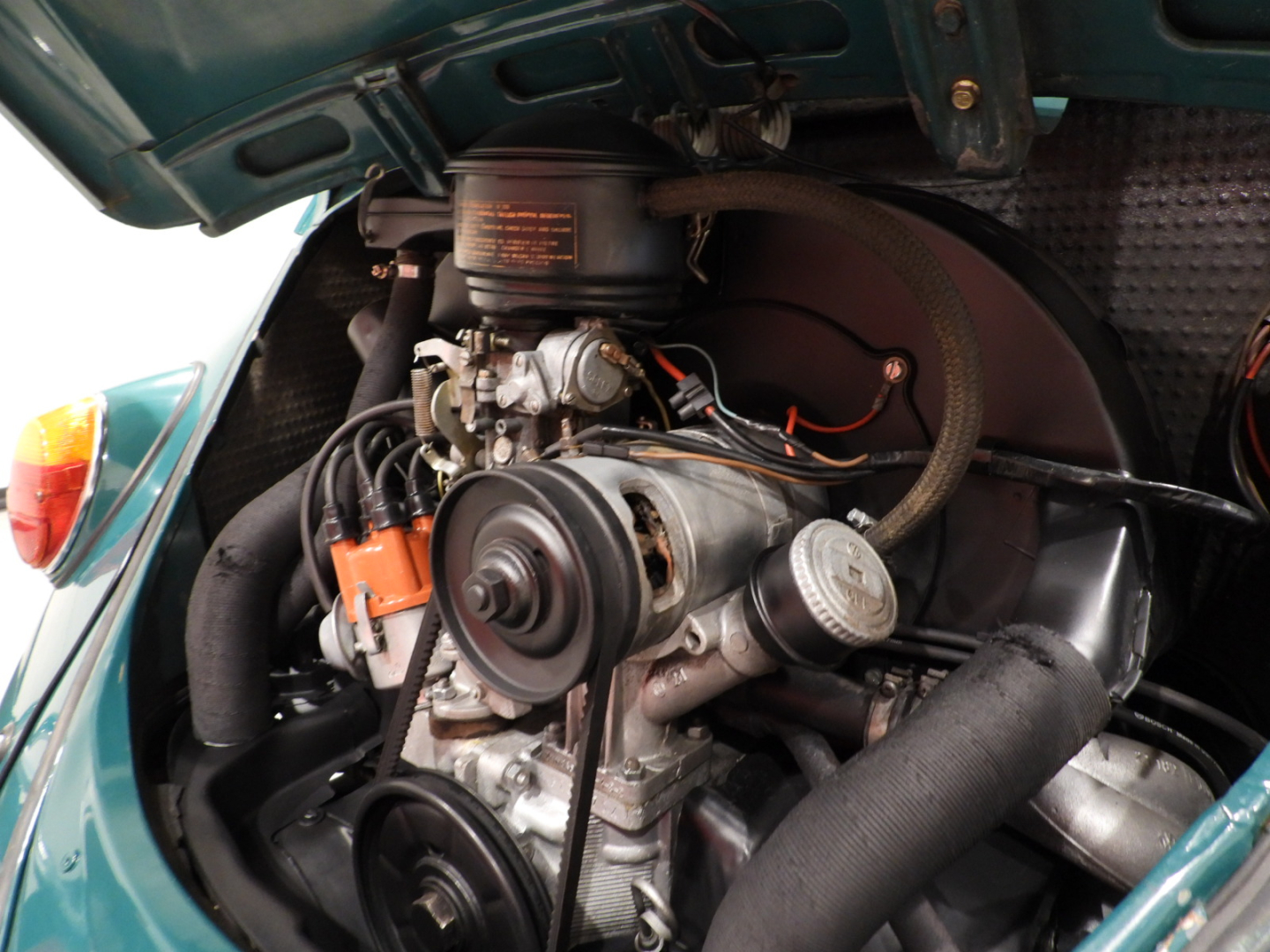 Sièges en tissu beige, Panneaux de ciel beiges, Moquette bouclet beige au sol, Rétroviseur extérieur chromé côté conducteur, Jantes en fer avec capuchons chromés VW, Pare-chocs avec enjoliveurs chromés, Tableau de bord en fer de la couleur de la carrosserie